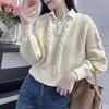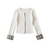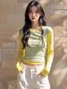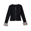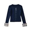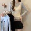 Tejido de punto coreano de nicho falso de dos piezas con empalme de cuadros para mujer, diseño de otoño, top de manga larga con aspecto elegante y adelgazante