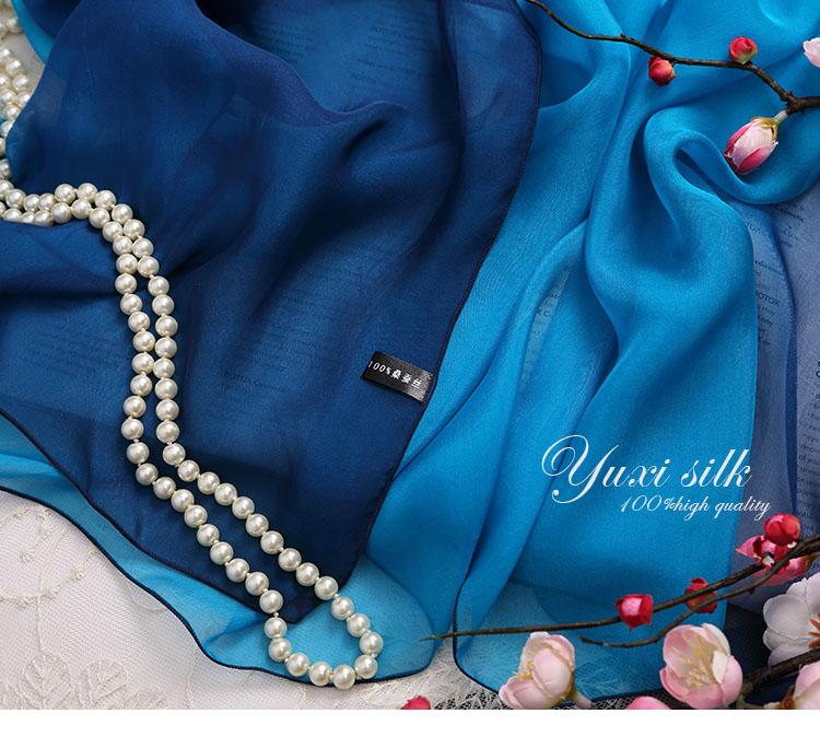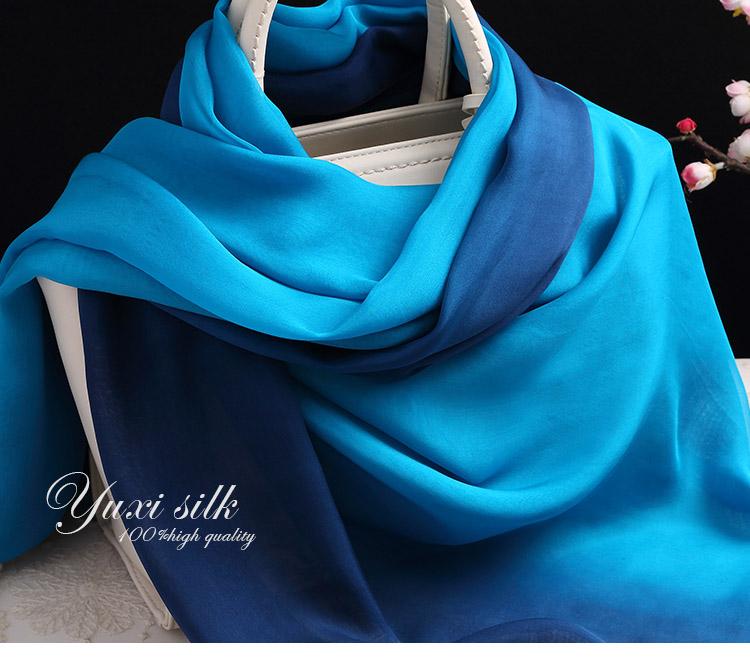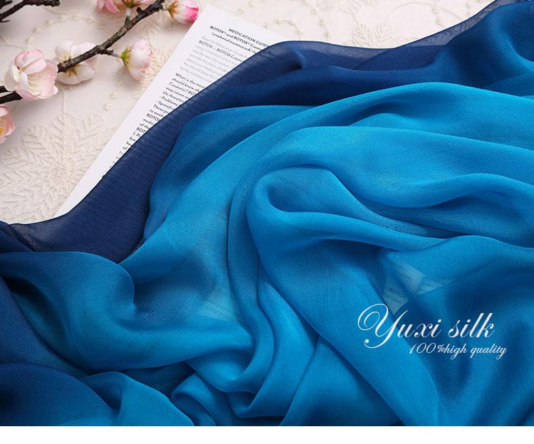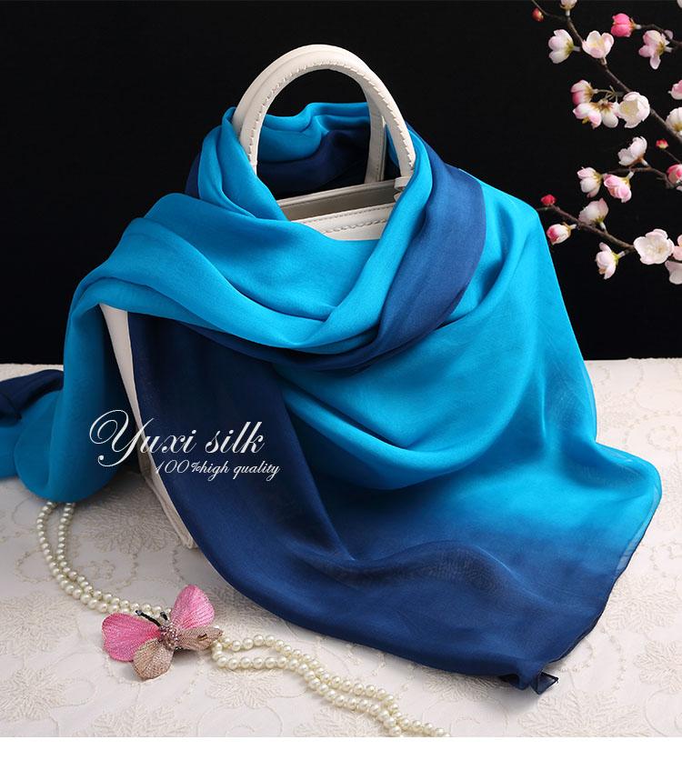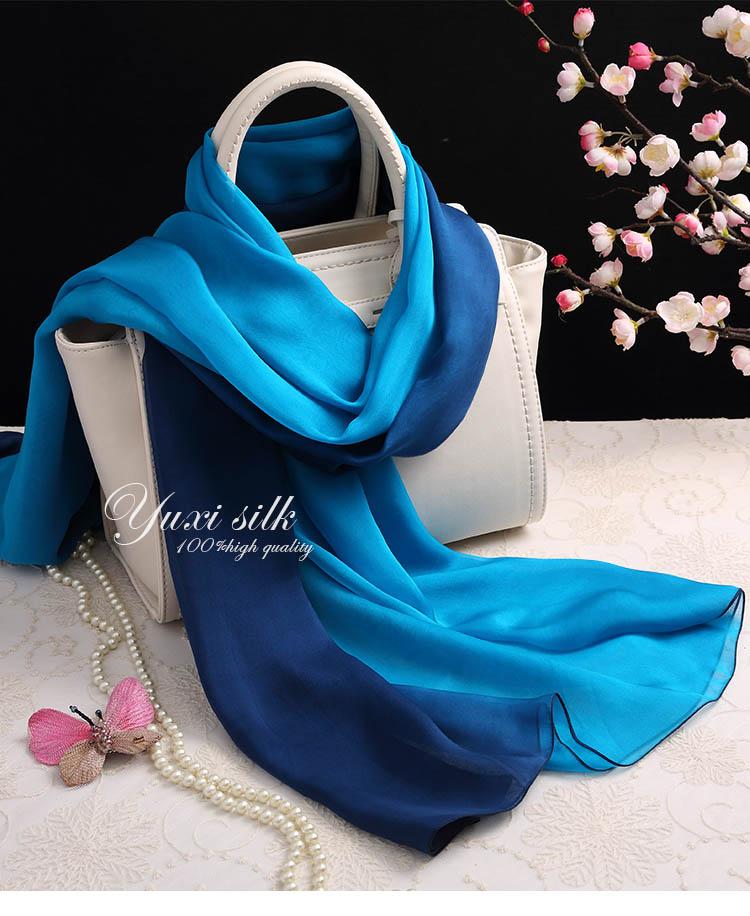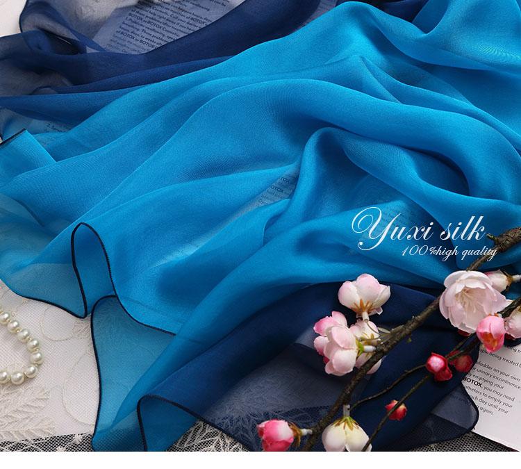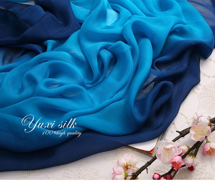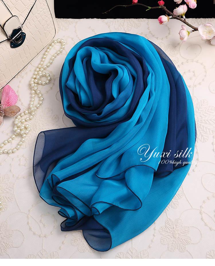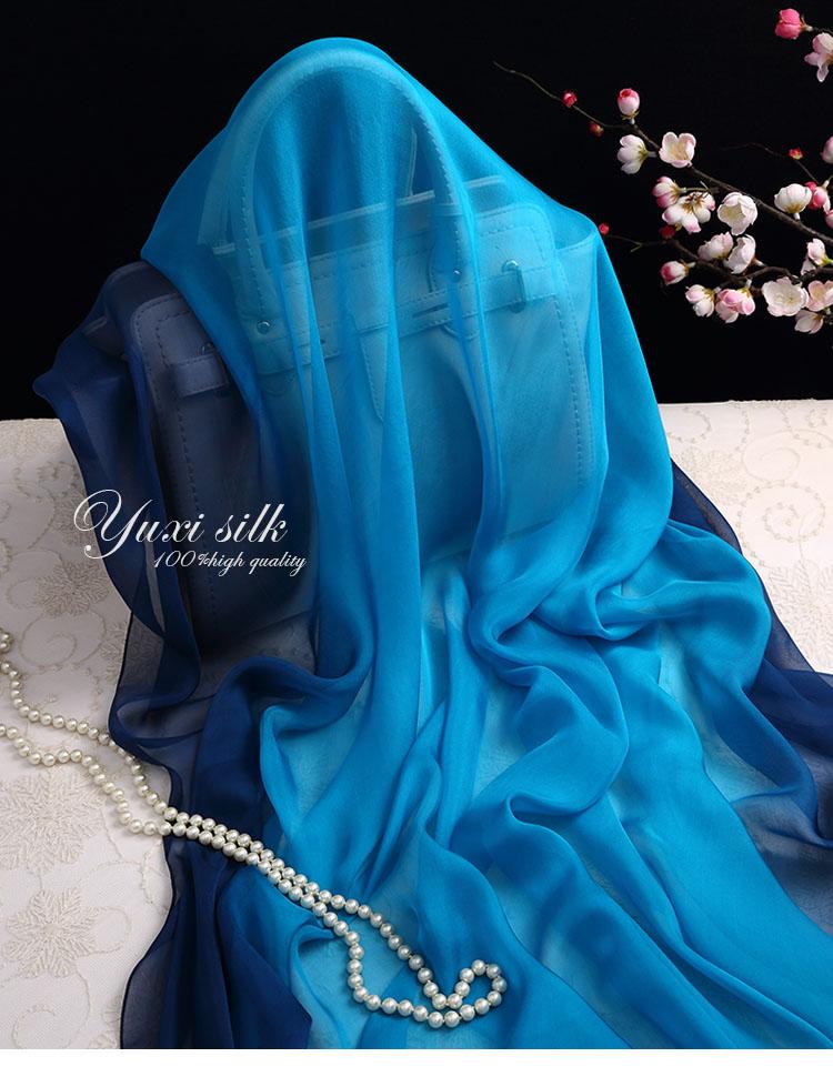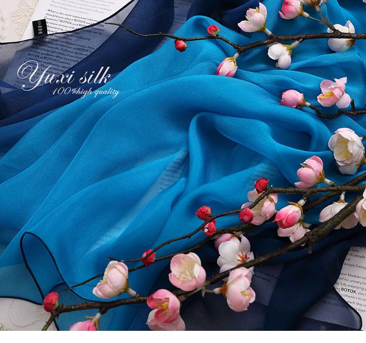 Bufanda Larga de Seda de Morera 100% con Degradado Azul Chal para Mujer Primavera Otoño Invierno Verano Bufanda Combinable