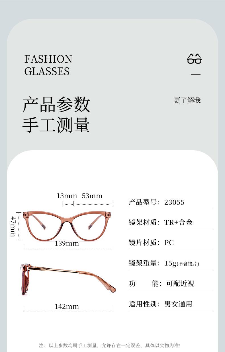 23055 Nuevo Armazón de Gafas Ultraligero Plano Tr90 Armazón Ojo de Gato para Hombres y Mujeres Sencillo de Gama Alta Popular