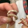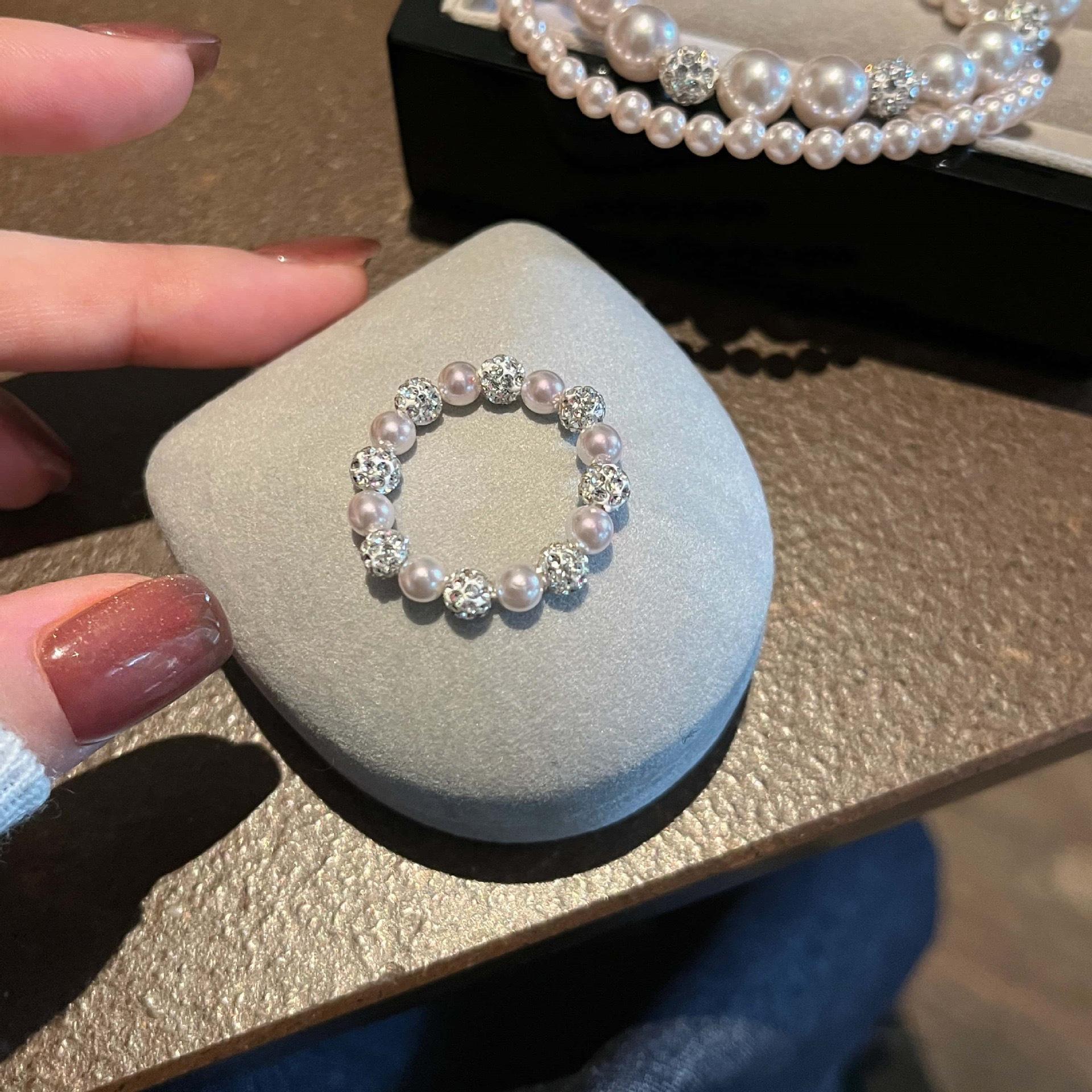Anillo Elástico de Perlas de Zirconia Estilo Ins Coreano Diseño Nicho para Mujer Temperamento de Lujo Ligero Anillo de Alta Gama