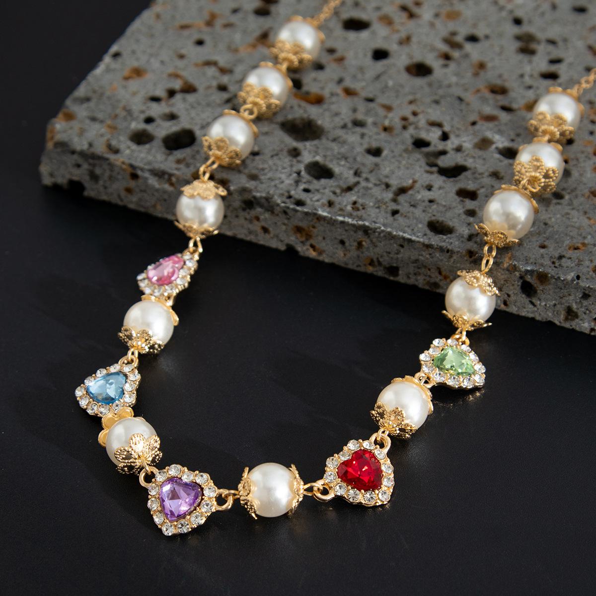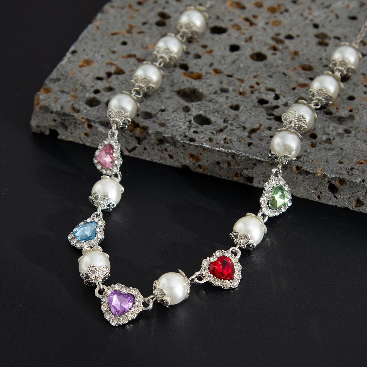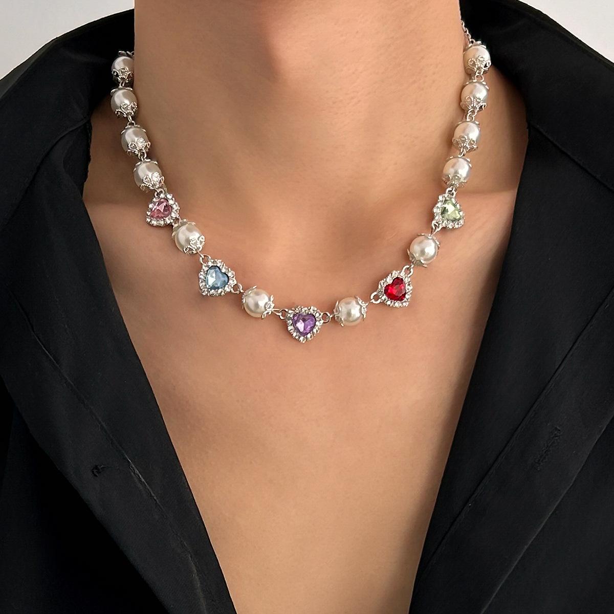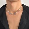 Collar con costuras de perlas y diamantes de colores de hip-hop europeo y americano, personalidad de moda para hombres, cadena de clavícula para hombres transfronteriza, joyería de comercio exterior