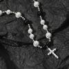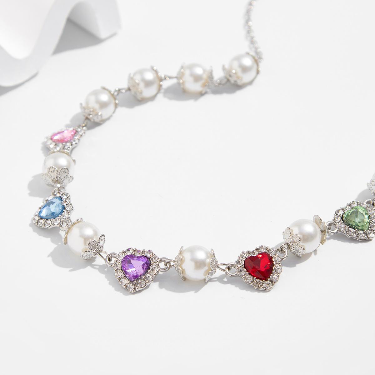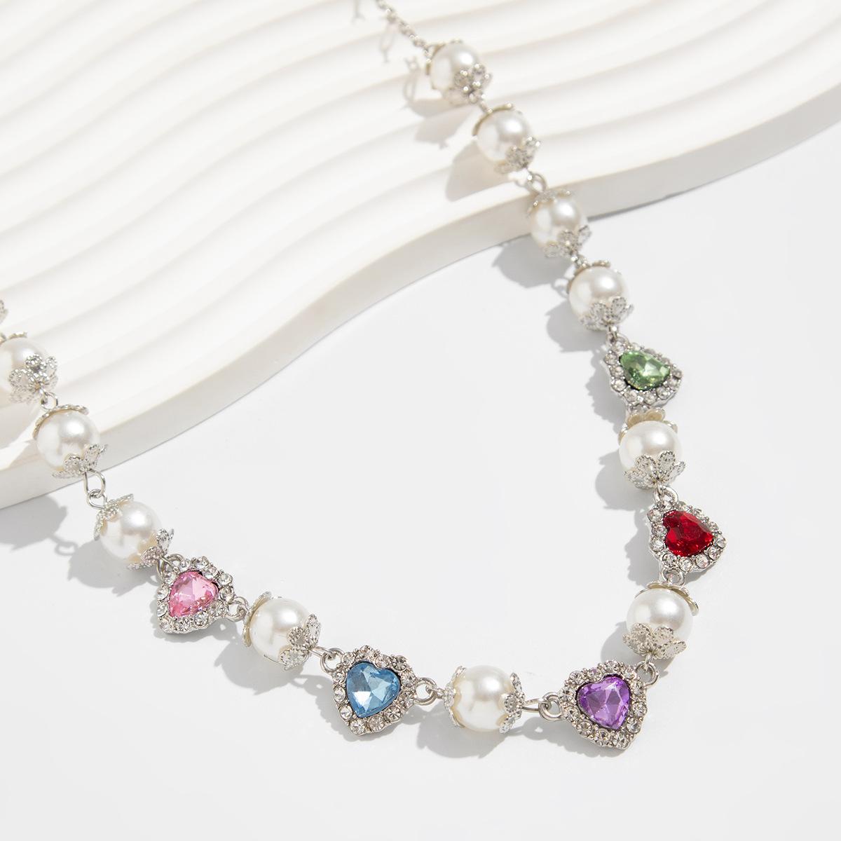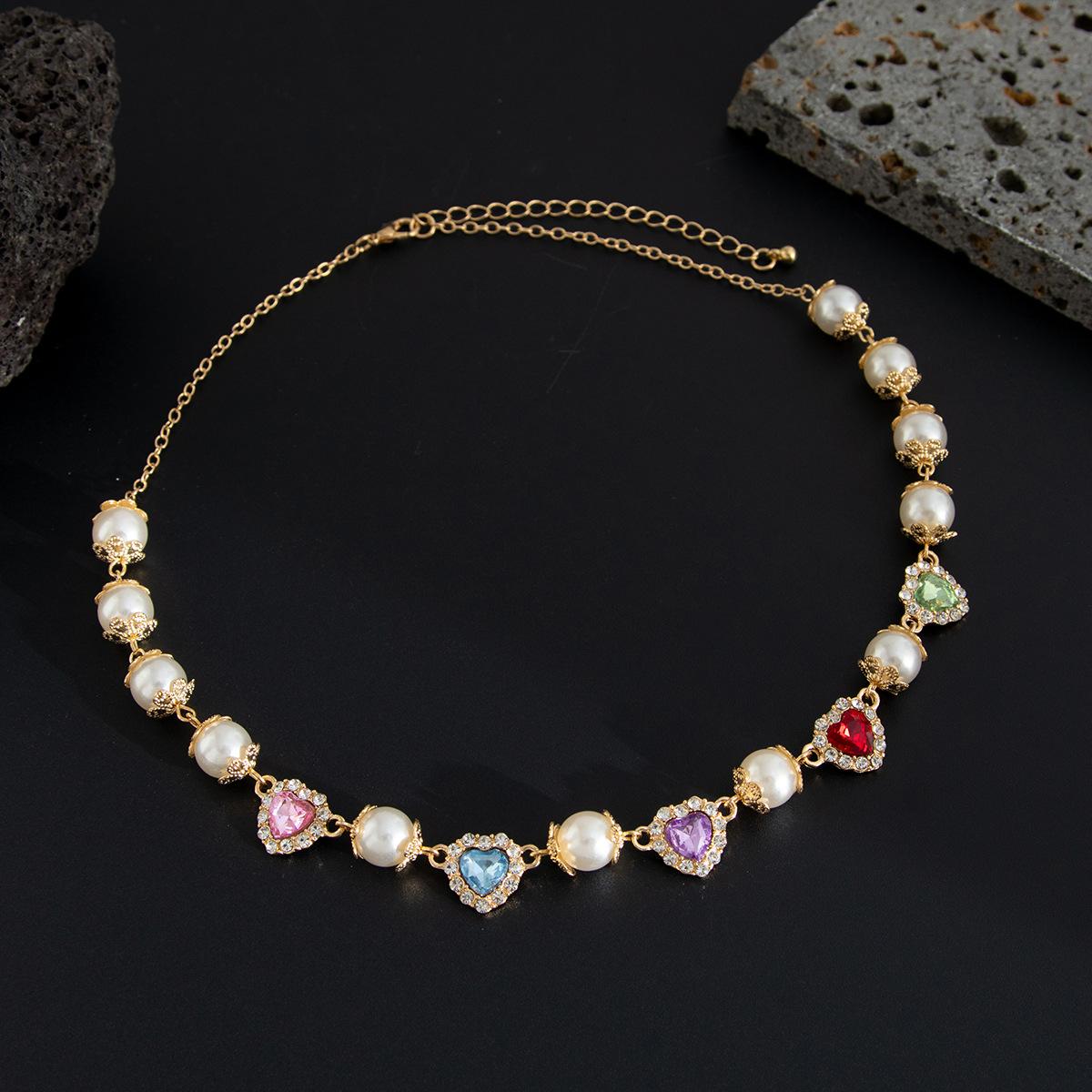 Collar con costuras de perlas y diamantes de colores de hip-hop europeo y americano, personalidad de moda para hombres, cadena de clavícula para hombres transfronteriza, joyería de comercio exterior