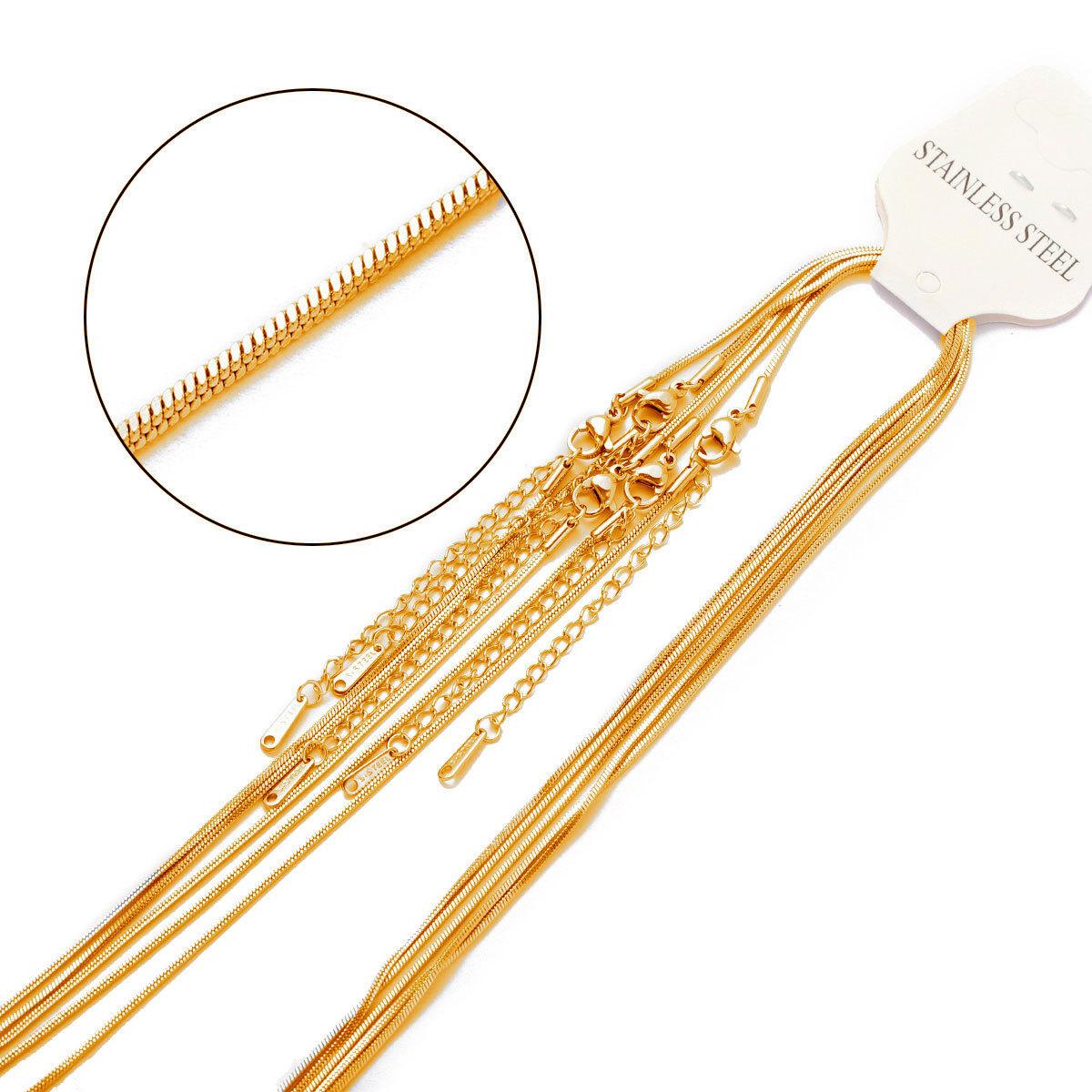 Cadena de labios de oro real de 18 quilates con retención de color, collar de acero de titanio para mujer, cadena de serpiente redonda lateral, cadena de cladosina de acero inoxidable