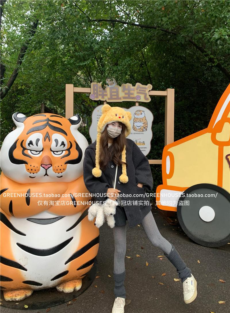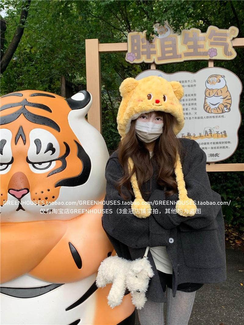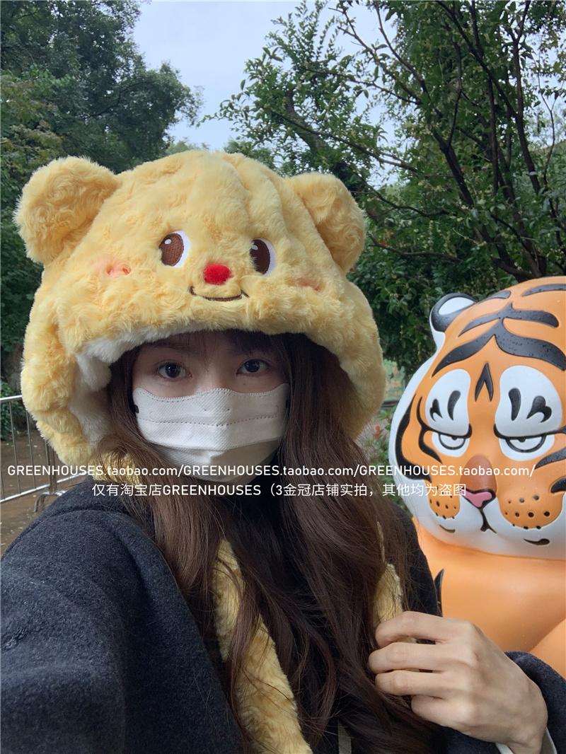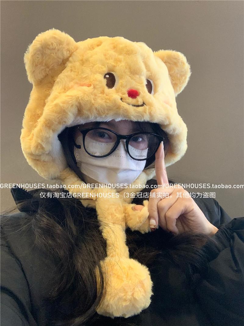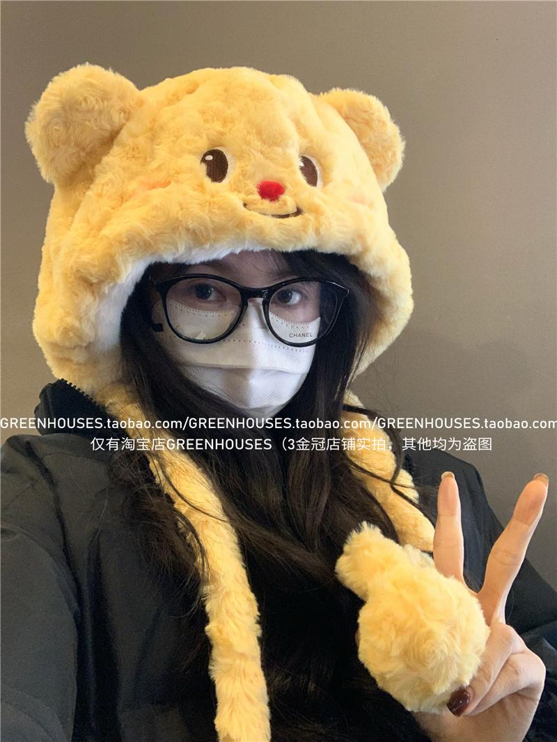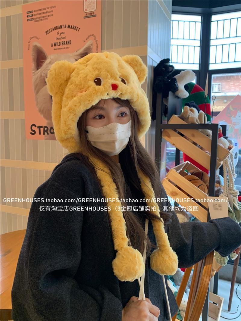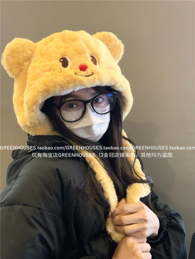 Lindo Oso de Mantequilla de Dibujos Animados Felpa Sombrero Lei Feng para Mujer Invierno Cálido Protección Profunda para las Orejas Gorro para Fotos de Equitación