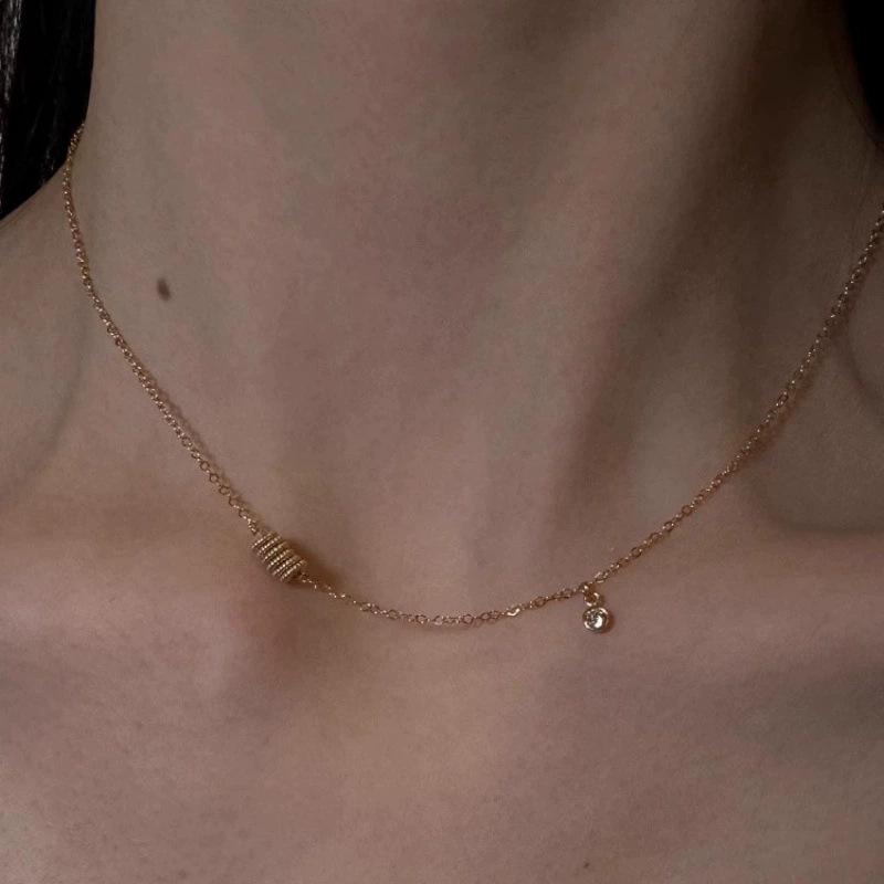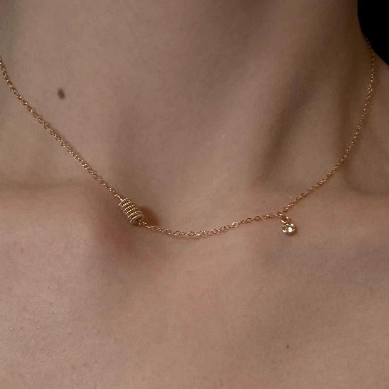 Collar de Anillo Corredizo Dorado Francés Moda Vintage Colgante de Alta Gama Cadena Clavicular Nuevo para Mujer Combinación Total Estilo Simple Cadena de Collar