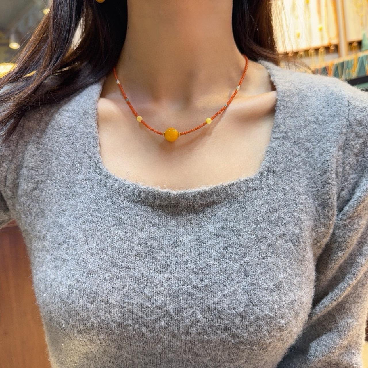 Diseño Original Collar de Ágata Roja del Sur Natural Cuenta Única Cadena Clavicular Rojo Sur Moda Verano Bienestar en Vivo