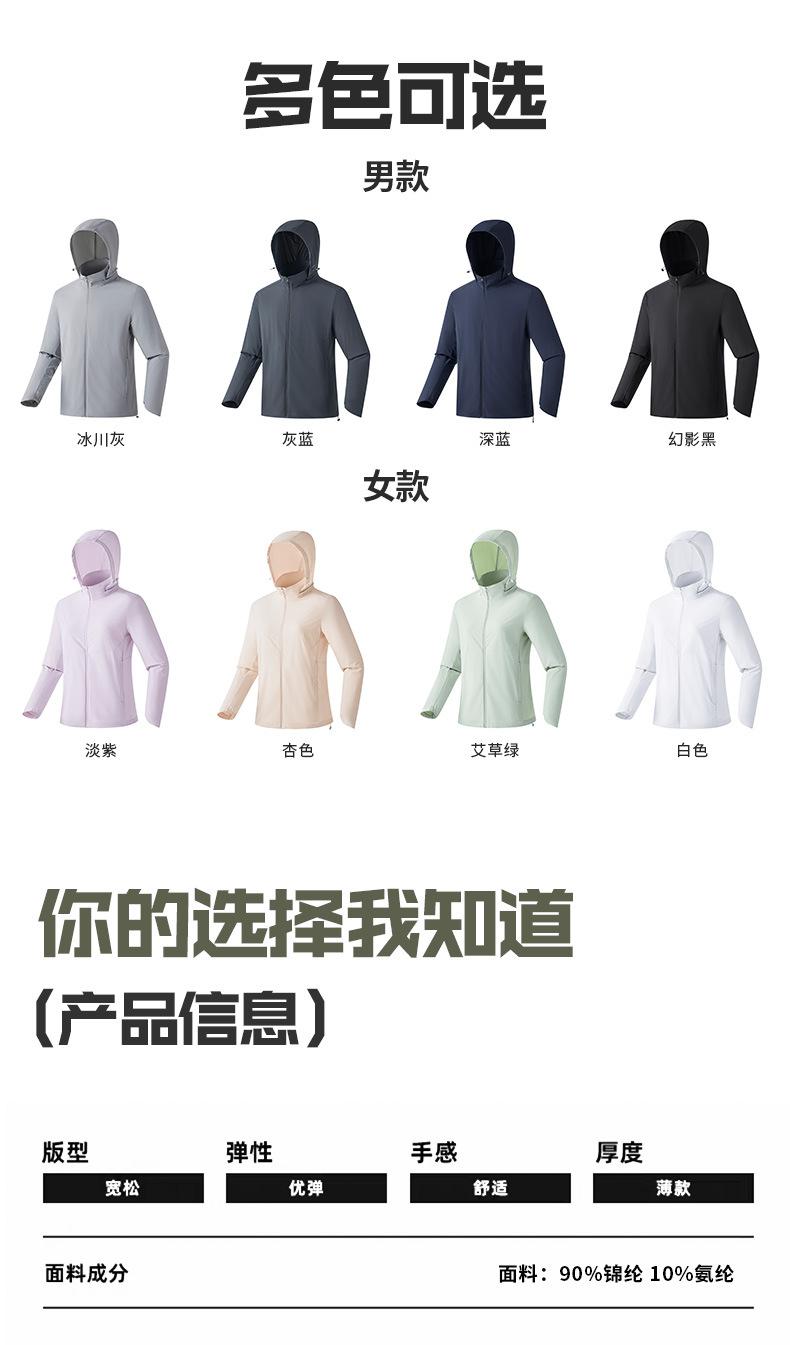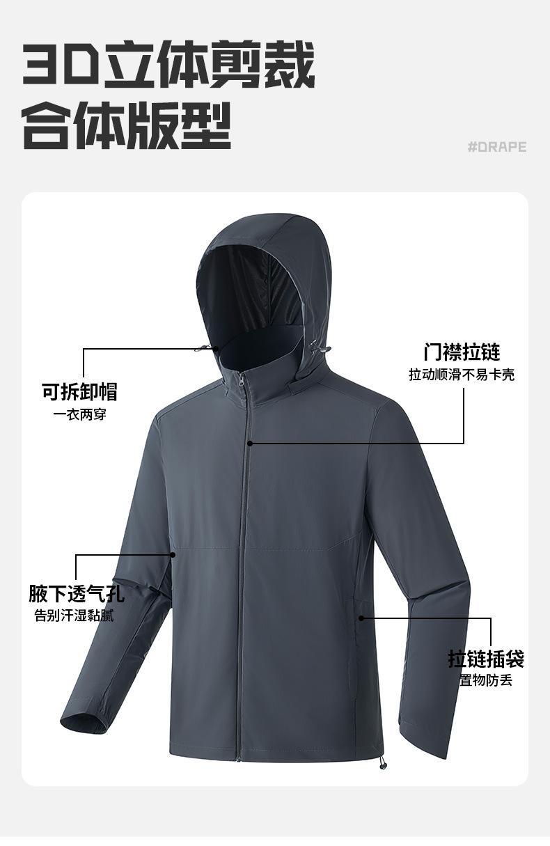 Ropa de verano transpirable de seda helada con protección solar UPF50 para hombres y mujeres, deportes al aire libre, protección UV, capucha extraíble.