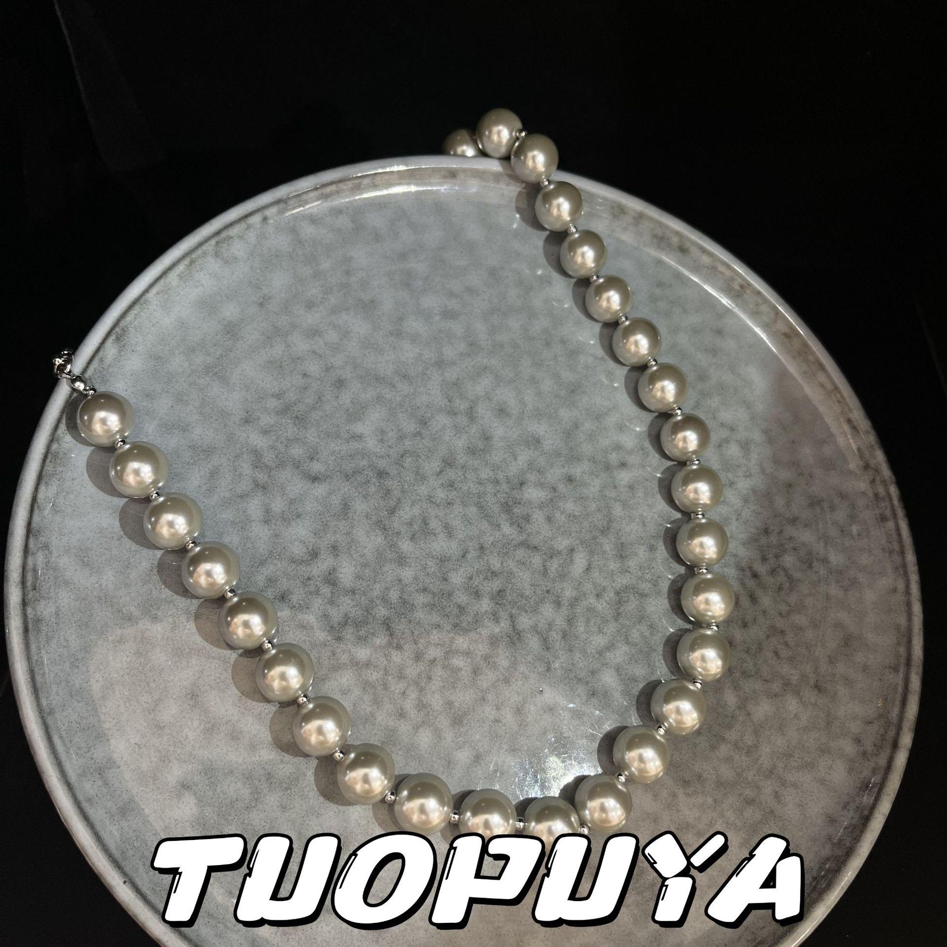 Collar Qingdao Medieval Vintage Retro Estilo Palacio Femenino Lujo Accesible Set de Clip para Oreja de Perla Gris