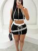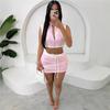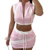 Europeo y Americano Nuevo Moda Transfronteriza Ajustado Calle Cremallera Sin Mangas Ombliguera Top Chaleco Cadera Encaje Falda con Cordones Traje