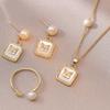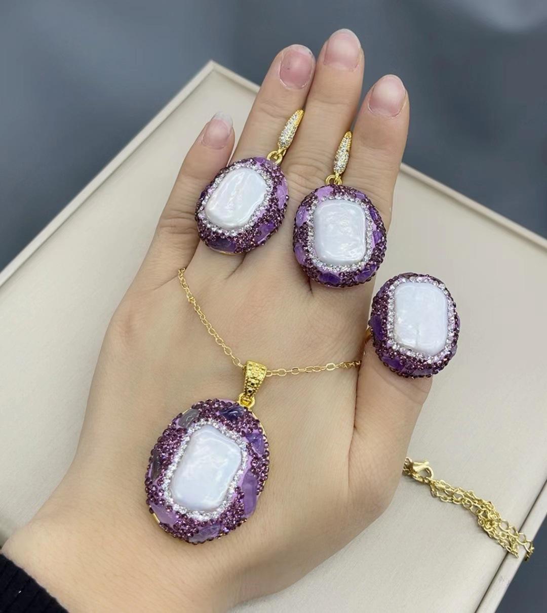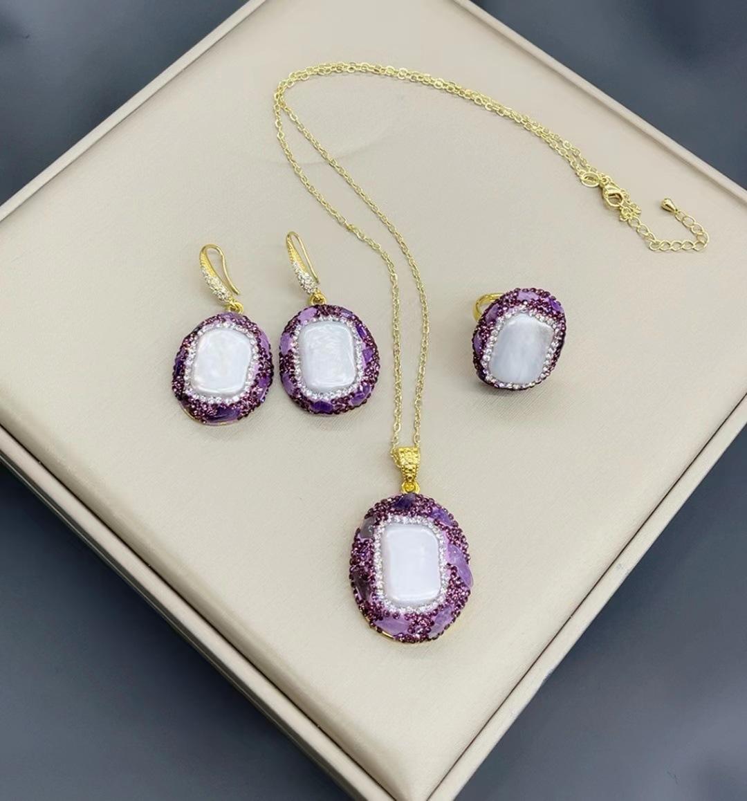 Nuevo Conjunto de Tres Piezas de Collar, Aretes y Anillo de Perlas Naturales de Agua Dulce, Conjunto Elegante y de Moda, Colgante, Aretes, Anillo