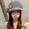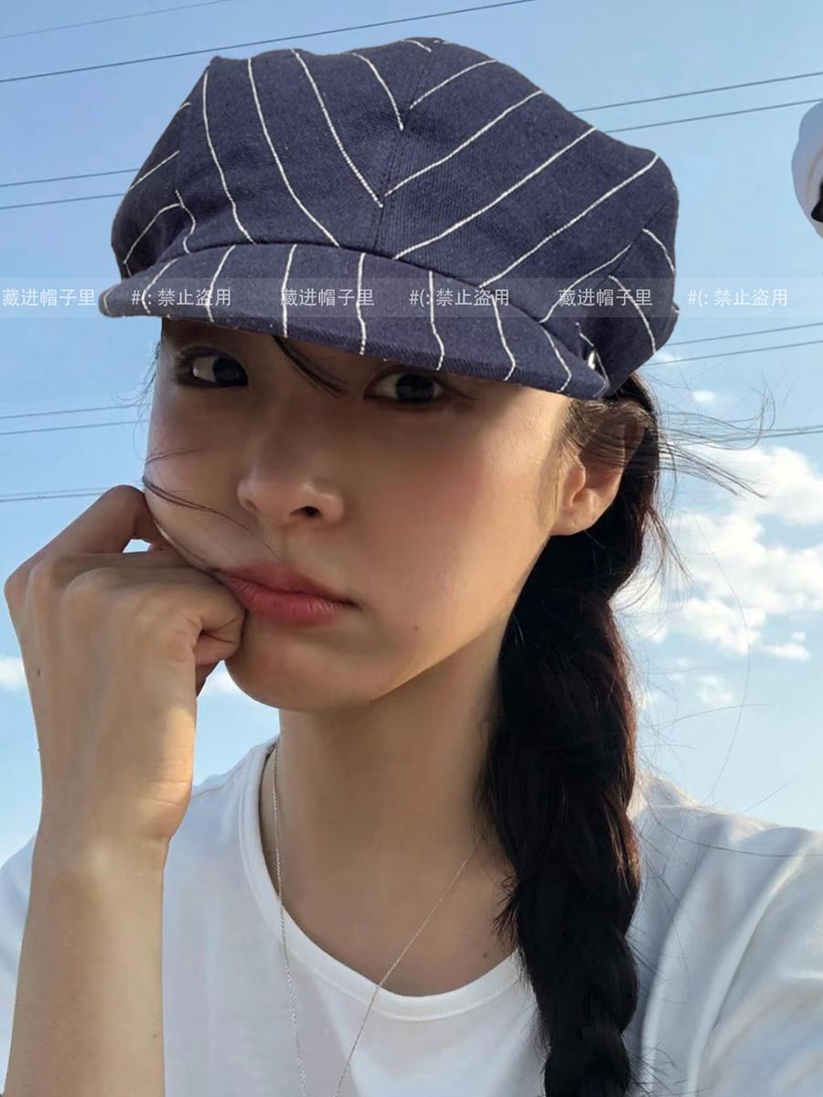 25 primavera y verano Corea del Sur nicho blogger ins con gorra a rayas femenino retro arte gorra octogonal gorra de repartidor masculino