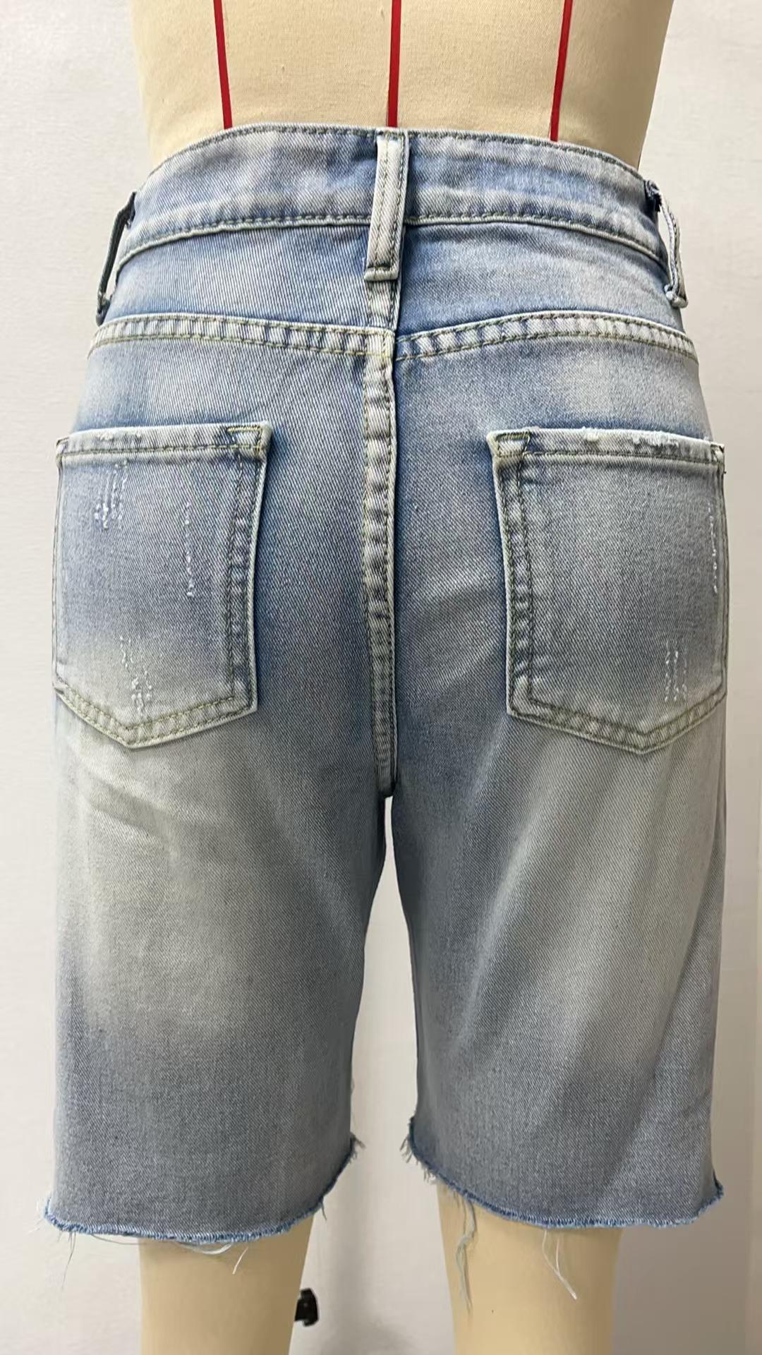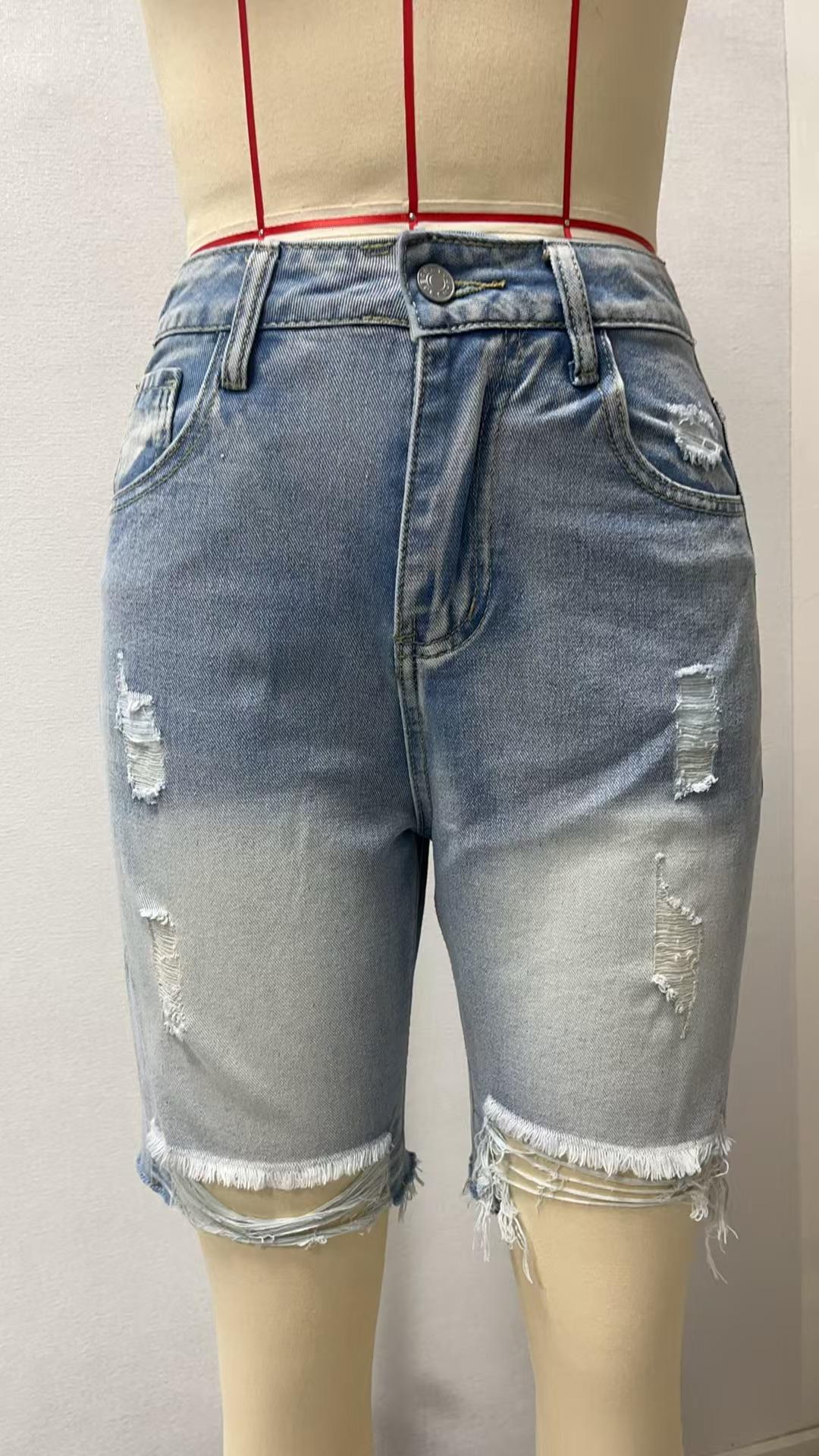 Ropa de Mujer Europea y Americana de Comercio Exterior Transfronterizo 2025 Amazon Pantalones Cortos Sueltos de Cintura Media Jeans Rotos Mujer