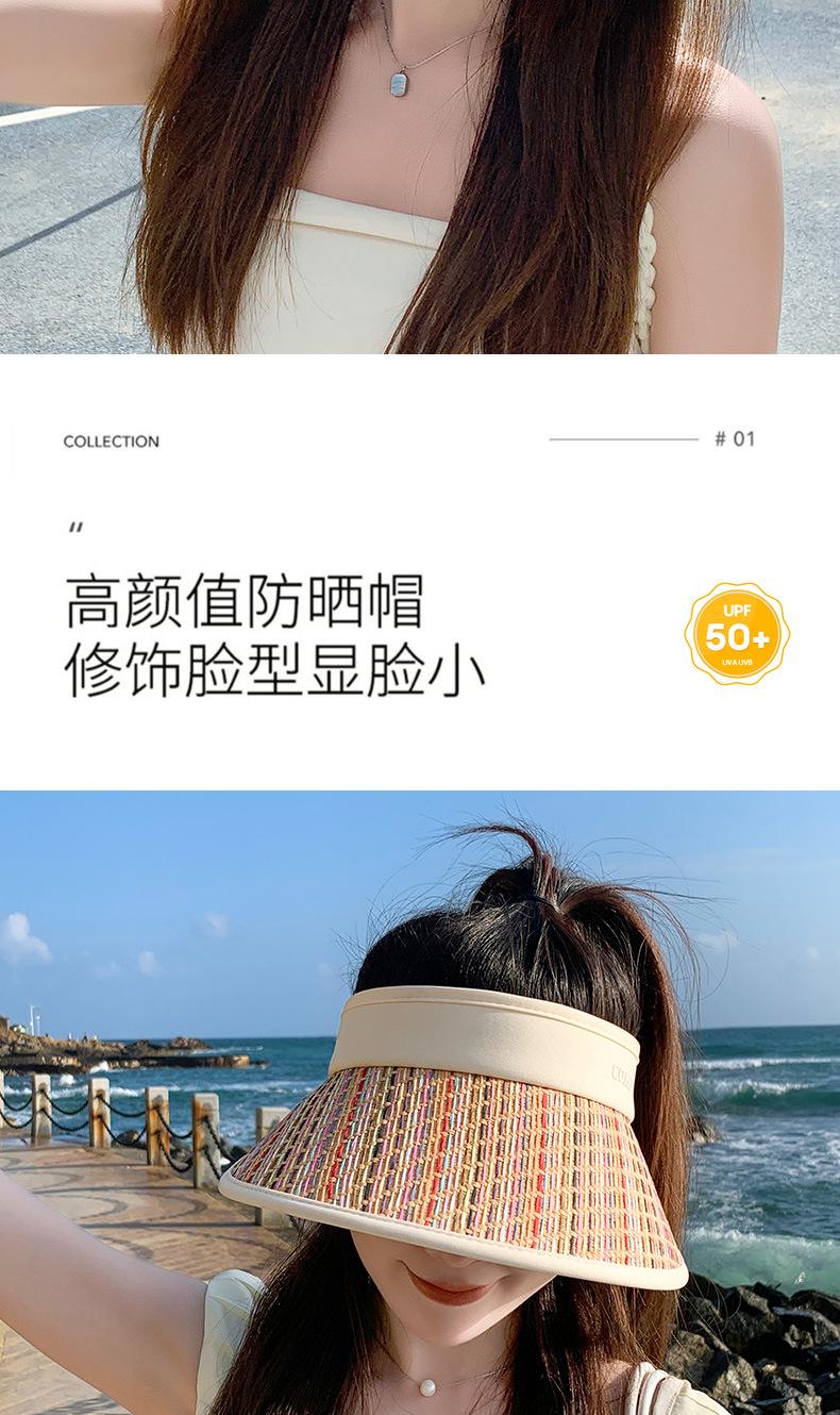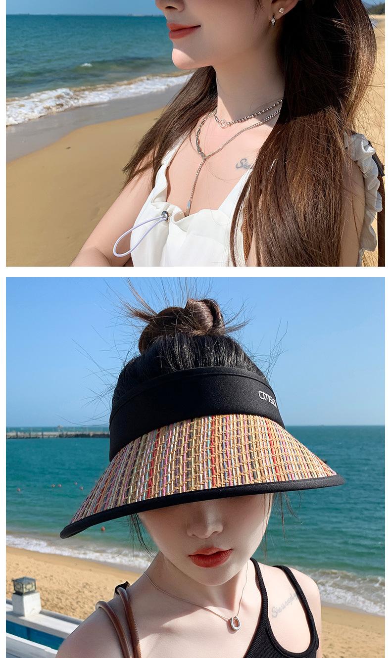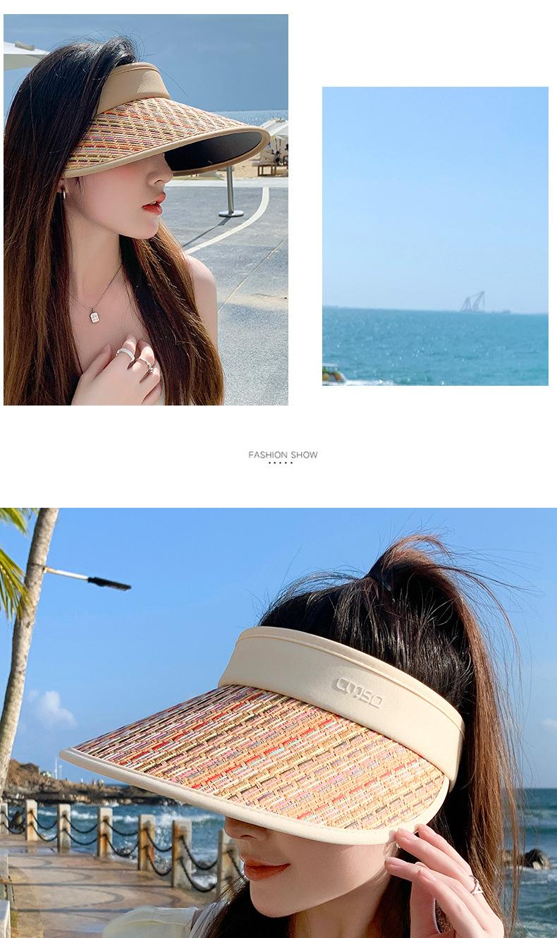 Sombrero Tejido Arcoíris Nuevo Sombrero de Moda para Mujer Sombrero de Copa Vacía Sombrero de Playa para la Costa Sombrero de Ala Ancha Protección Solar Sombrero para el Sol