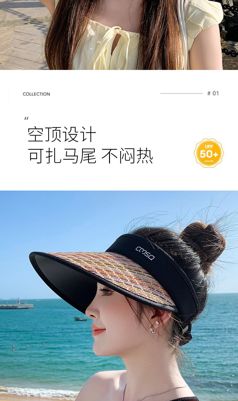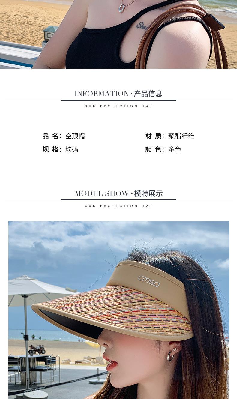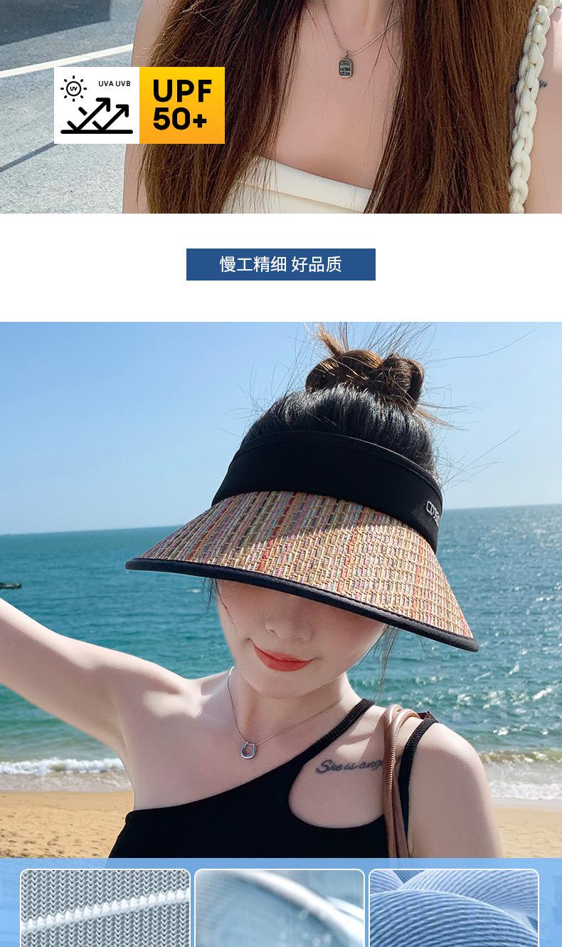 Sombrero Tejido Arcoíris Nuevo Sombrero de Moda para Mujer Sombrero de Copa Vacía Sombrero de Playa para la Costa Sombrero de Ala Ancha Protección Solar Sombrero para el Sol