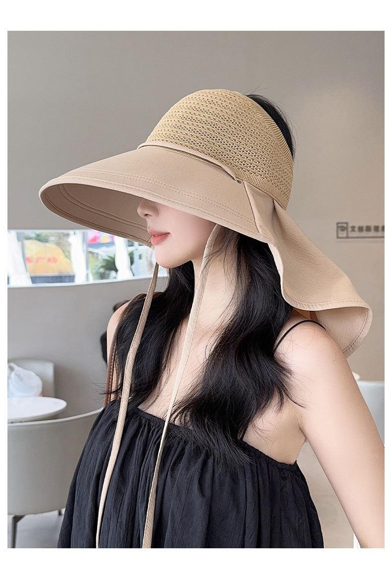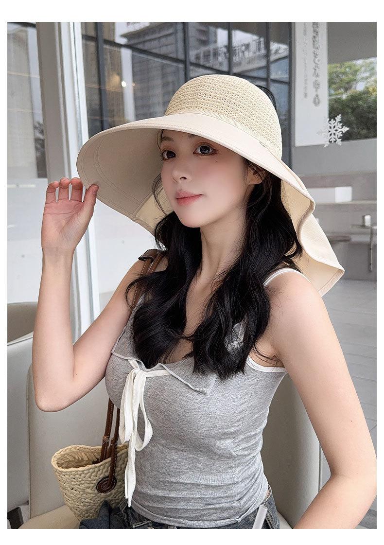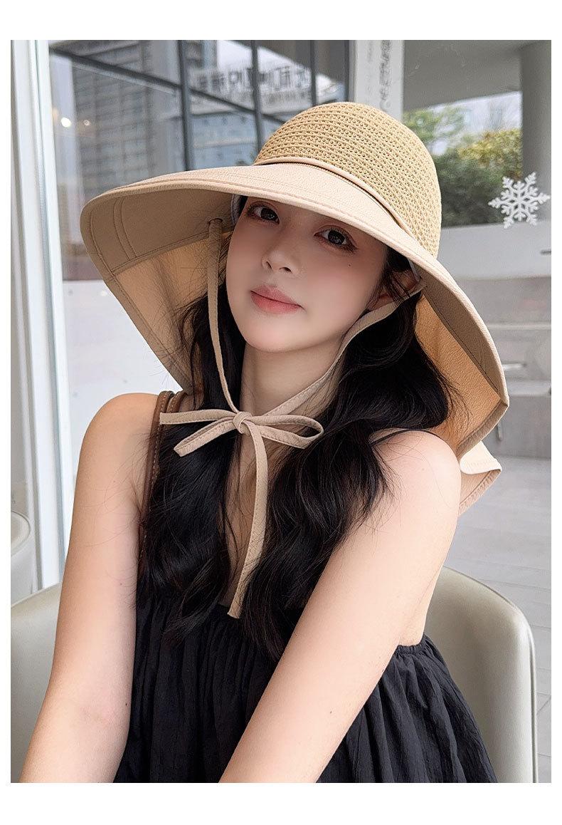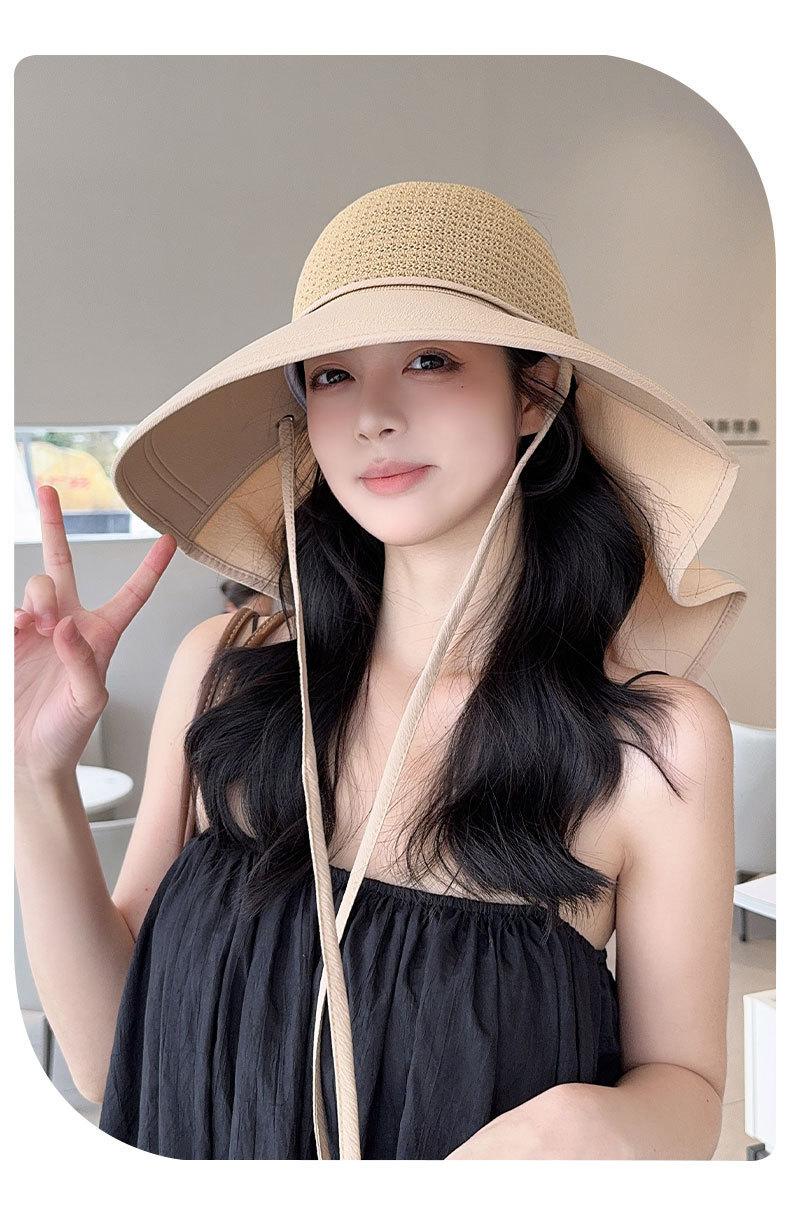 Sombrero de Sol para Mujer Estilo Coreano Combinable Lazo Verano Cubre Cara Anti-ultravioleta Plegable Chal Protector Solar Sombrero de Pescador
