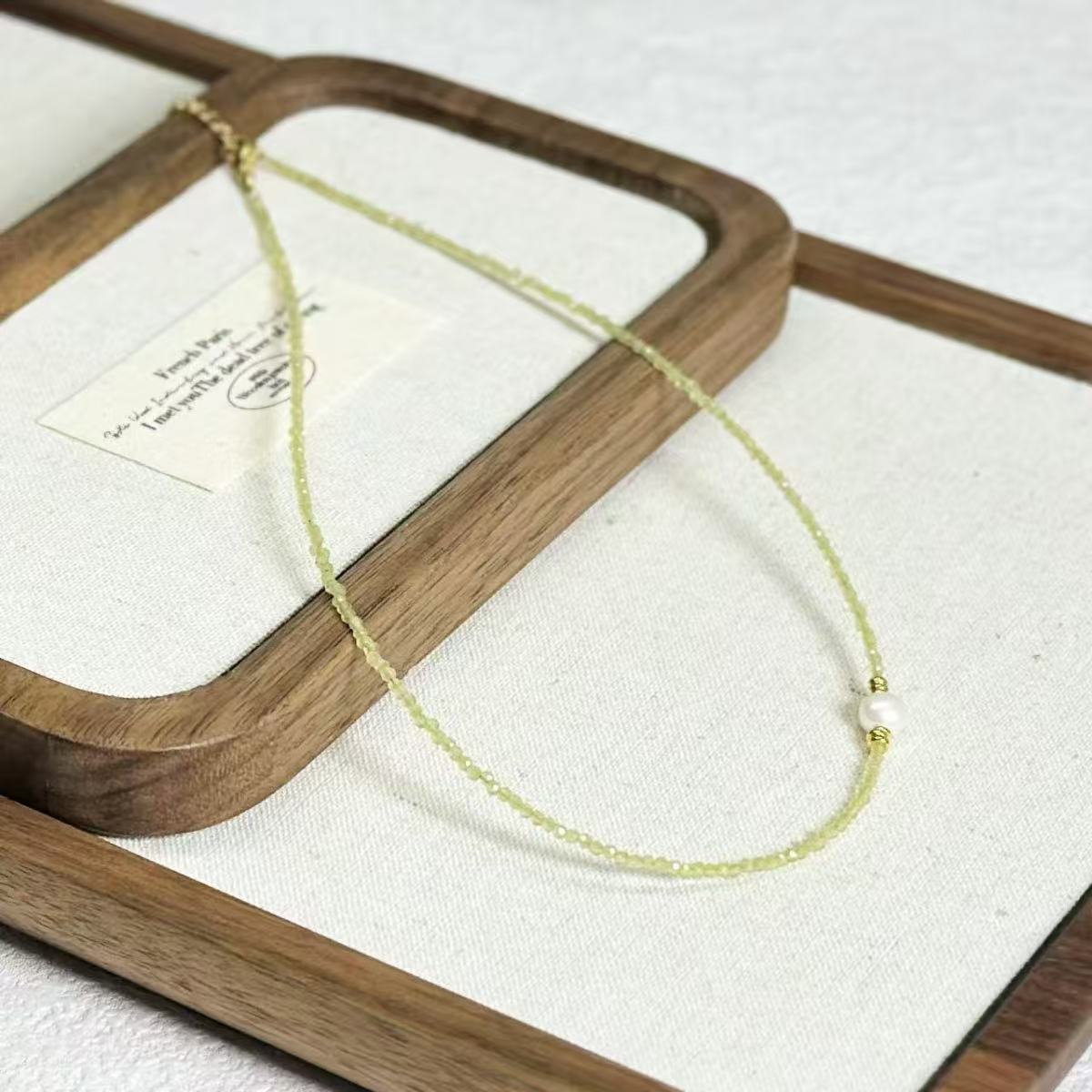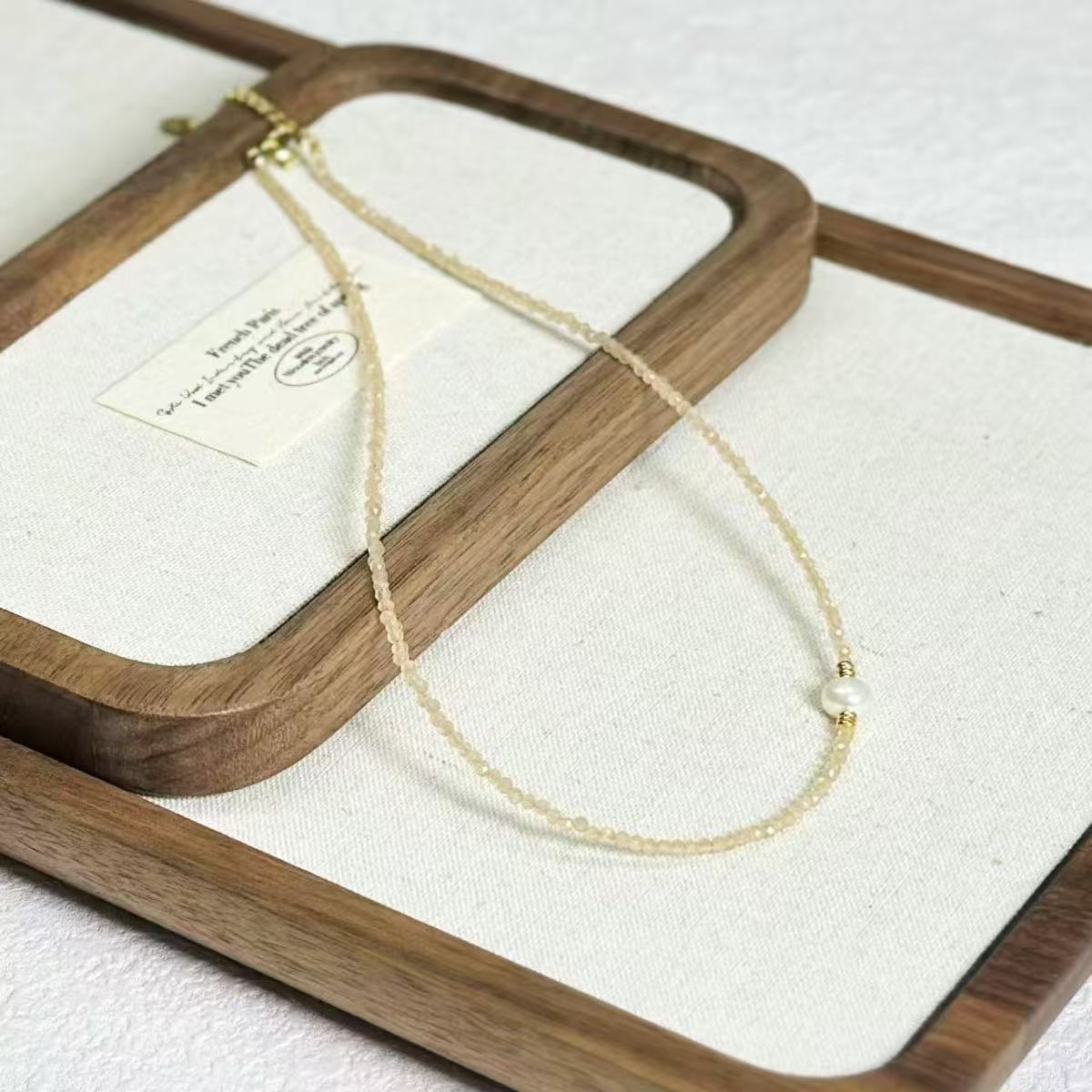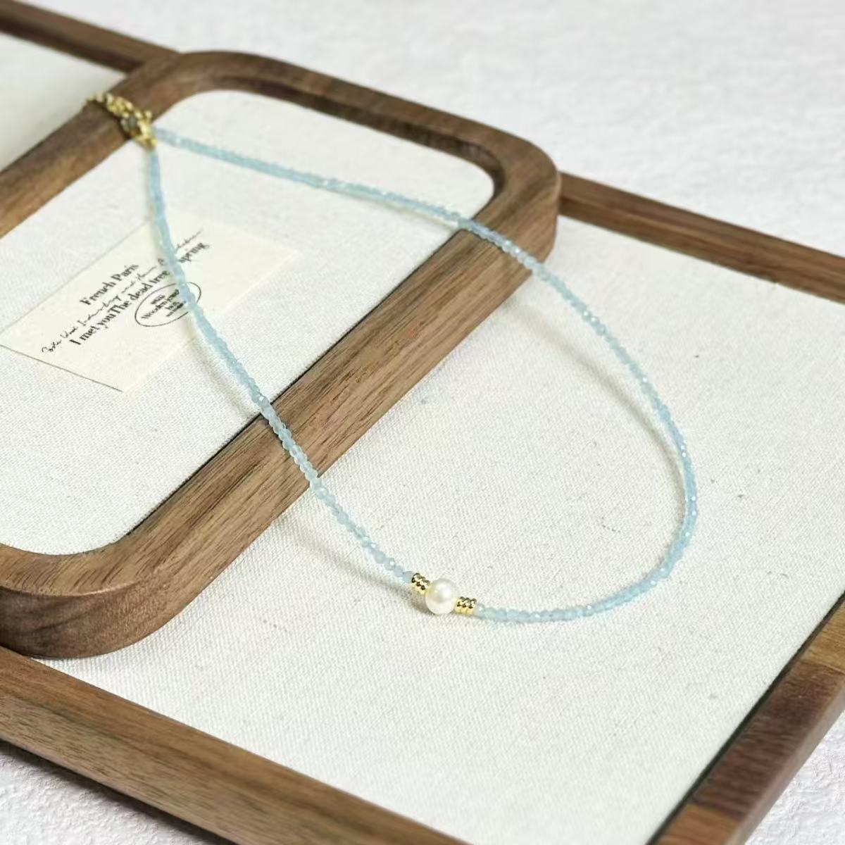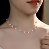 Collar de perlas de agua dulce de ojo de gato con explosión de primavera y verano, cadena de clavícula de lujo ligera que combina con todo, collar de regalo de novia de cristal