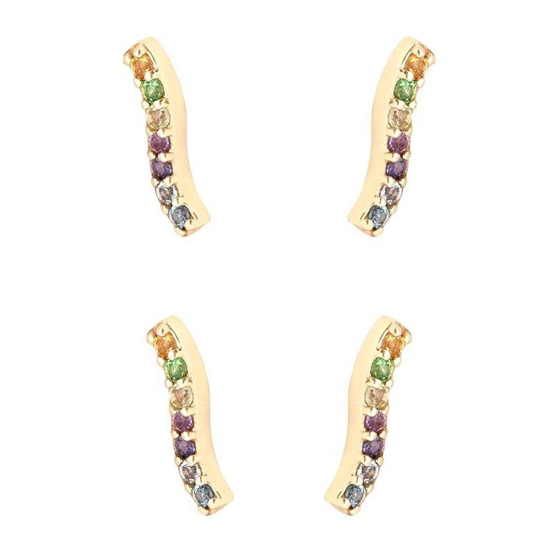 Aretes Ondulados Simétricos de Plata Esterlina S925 Transfronterizos Europeos y Americanos con Diamantes de Color Diseño de Nicho Moda Estilo Ins Aretes para Mujer