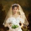 Corona de novia estilo bosque para damas europeas y americanas, tocado de súper hada, conjunto de tres piezas, tocado hecho a mano, corona para el cabello de boda, corona