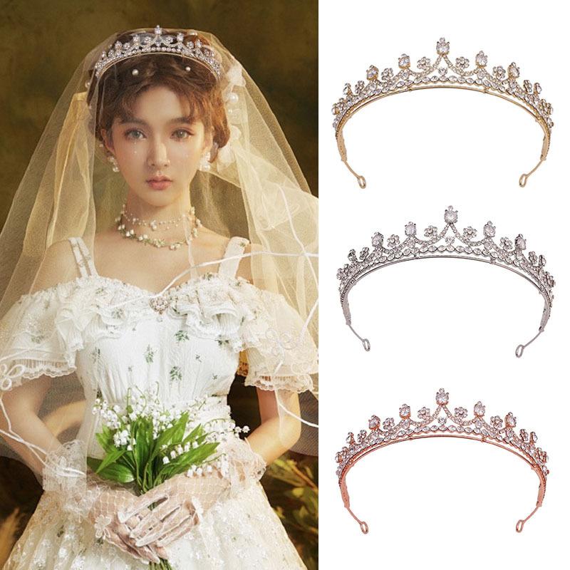 Corona de novia de aleación de circonita, tocado de novia europeo y americano, accesorios de boda de moda, diadema de princesa, diadema de cumpleaños