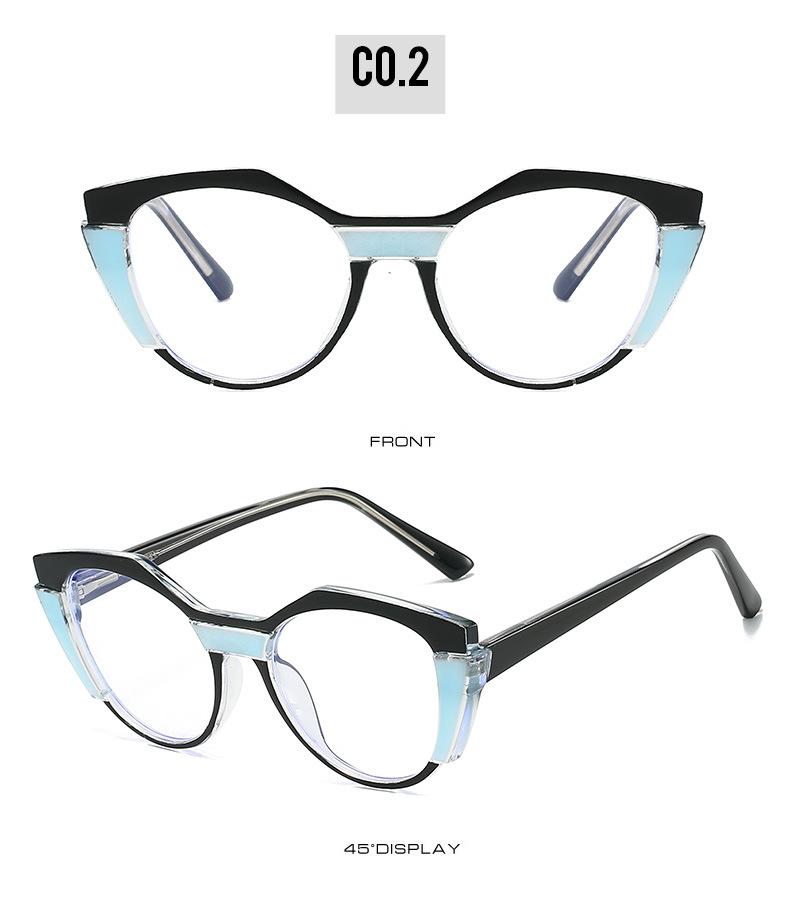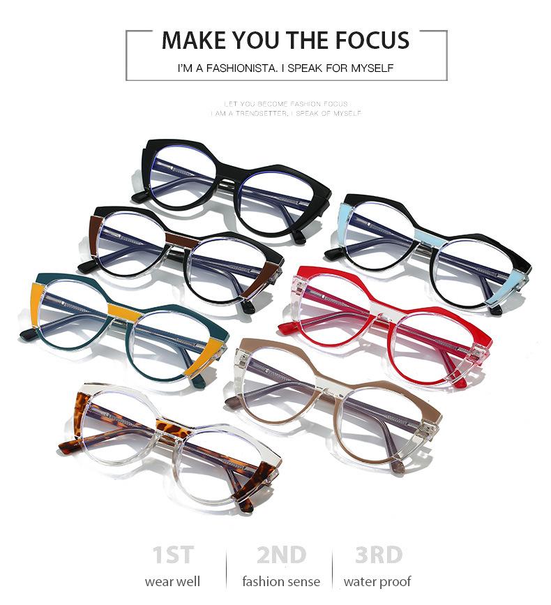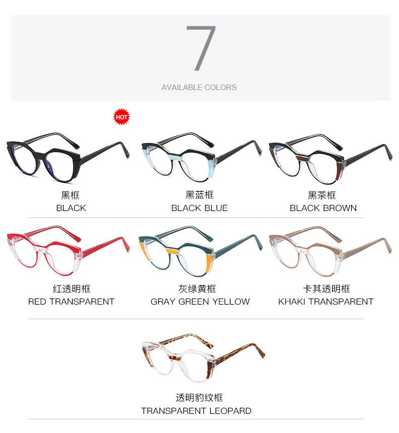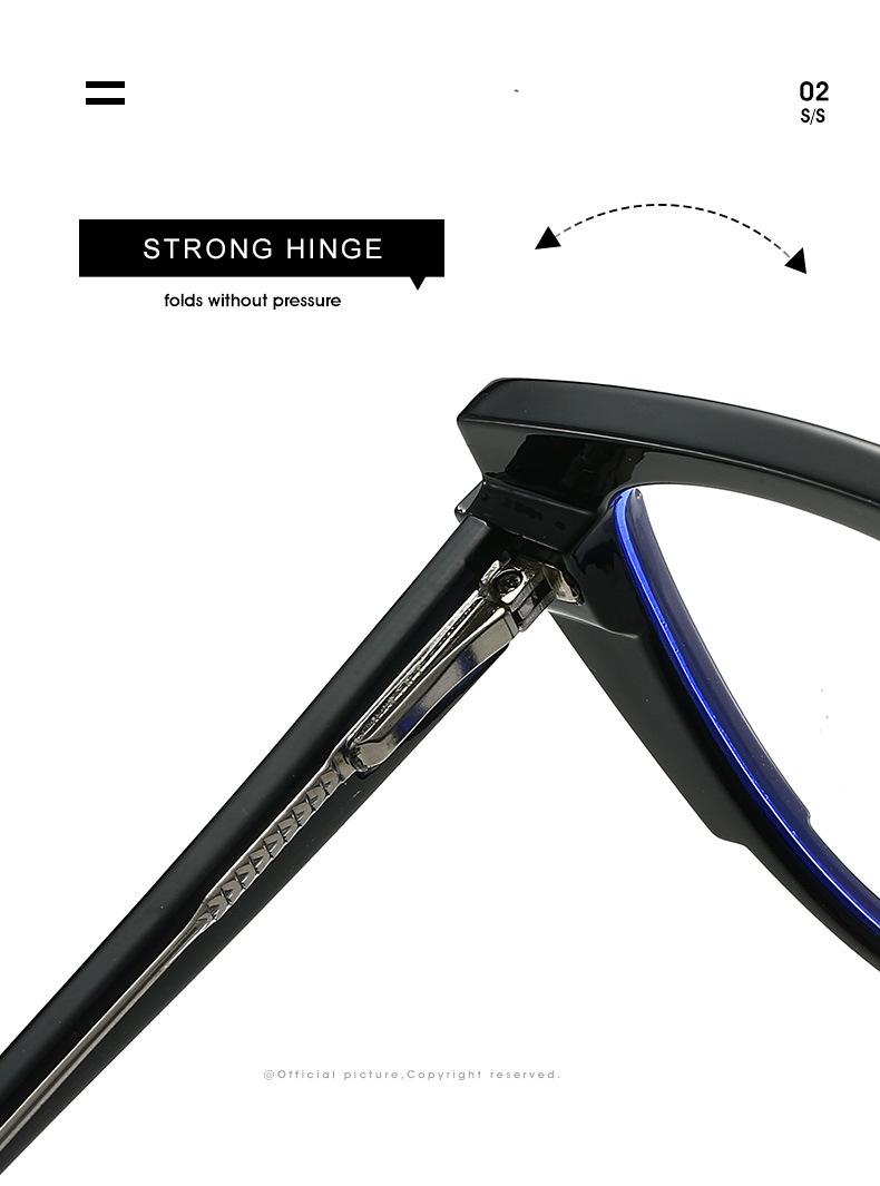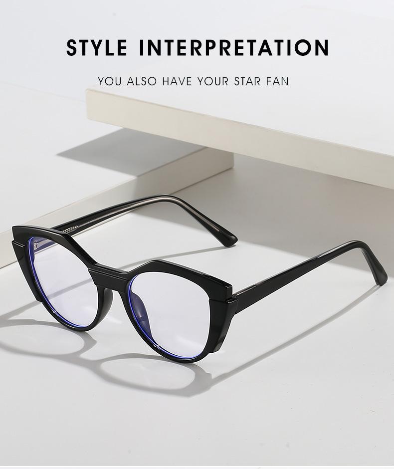 Gafas ojo de gato con inserto de patilla de resorte para mujer, estilo europeo y americano, montura para miopía anti-luz azul, tendencia de moda, gafas planas