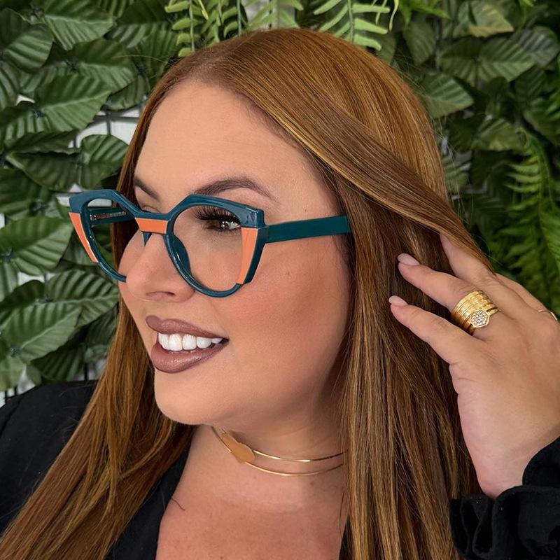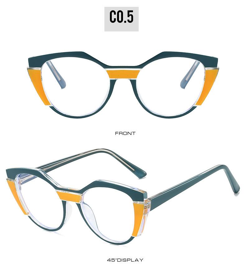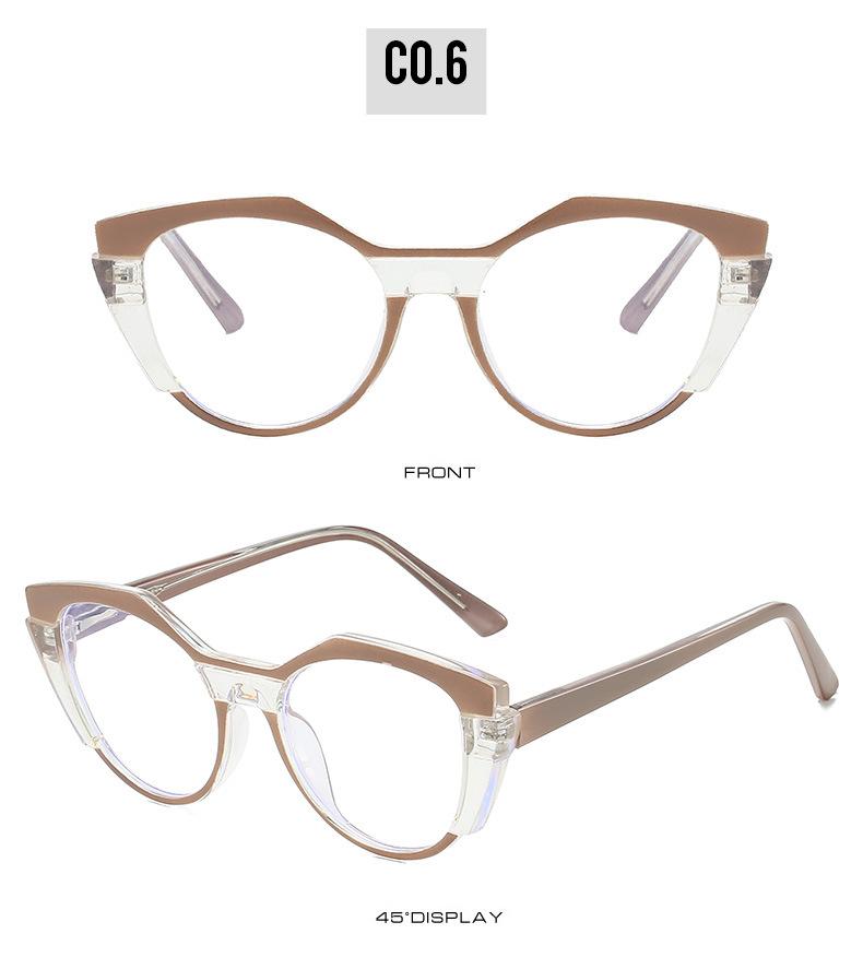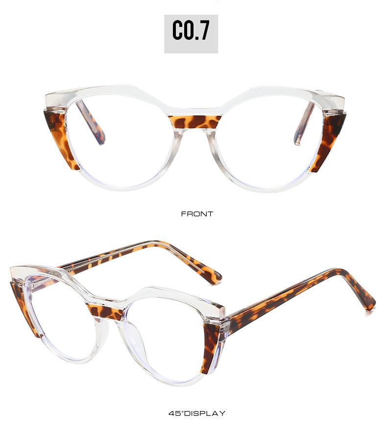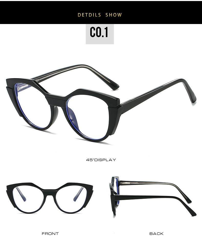 Gafas ojo de gato con inserto de patilla de resorte para mujer, estilo europeo y americano, montura para miopía anti-luz azul, tendencia de moda, gafas planas