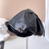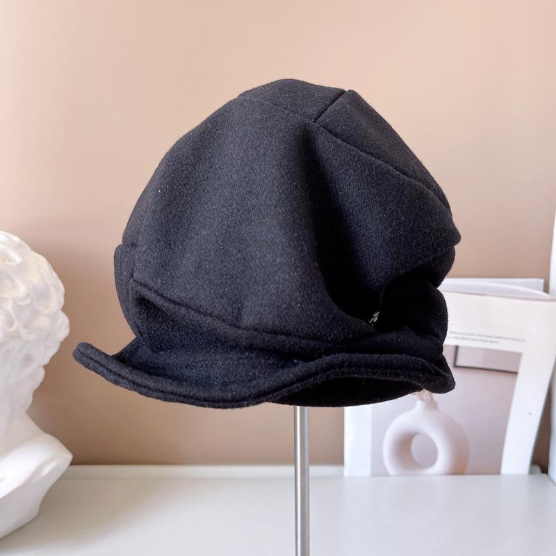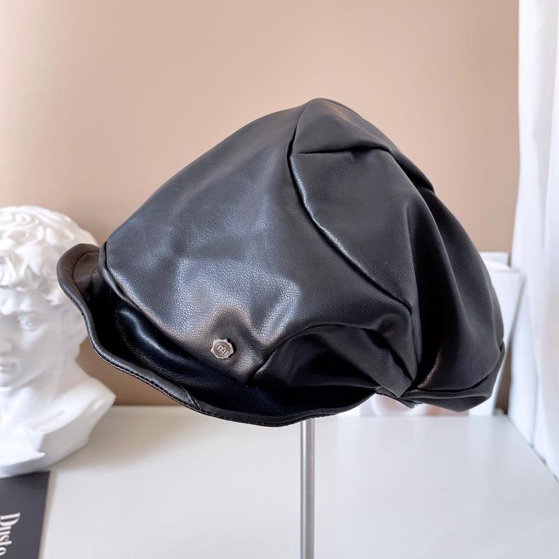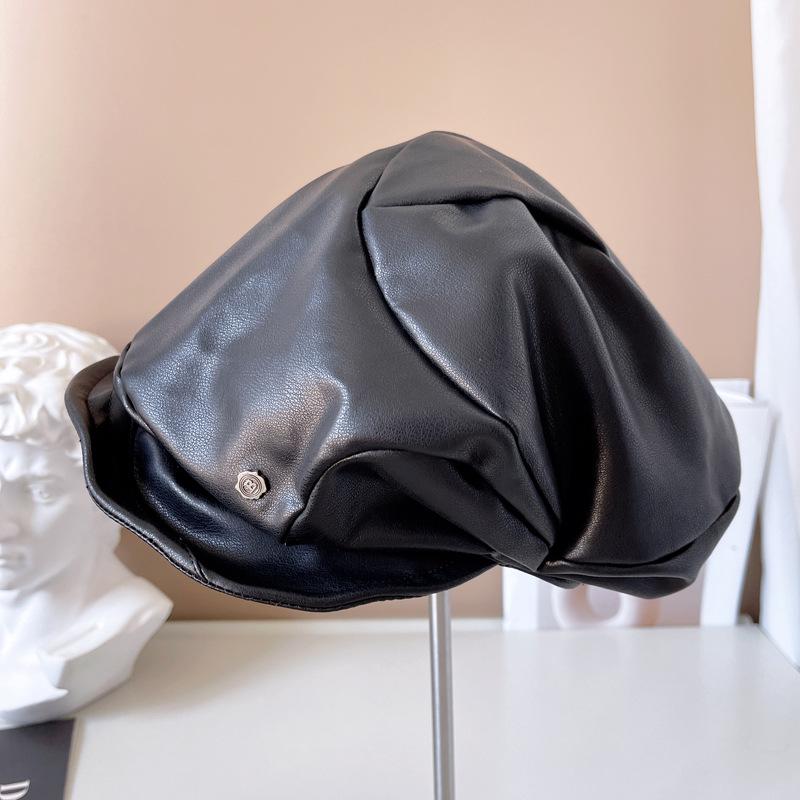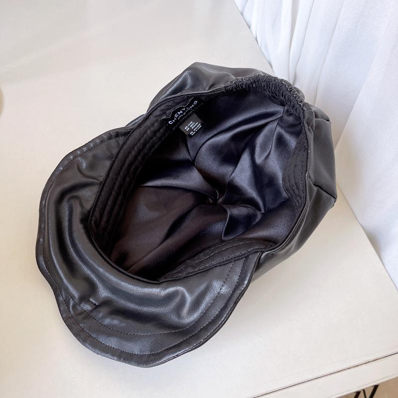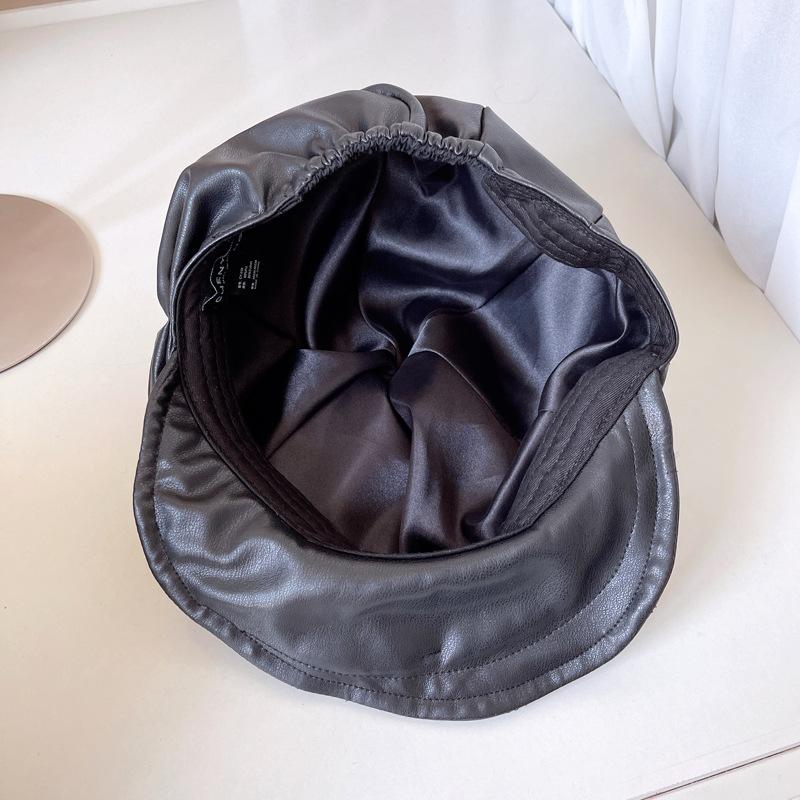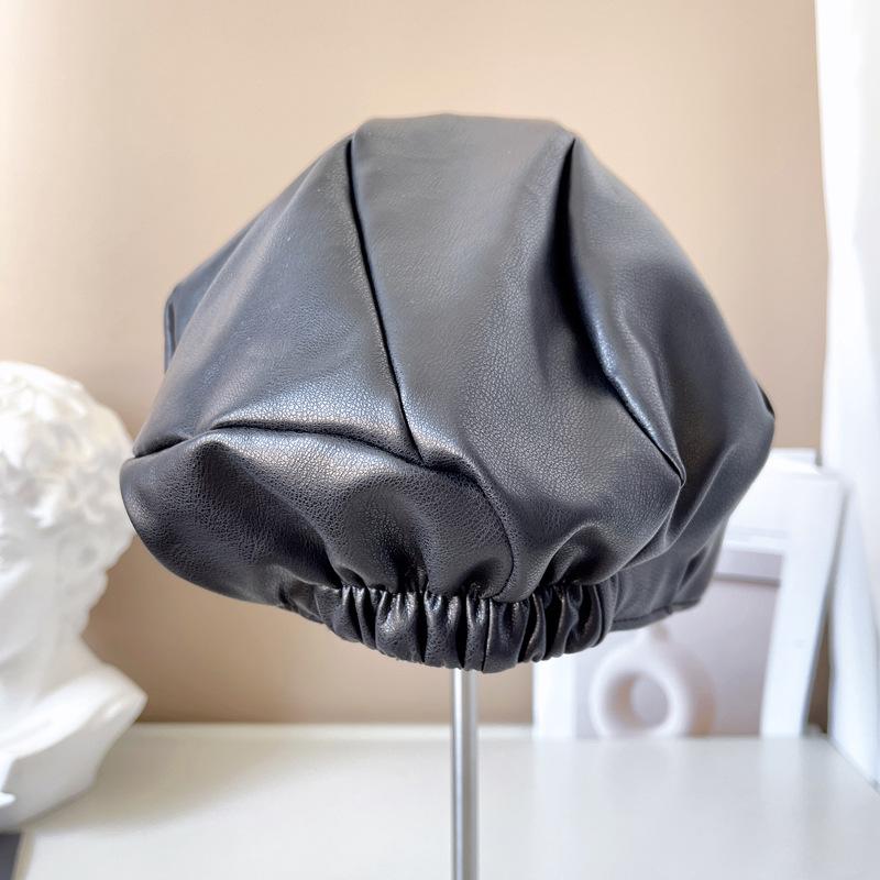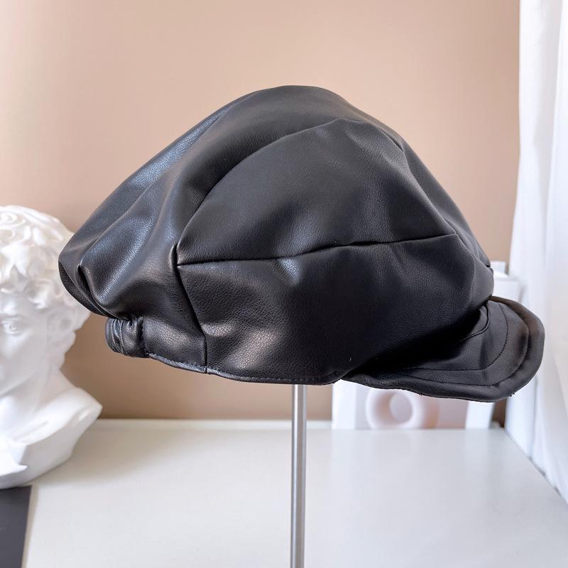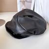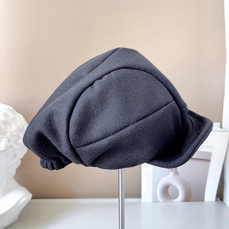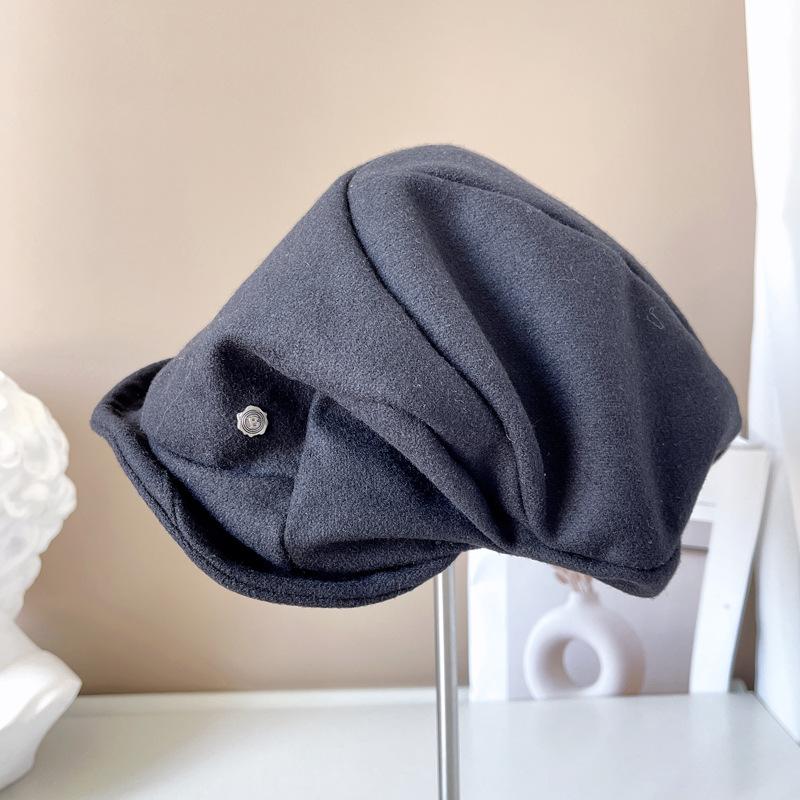 Tienda de compradores japonesa, gorra de lana de la misma mezcla, gorra de tela para niños de otoño e invierno, gorra de cuero sintético, gorra azul marino con diseño de nicho.