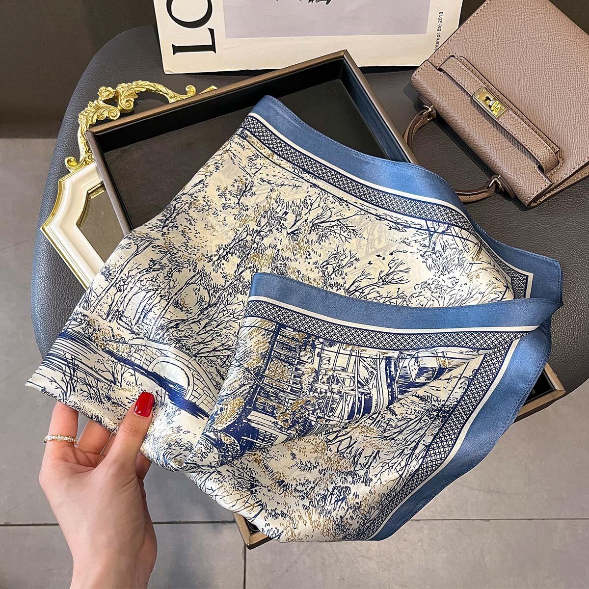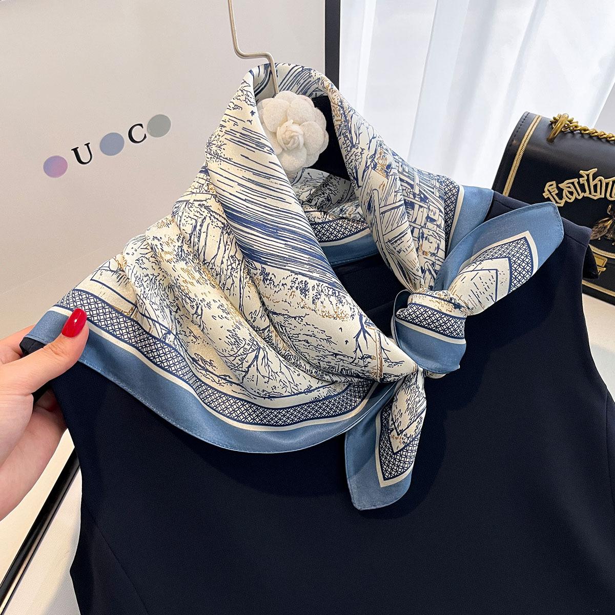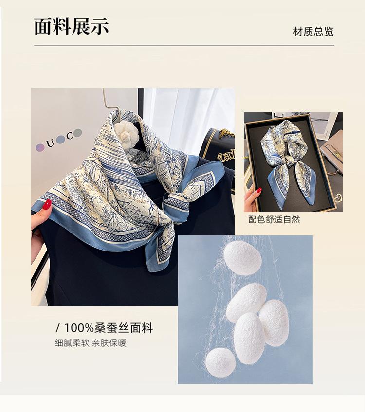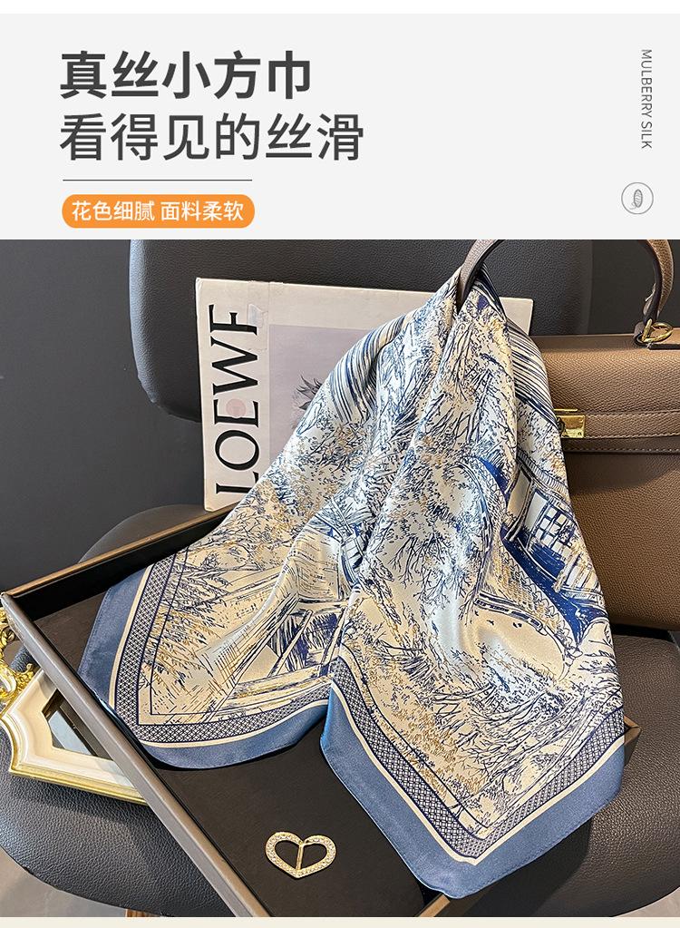 Bufanda de Seda de Morera de Seda Estilo Coreano Nuevo Boceto Jardín Bufanda de Seda de Alta Gama Verano Protección para el Cuello Protección Solar Chal Pequeño Transfronterizo