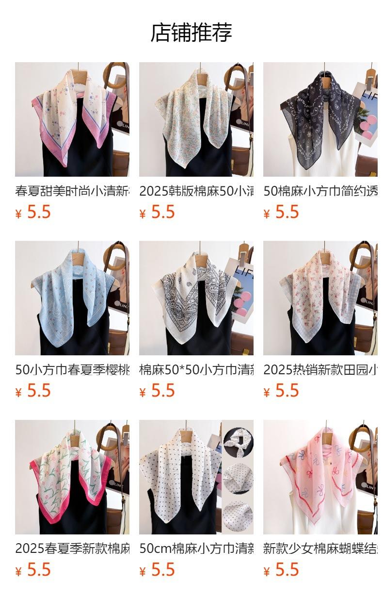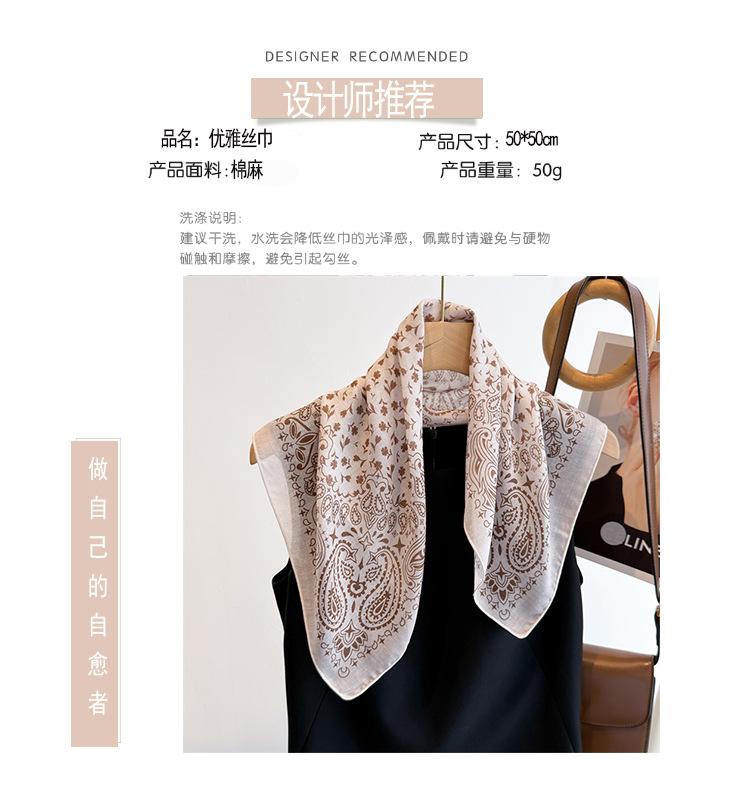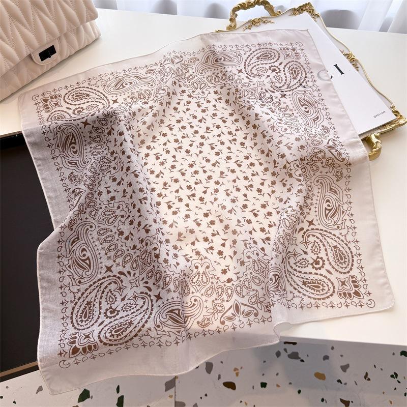 Bufanda Pequeña de Seda de Primavera y Verano Algodón y Lino Estilo Paisley Versátil Bufanda Cuadrada para Mujer Coreana Retro Francesa Protección para el Cuello Bufanda Pequeña de Moda