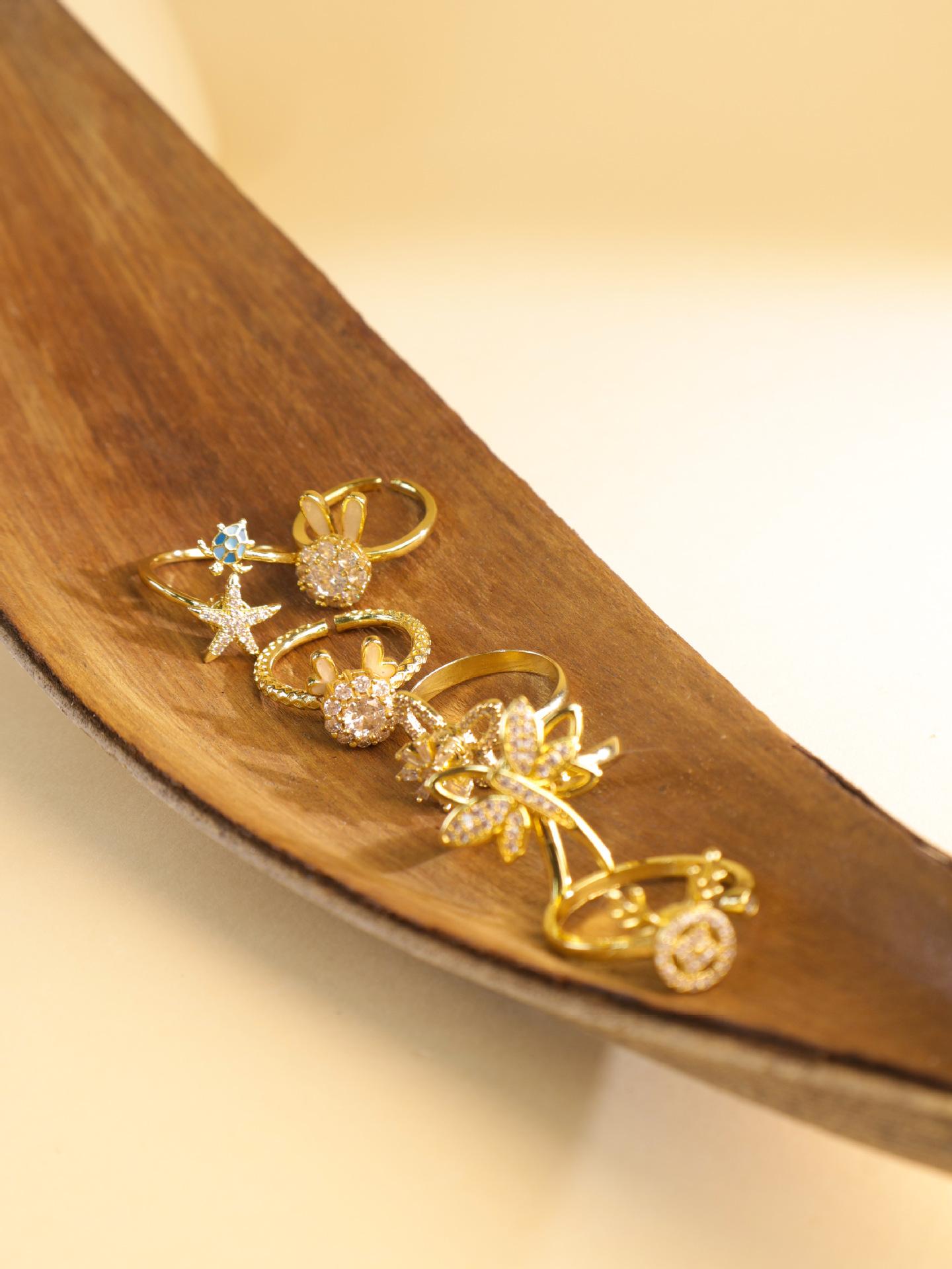 Jz95 cute round rabbit ring gold, Jz97 antler bronze coin ring gold, Jz99 cute little elk ring gold, Jz256 dra...