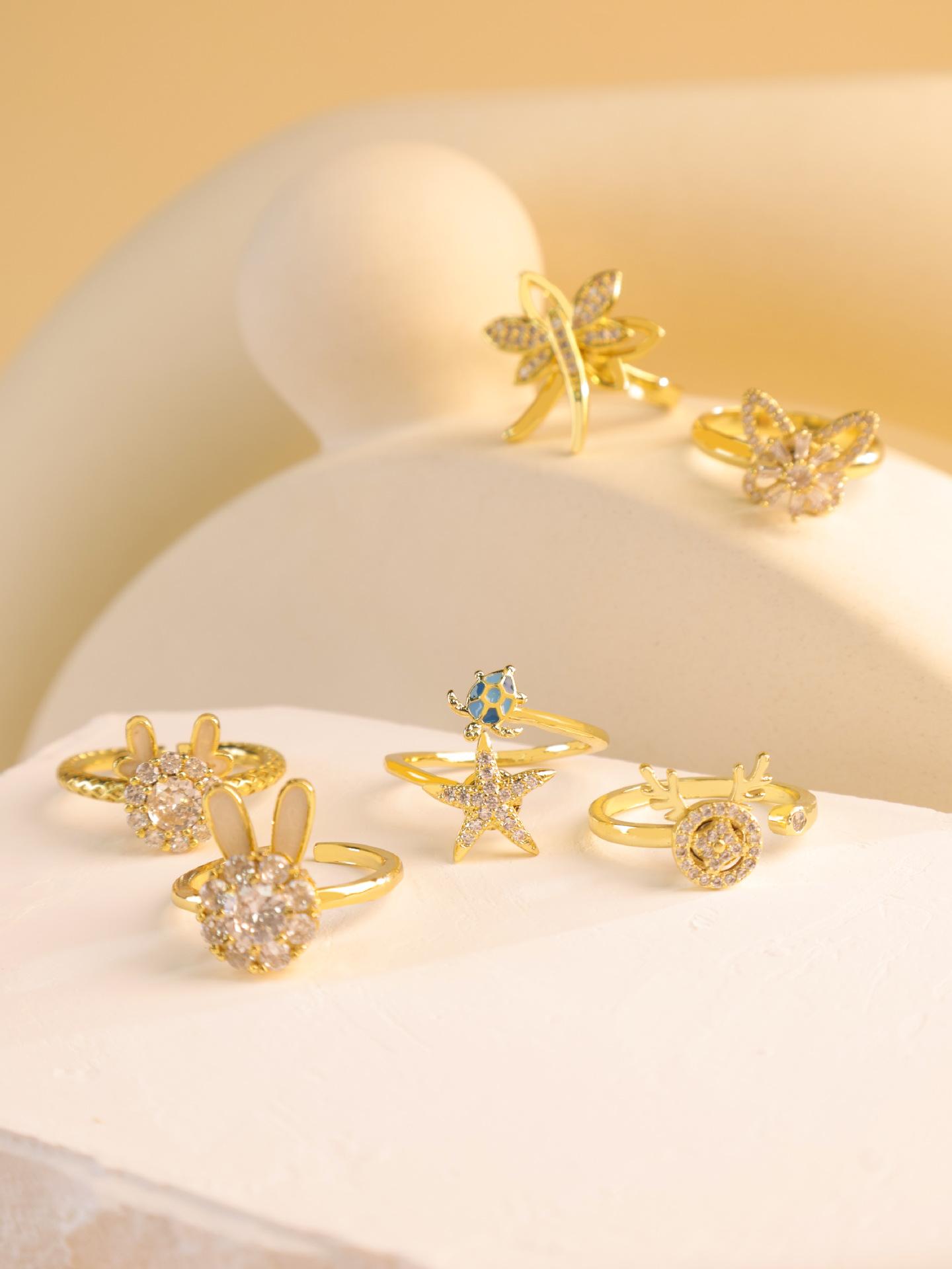Anillo para Mujer Anillo de Bambi Giratorio Temperamento Anillo Abierto Moda Clásica Pequeño Fresco Lindo Color Libre Anillo Combinable