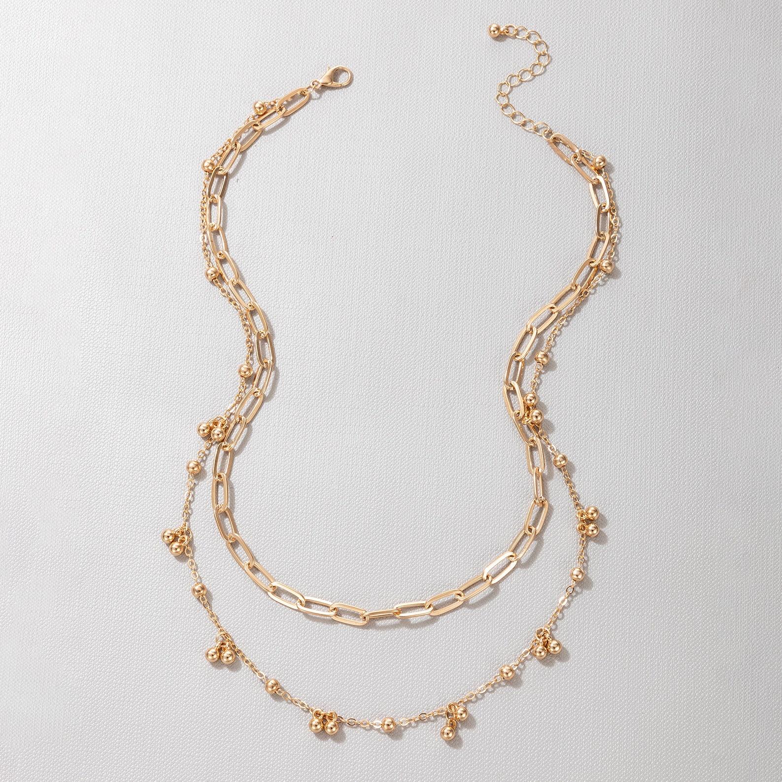 Collar Multicapa con Borla de Bolas de Metal Estilo Europeo y Americano Transfronterizo Diseño de Moda Collar de Cadena Calada Personalizado para Mujeres