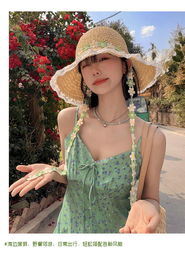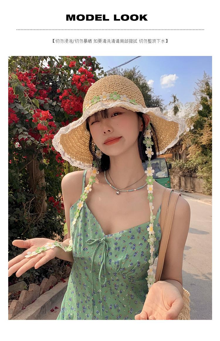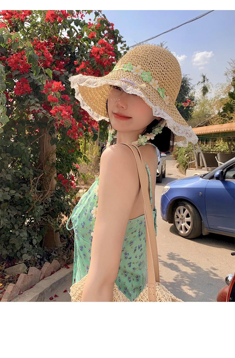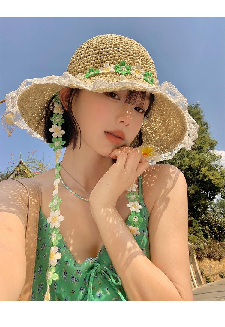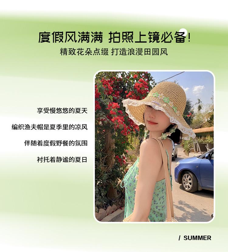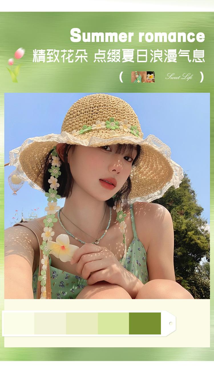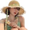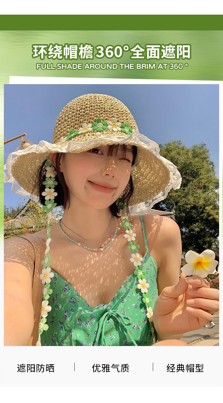 Sombrero de Paja con Encaje de Ala Francesa para Mujer Primavera 2025 Nuevo Sombrero para el Sol de Playa con Flor Sombrero Protector Solar