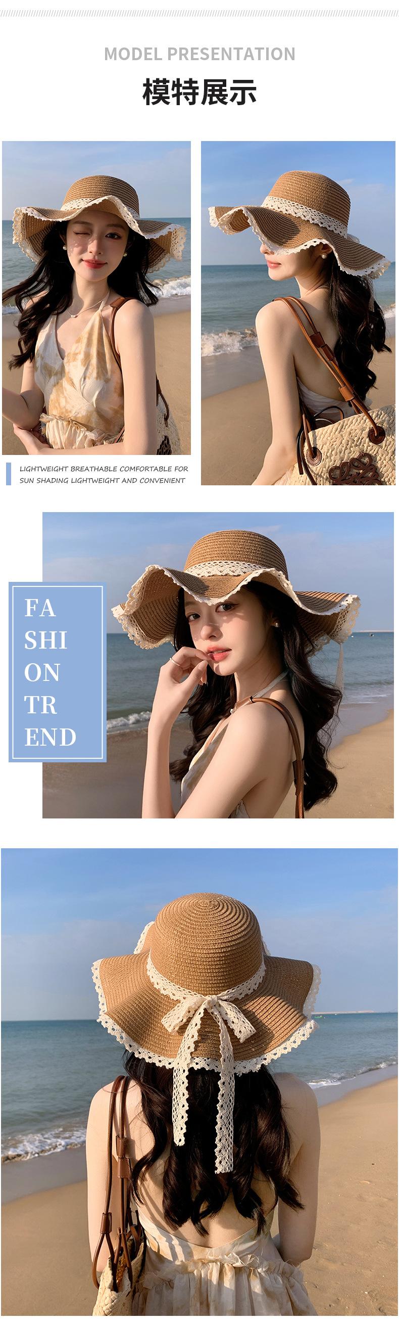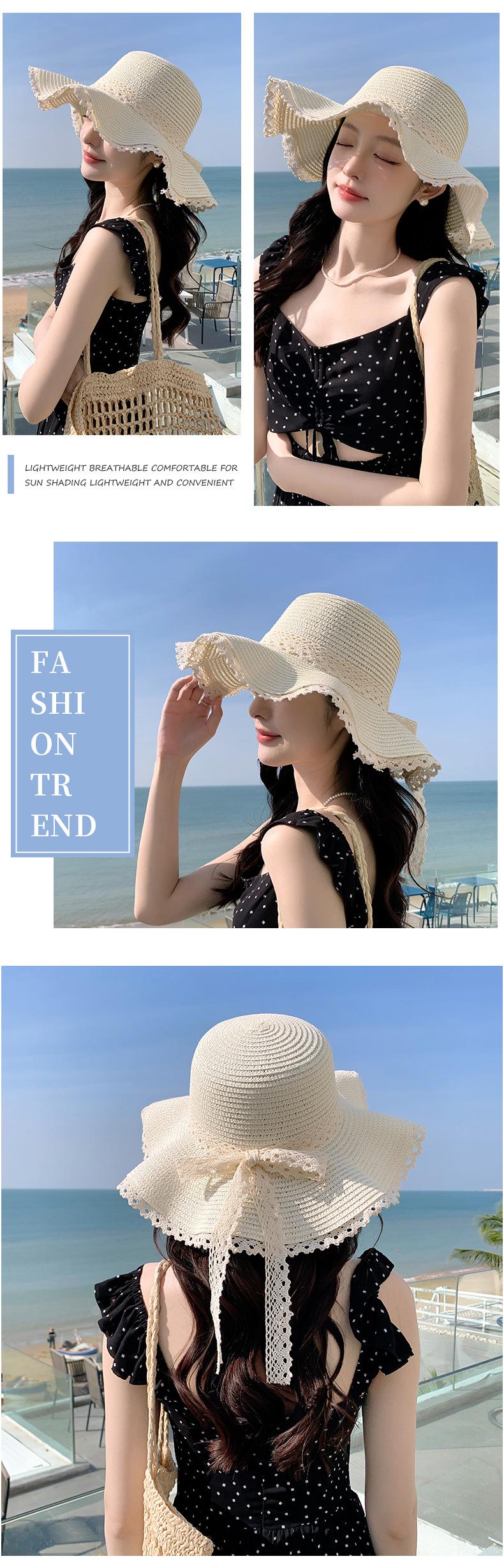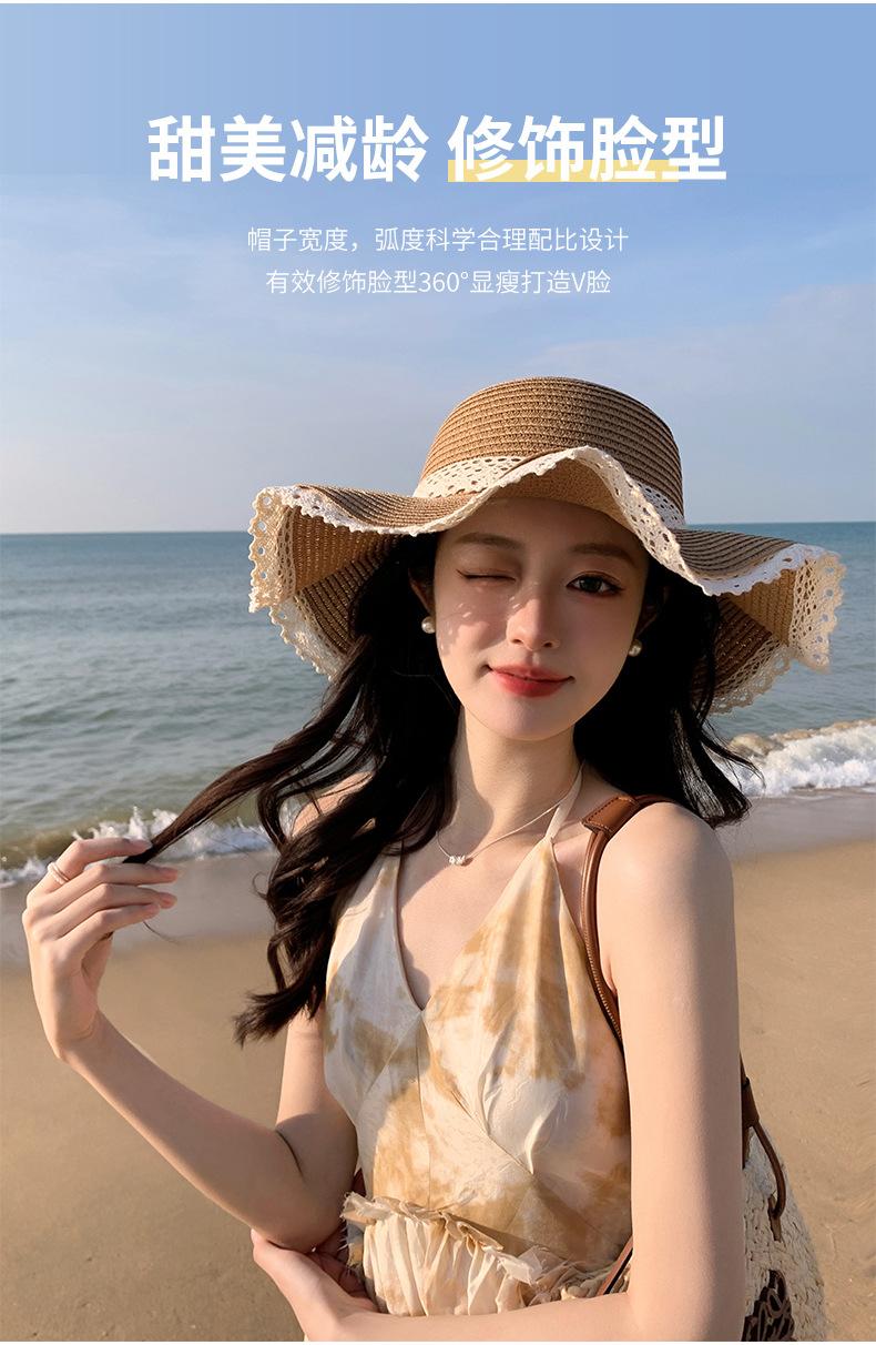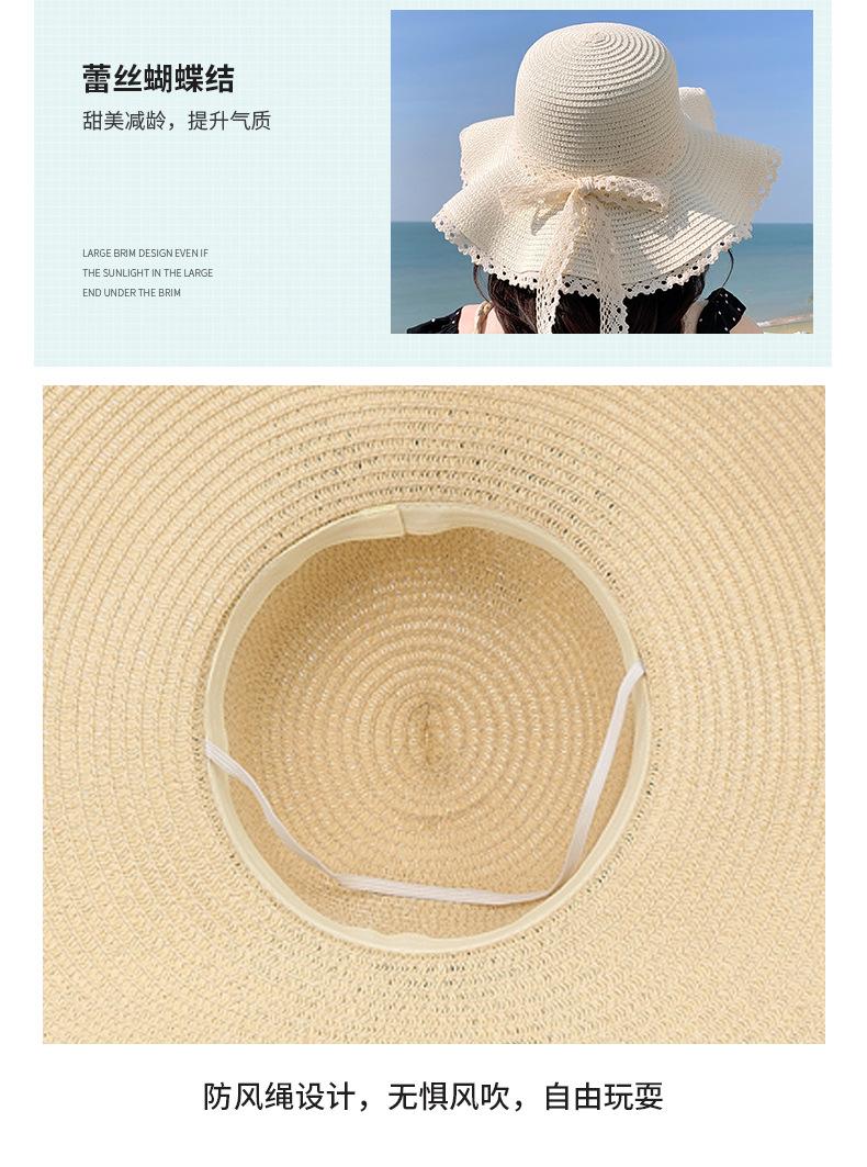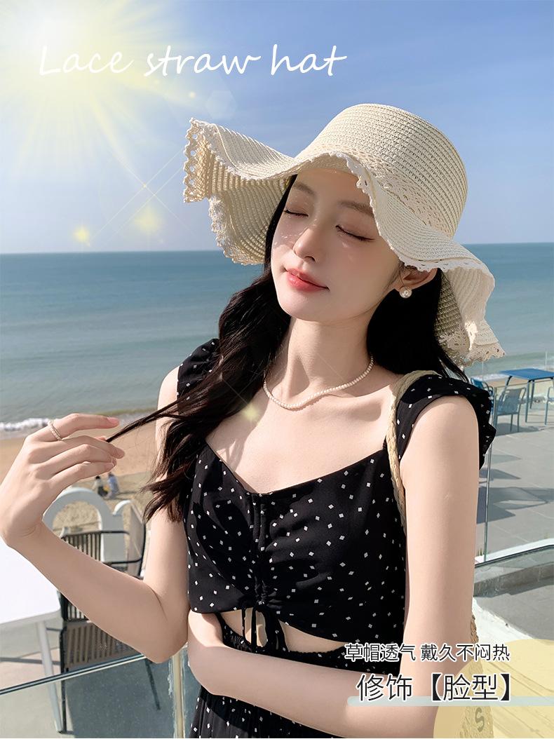 Sombrero de sol de verano para mujer, nuevo sombrero de paja de encaje coreano, sombrero de sol pequeño, sombrero de paja en stock, venta al por mayor