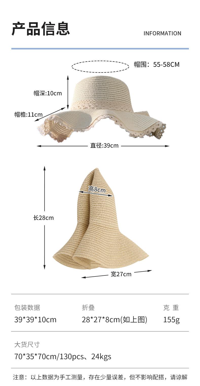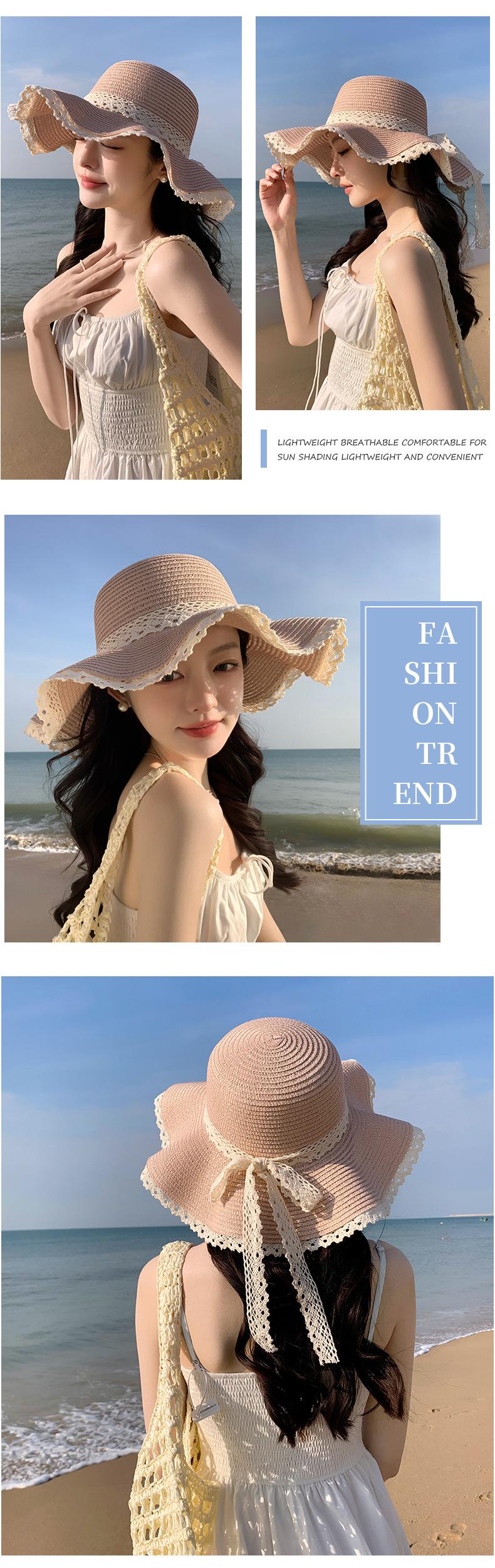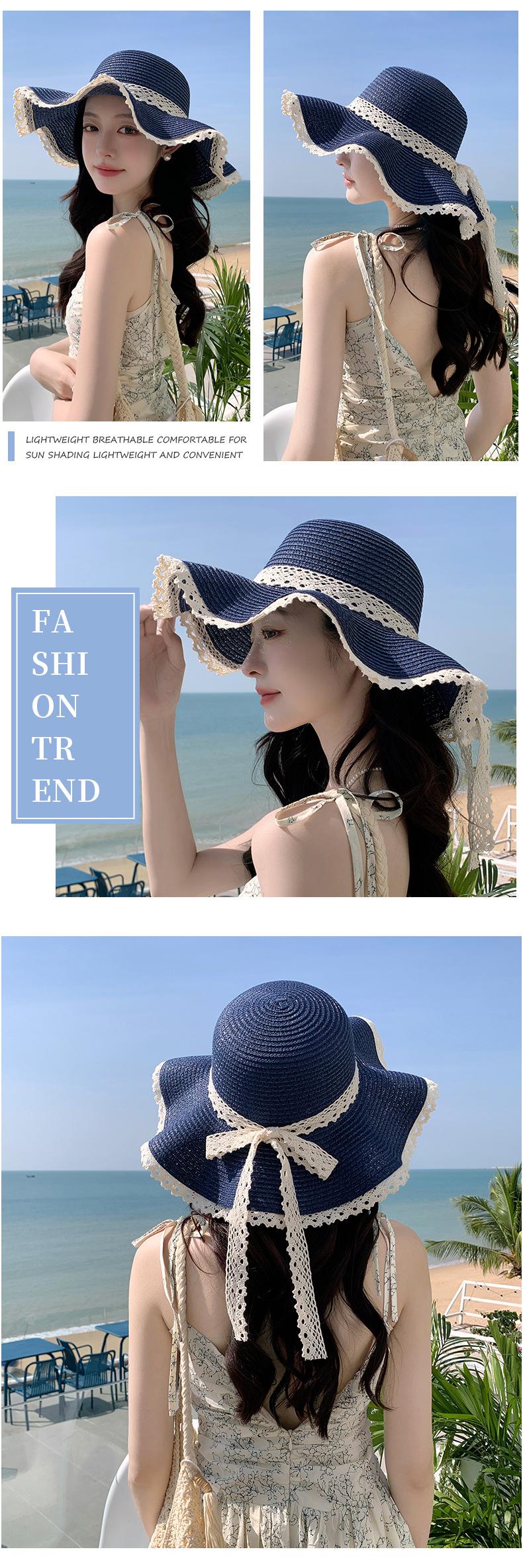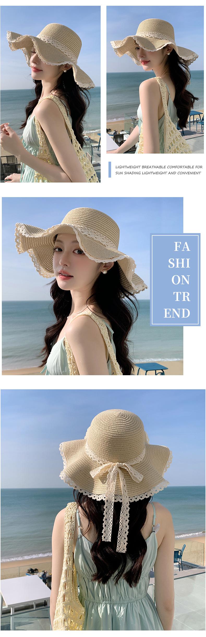 Sombrero de sol de verano para mujer, nuevo sombrero de paja de encaje coreano, sombrero de sol pequeño, sombrero de paja en stock, venta al por mayor