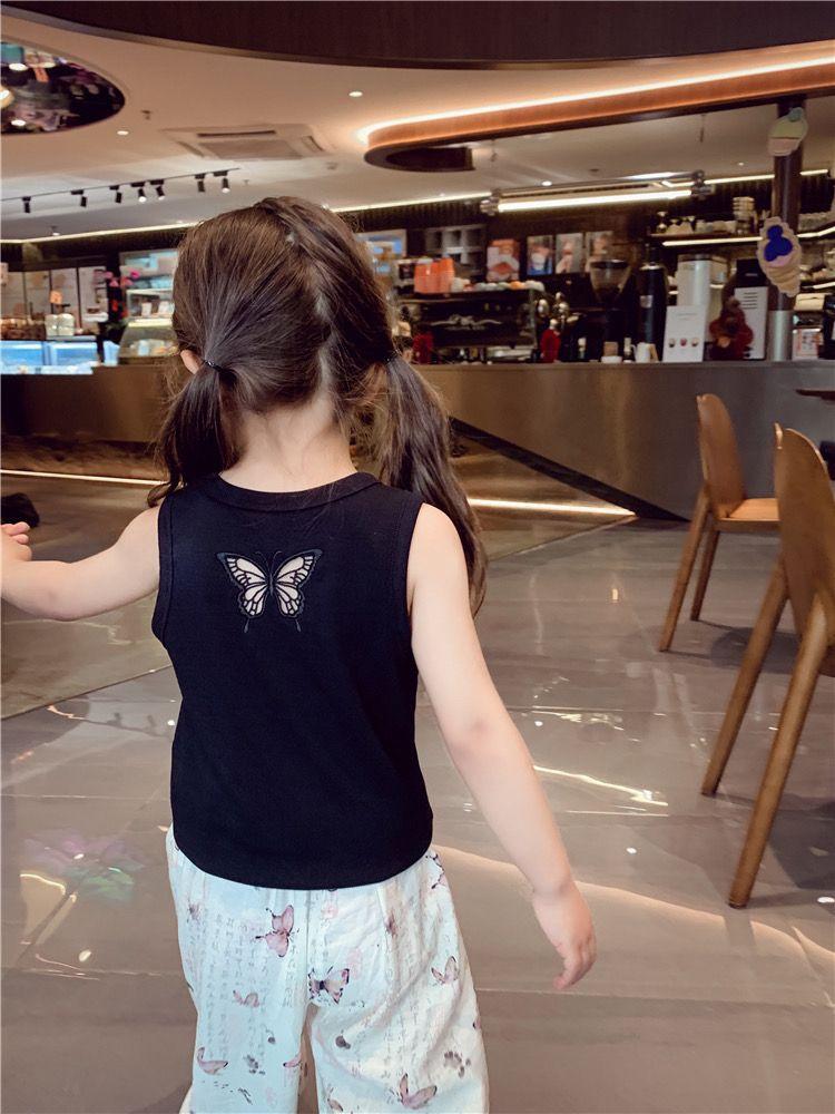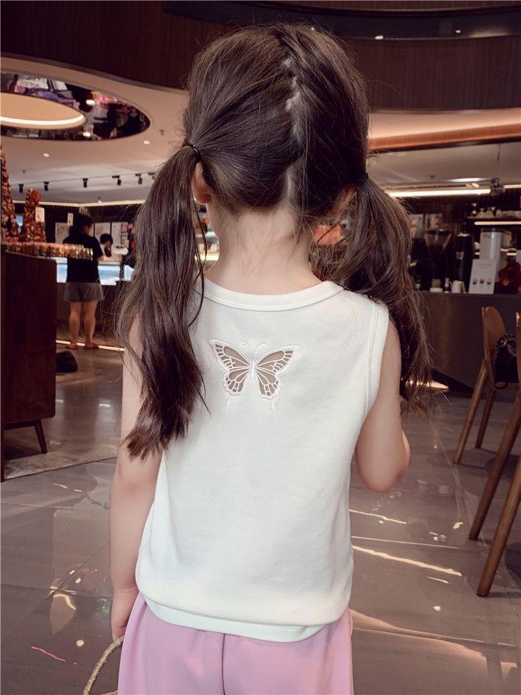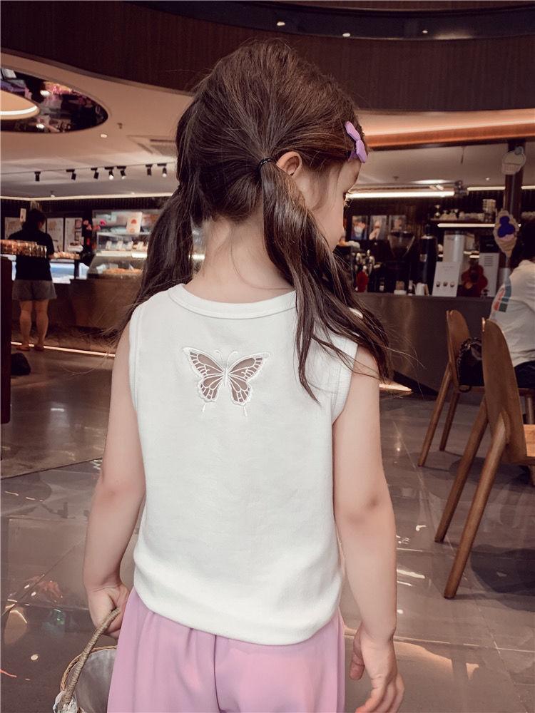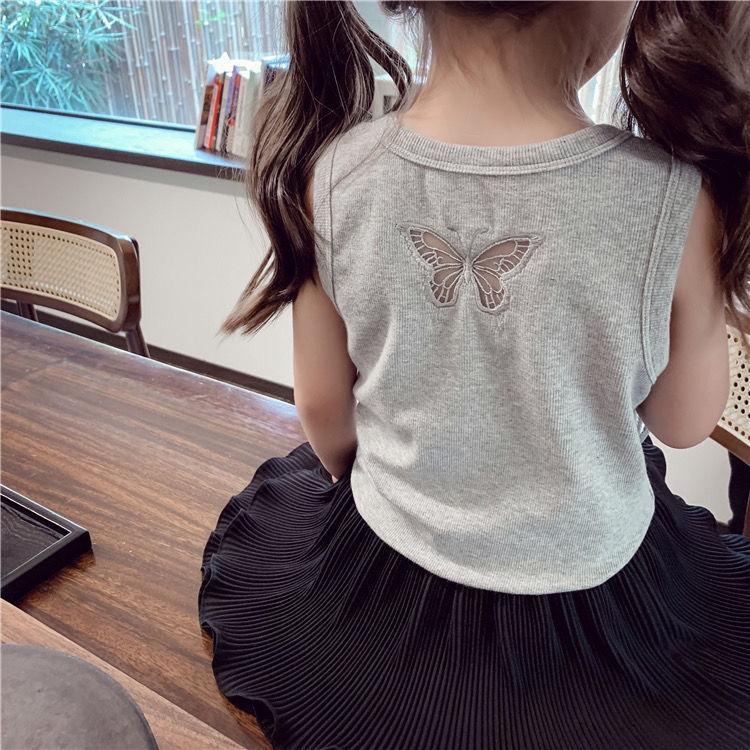 Ropa para niños al por mayor chaleco de niña verano 2025 nuevo top de mariposa para niños camiseta básica interior sin mangas para niña