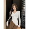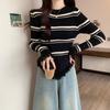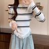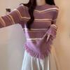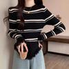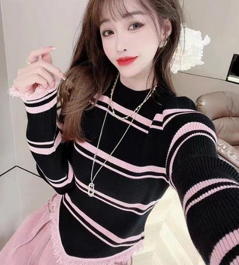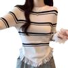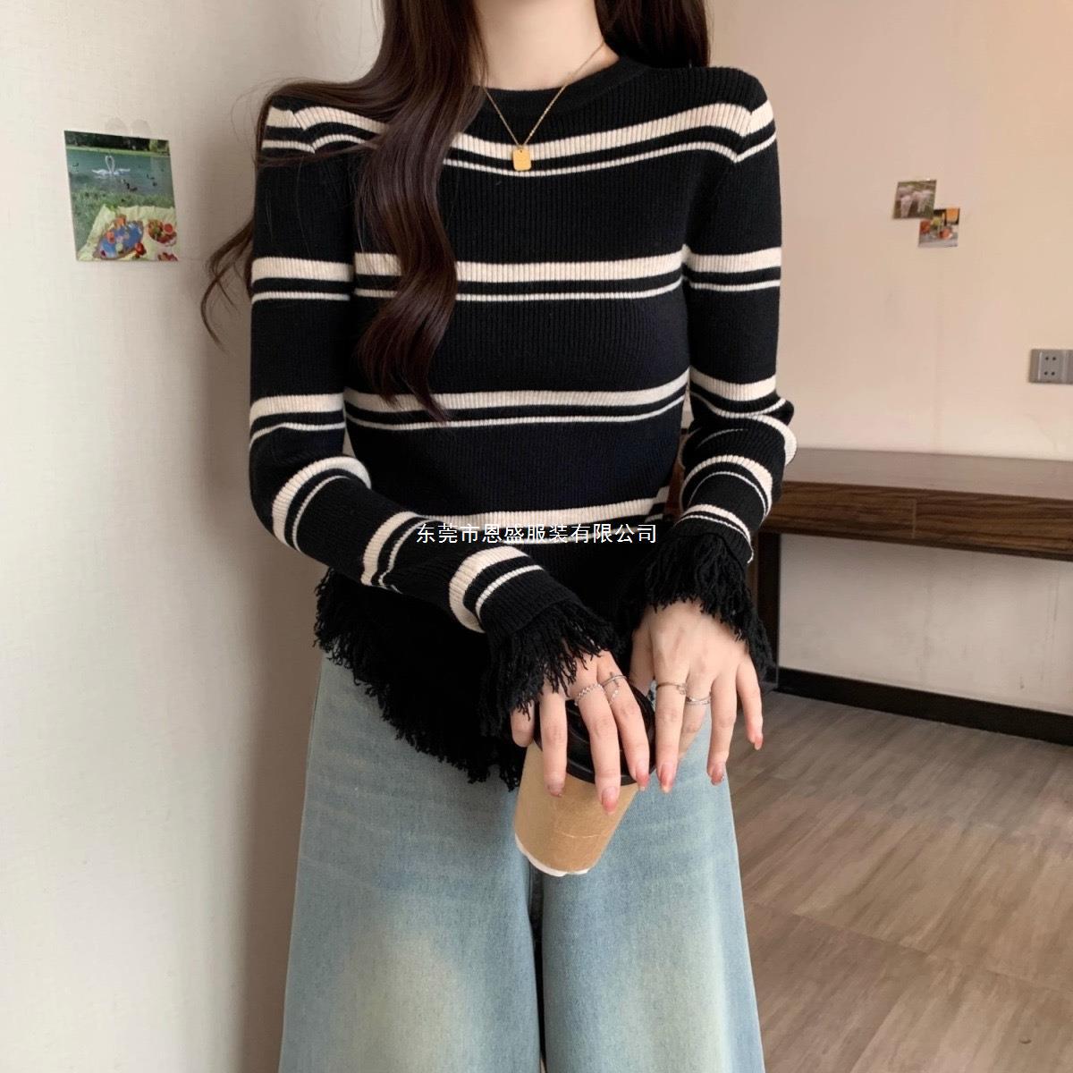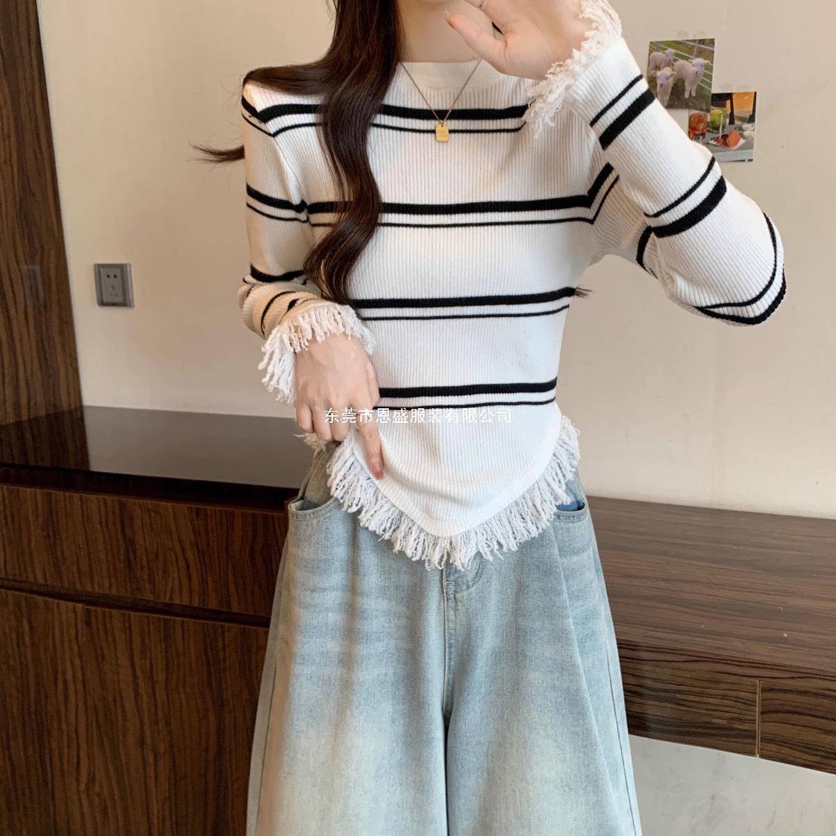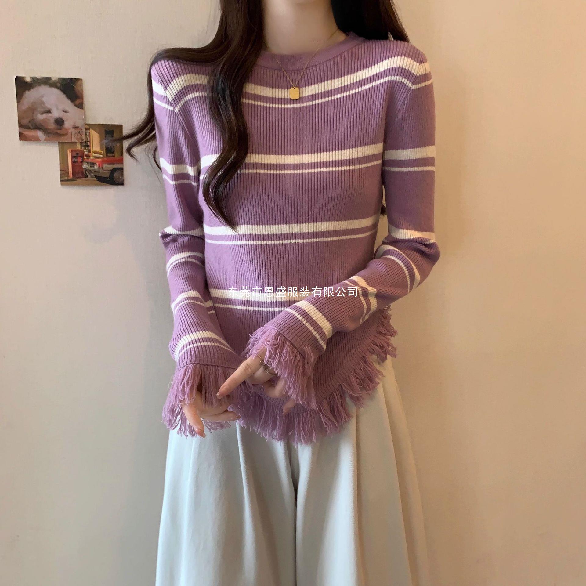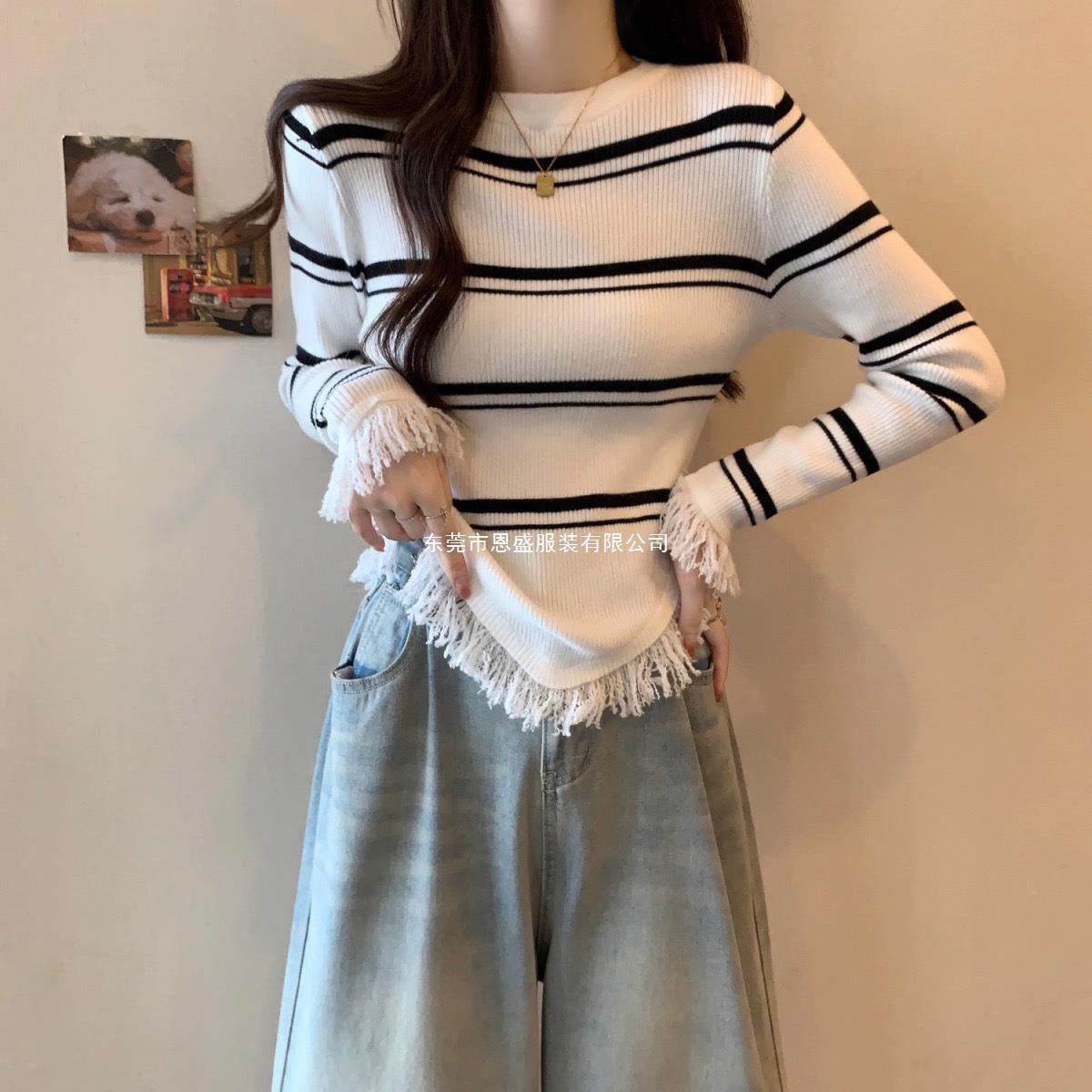 Suéter de cuello redondo con borlas irregulares y rayas, camisa de punto con diseño Sense Niche para mujer, otoño de 2024
