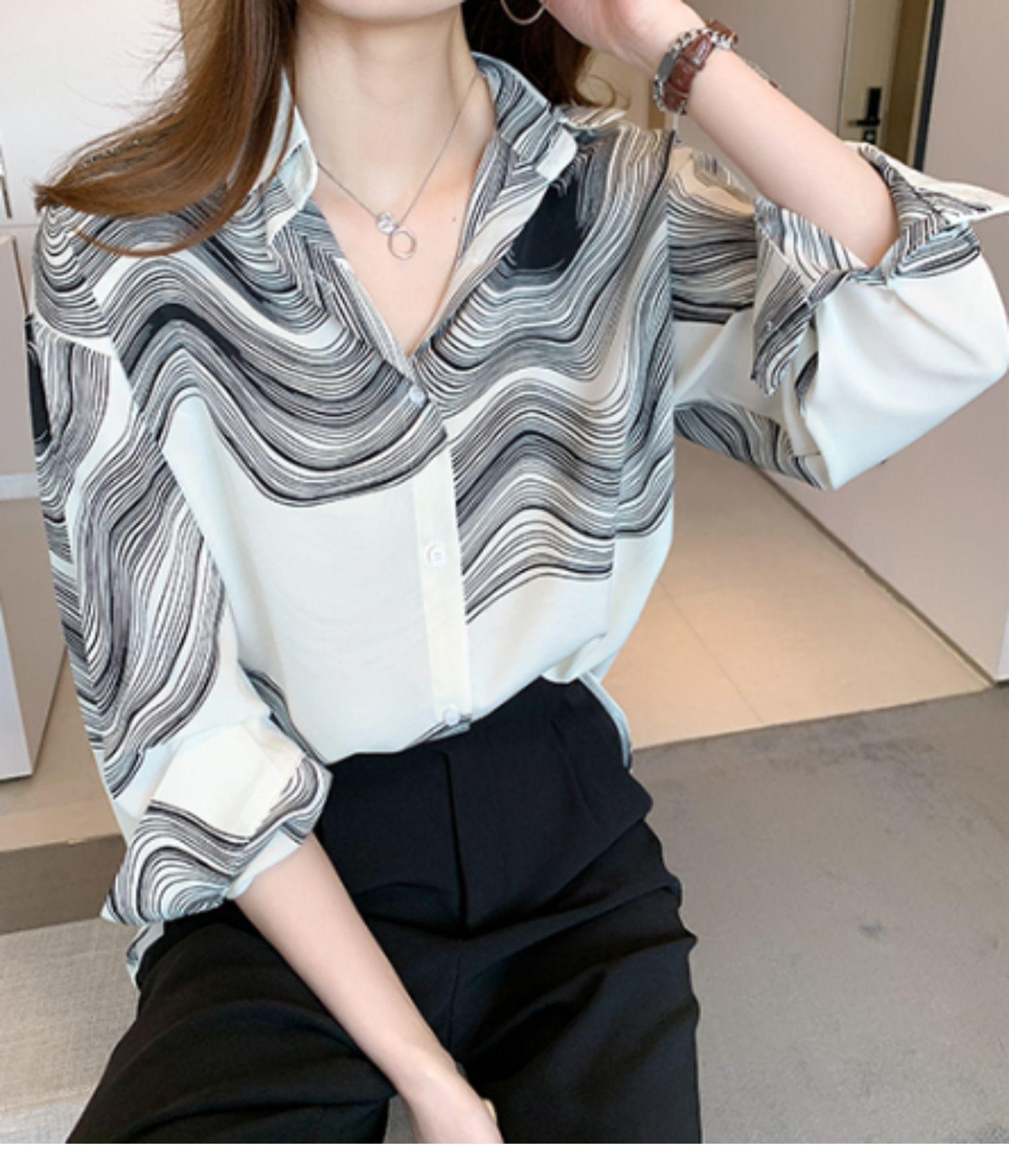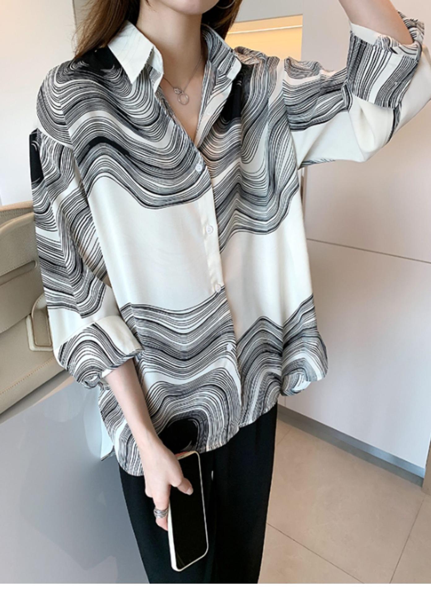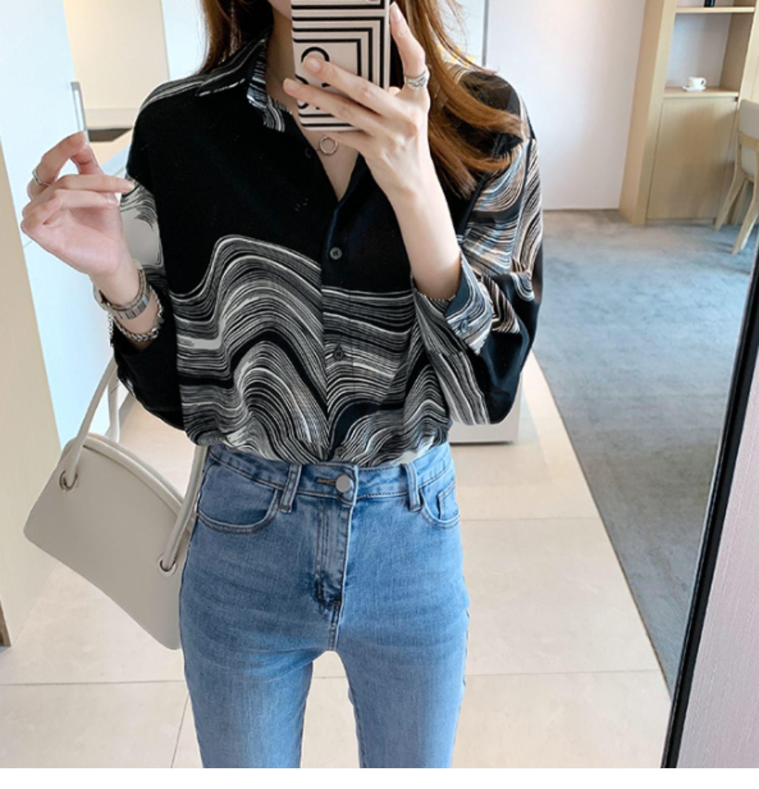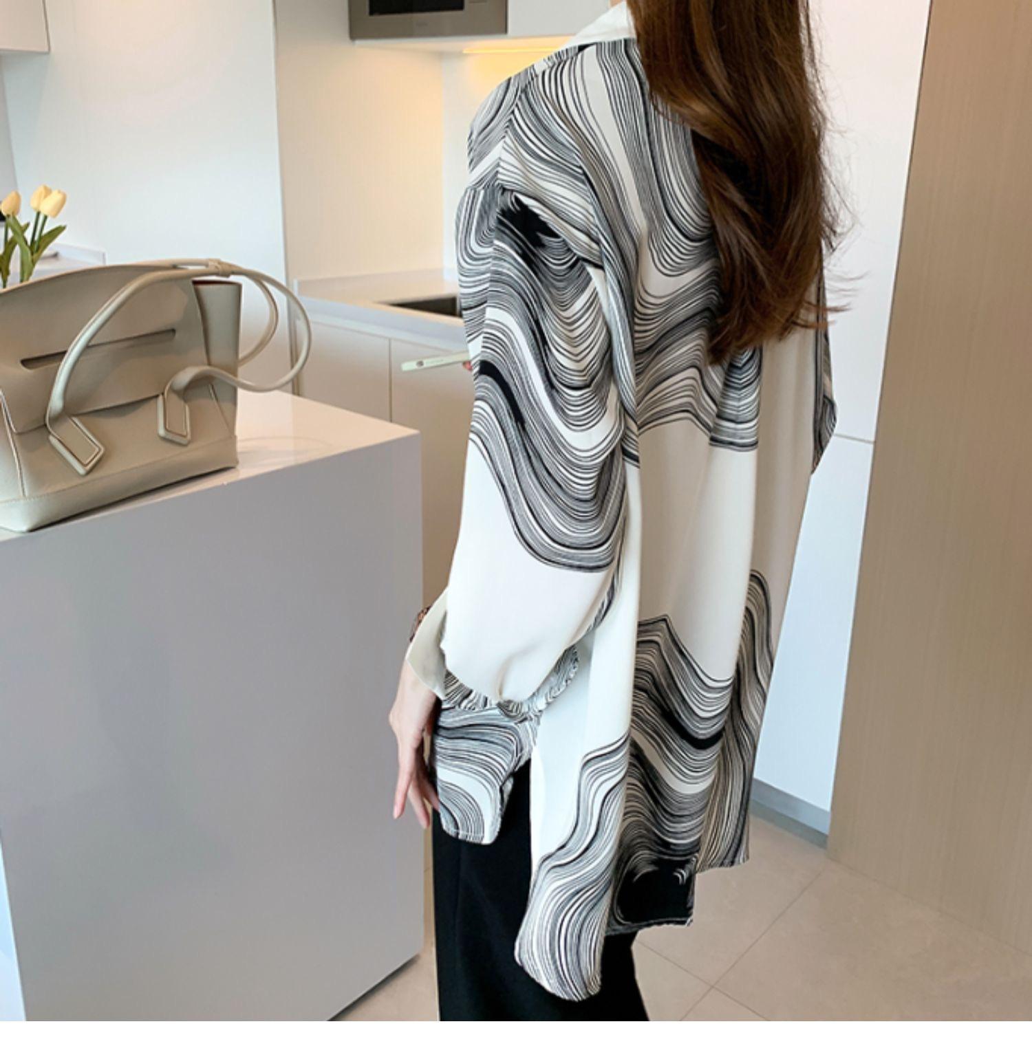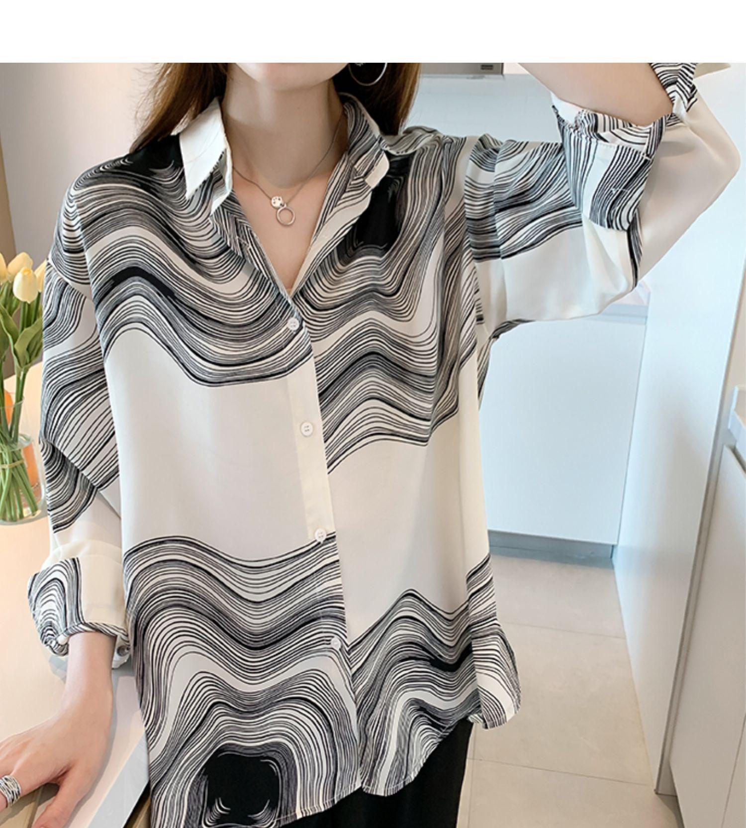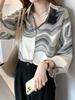 Camisa de gasa a rayas para mujer, ropa de primavera de manga larga, talla grande, para chica gordita, diseño holgado, estilo nicho, camisa OL de temperamento profesional a la moda.