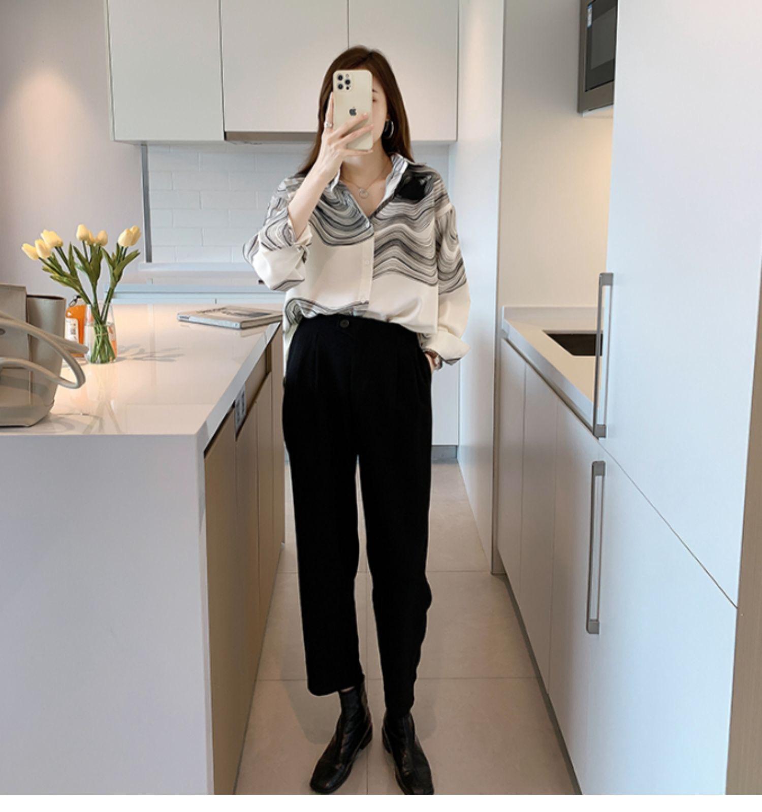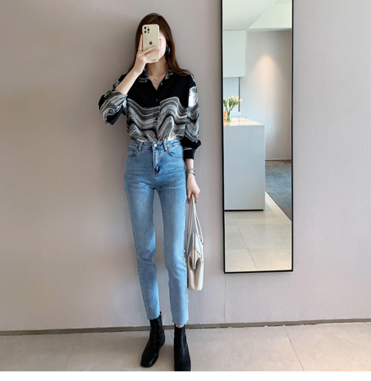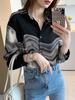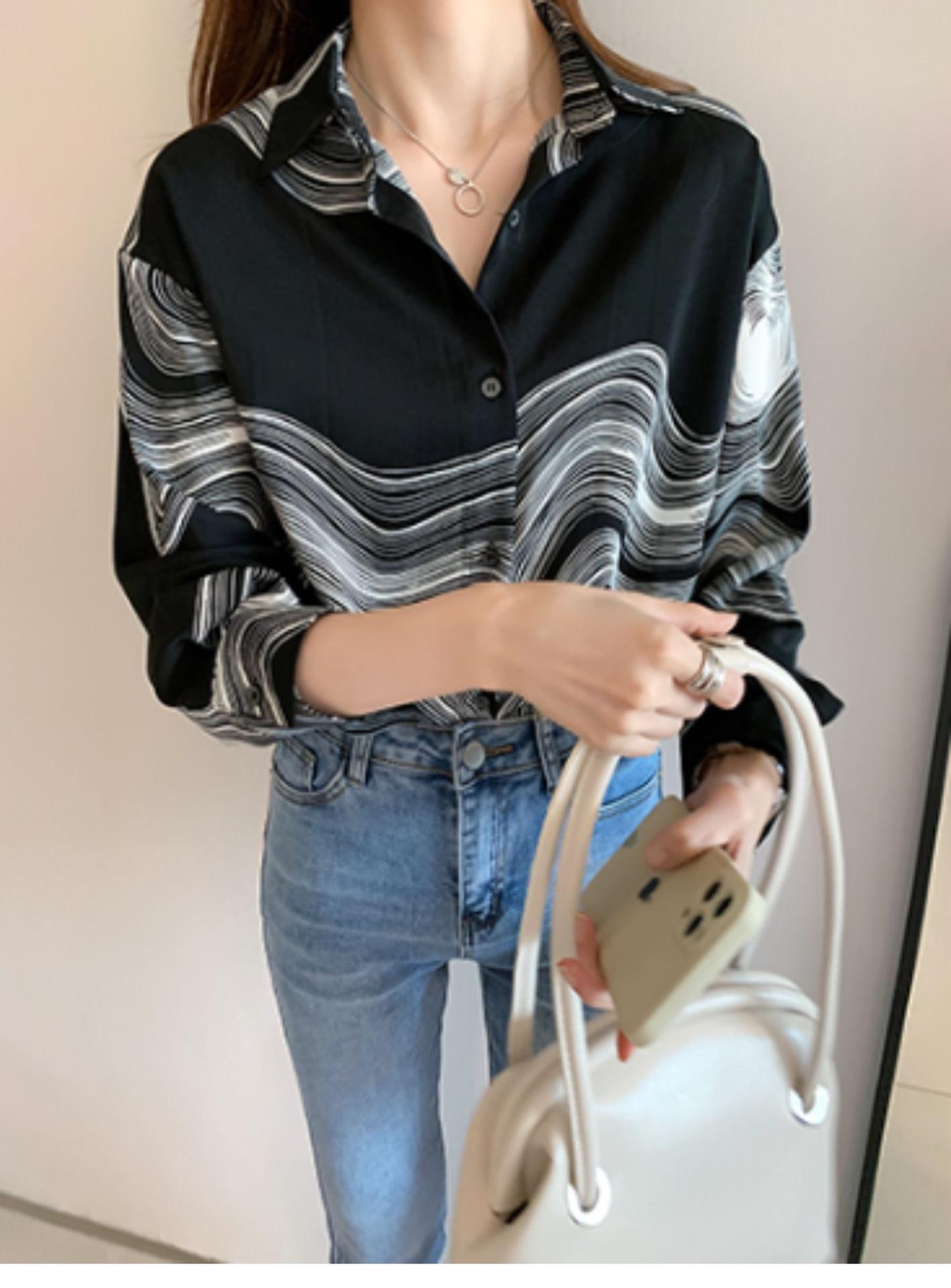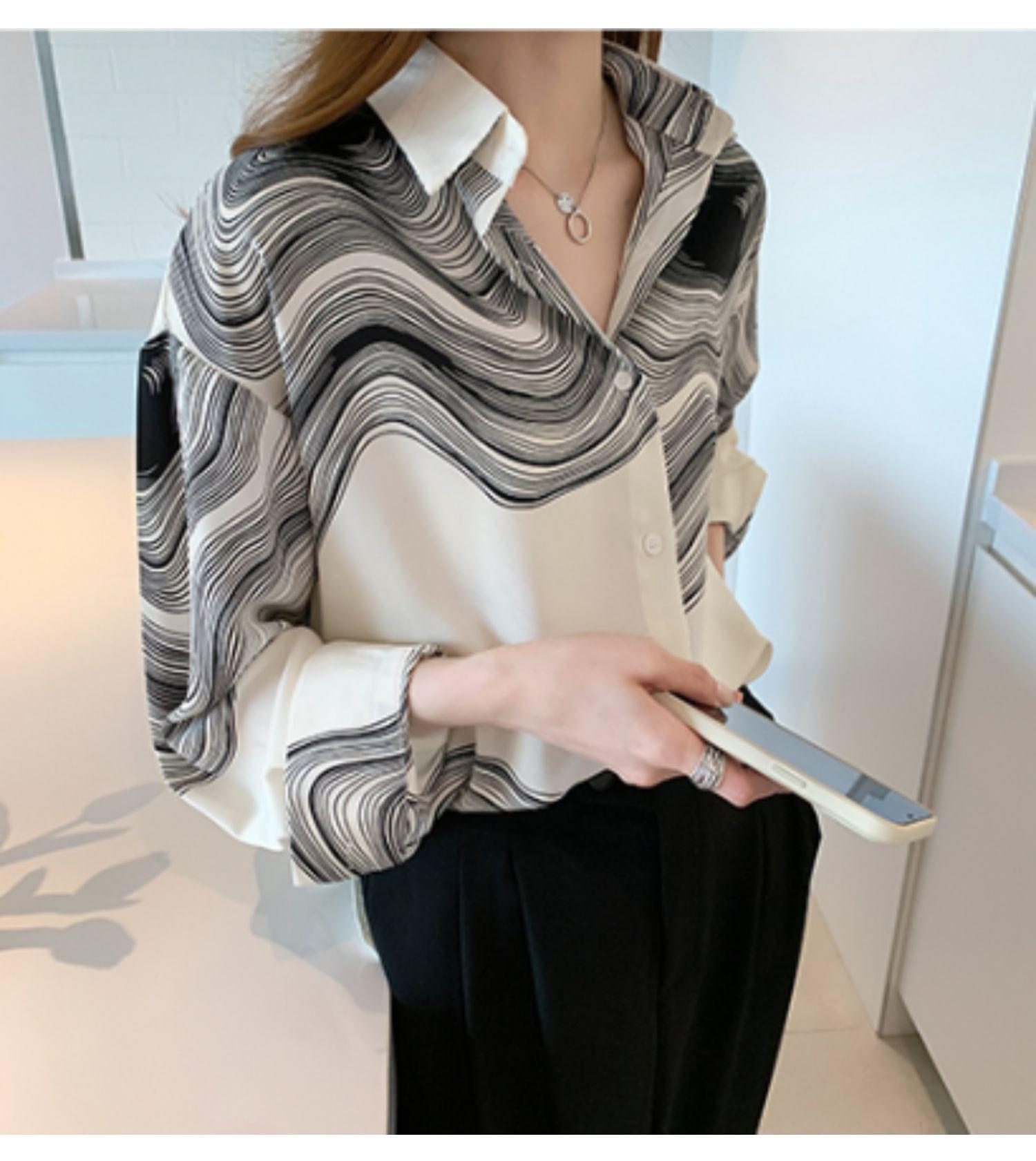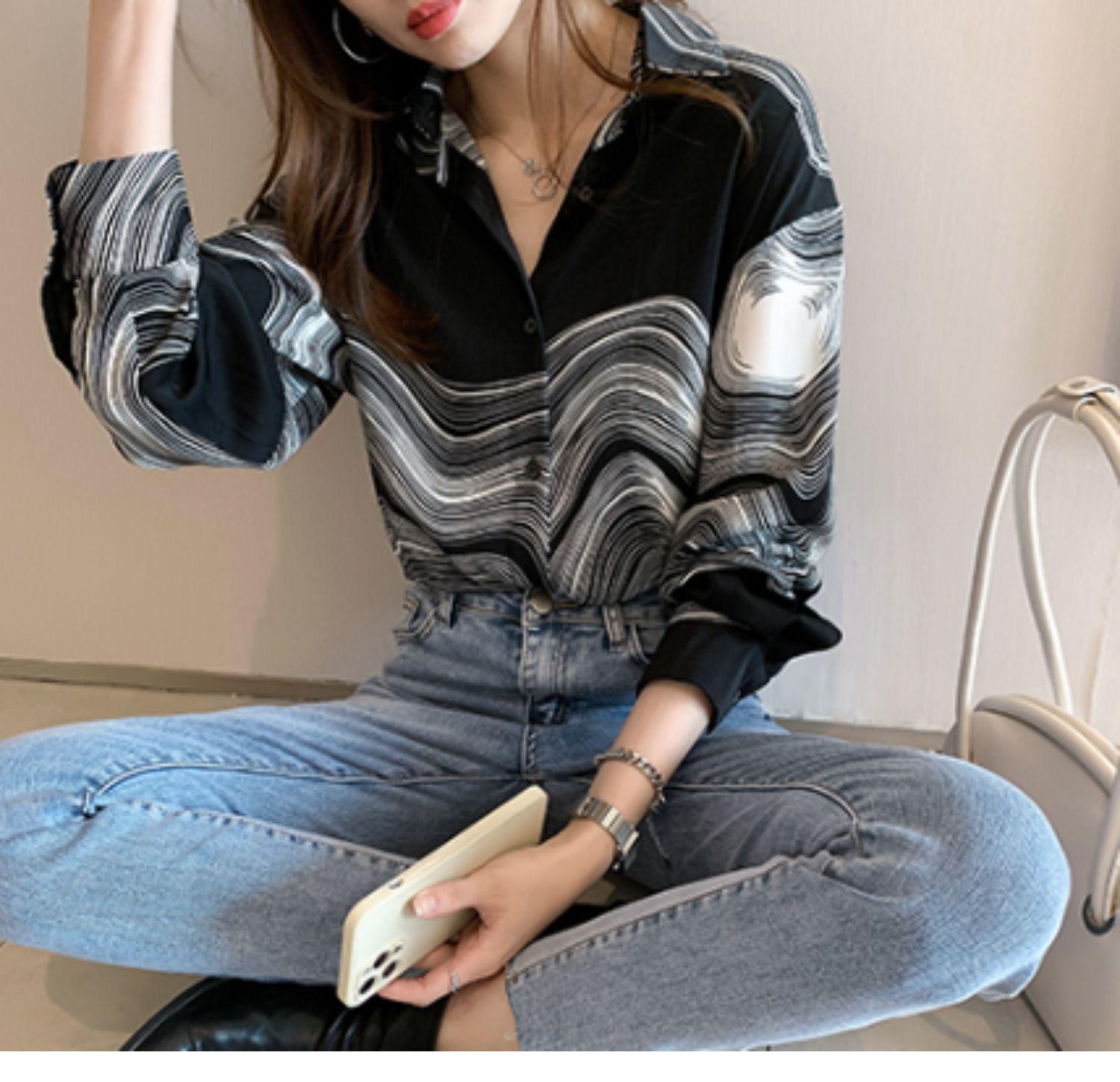 Camisa de gasa a rayas para mujer, ropa de primavera de manga larga, talla grande, para chica gordita, diseño holgado, estilo nicho, camisa OL de temperamento profesional a la moda.