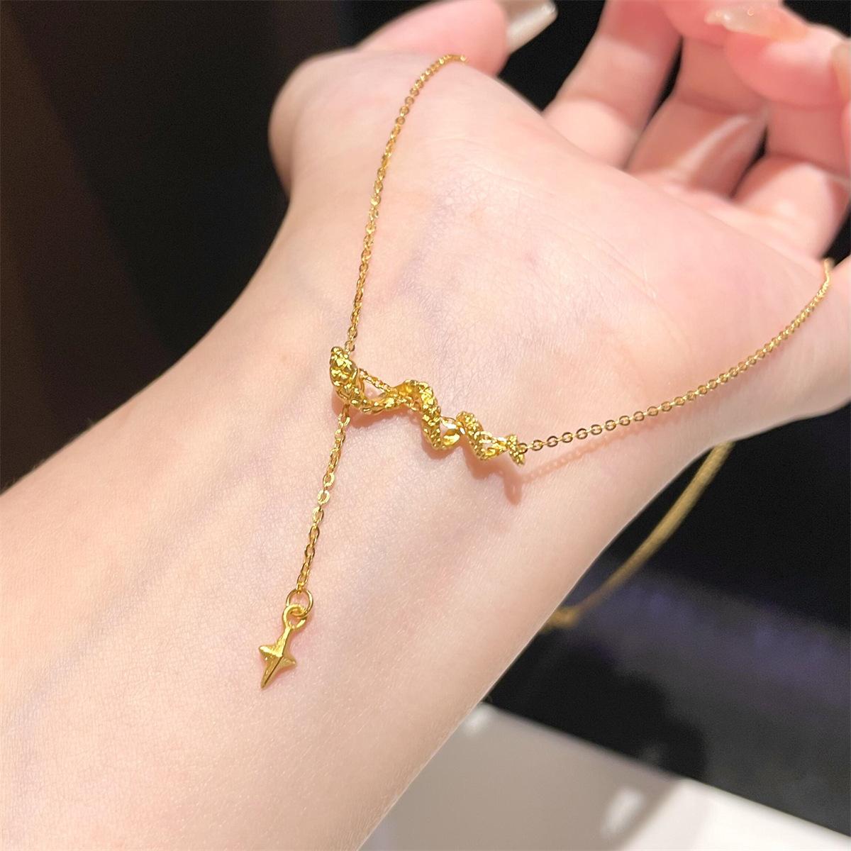 Nuevo collar de serpiente de oro de estilo chino, estilo femenino, ligero, de lujo, a la moda, con cadena de clavícula chapada en oro de 18 quilates.