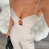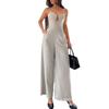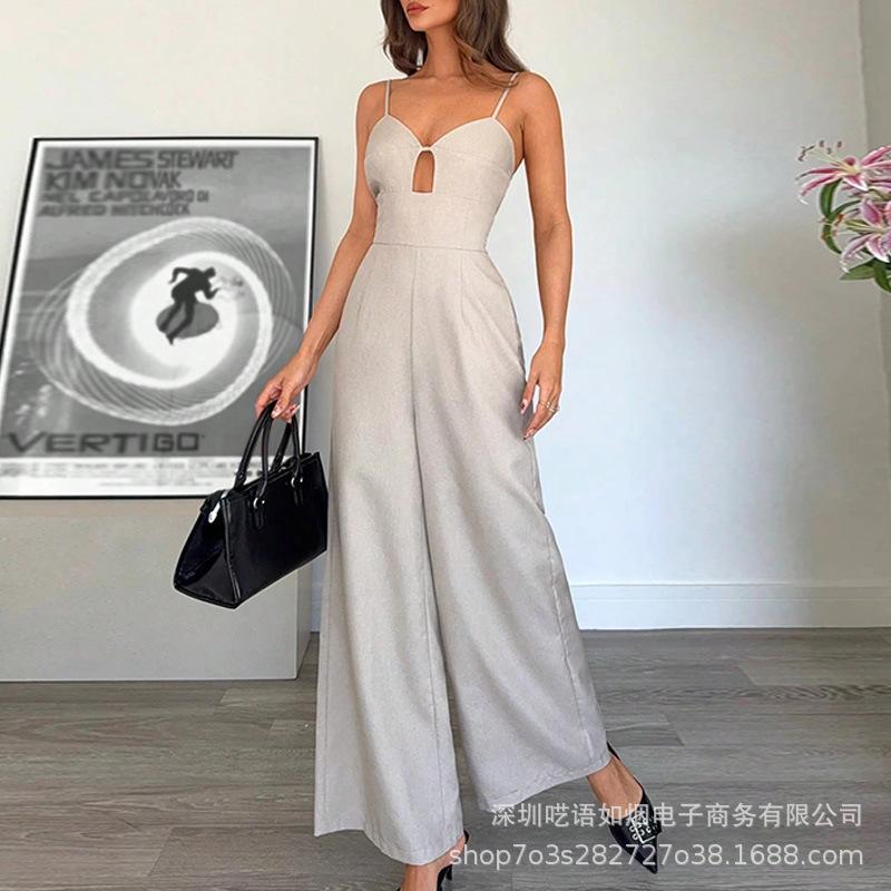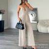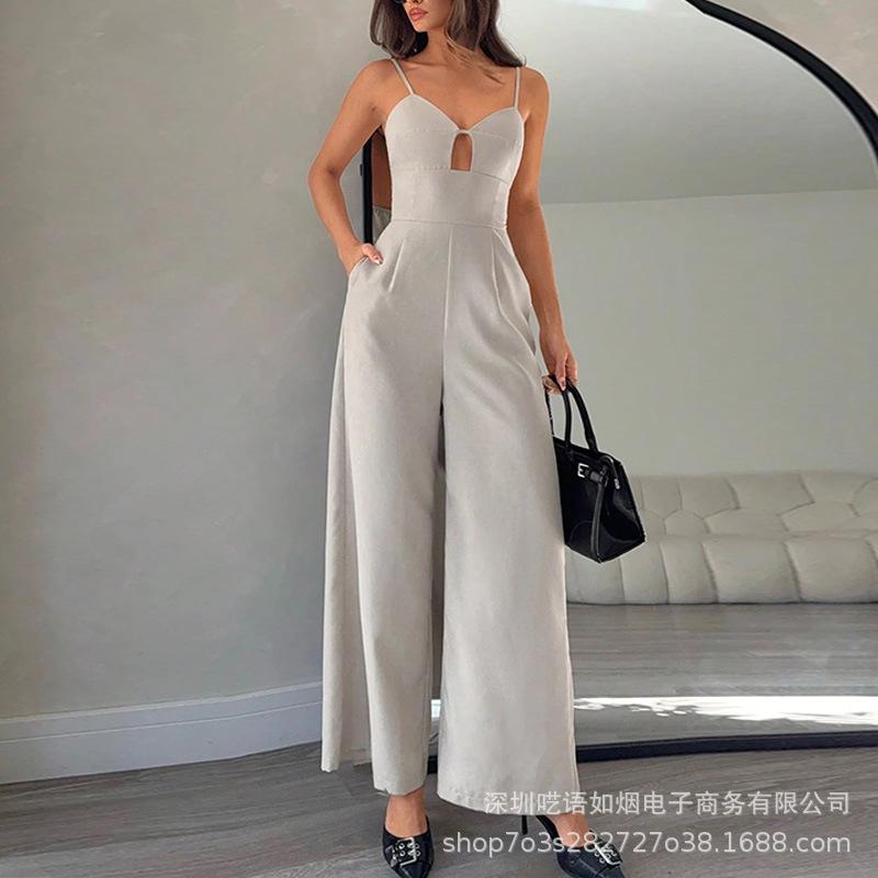 2025 Nuevo Mono de Verano Europeo y Americano de Moda Transfronteriza de Color Sólido Simple de Pierna Ancha y Cintura Alta con Tirantes para Mujer