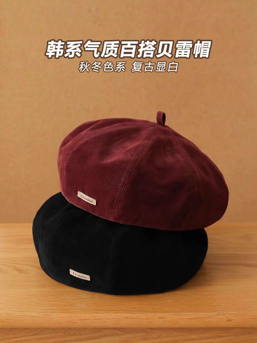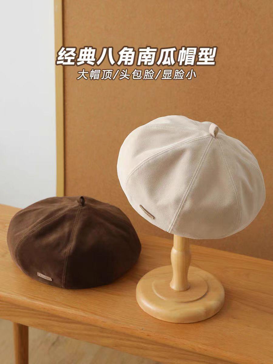 Boina vintage de otoño e invierno, estilo coreano, artística, combinable con todo, de pintor, grande, con cara superior, pequeña, de calabaza, para mujer.