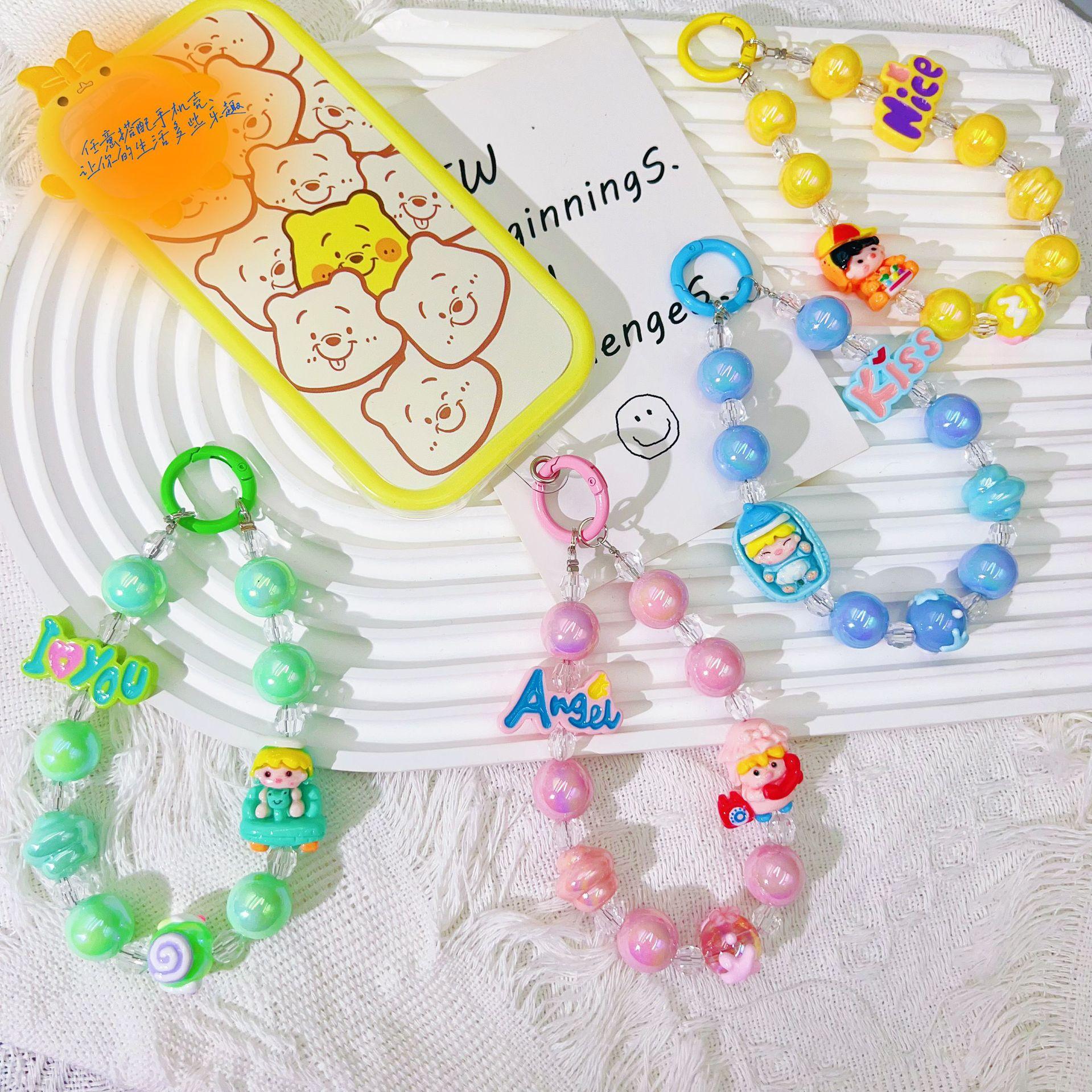 Cadena para teléfono móvil con cuentas de dibujos animados y letras creativas, llavero con cuentas pintadas a mano, colgante con voz en vivo, accesorios para bolso.