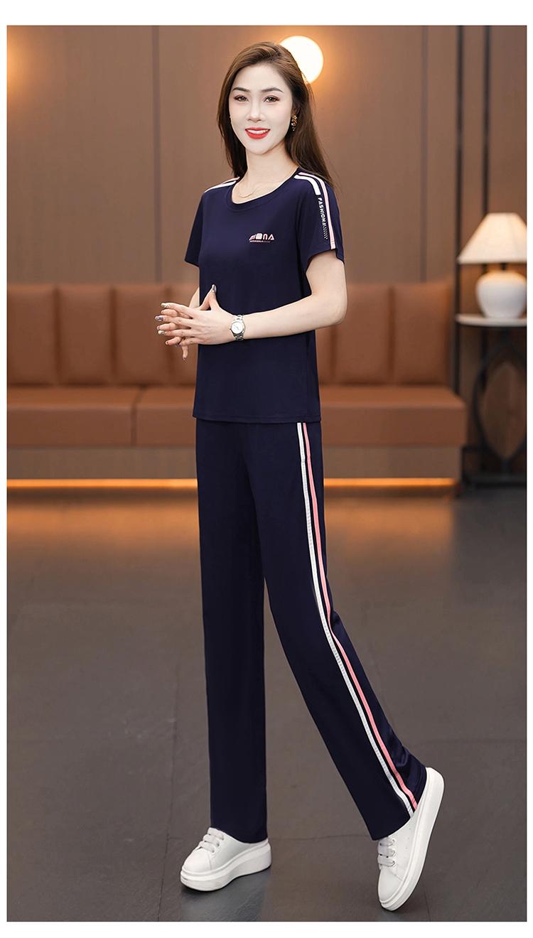 Traje deportivo de marca para mujer, verano 2025, nueva moda coreana, talla grande, cuello redondo, traje para correr de dos piezas fino