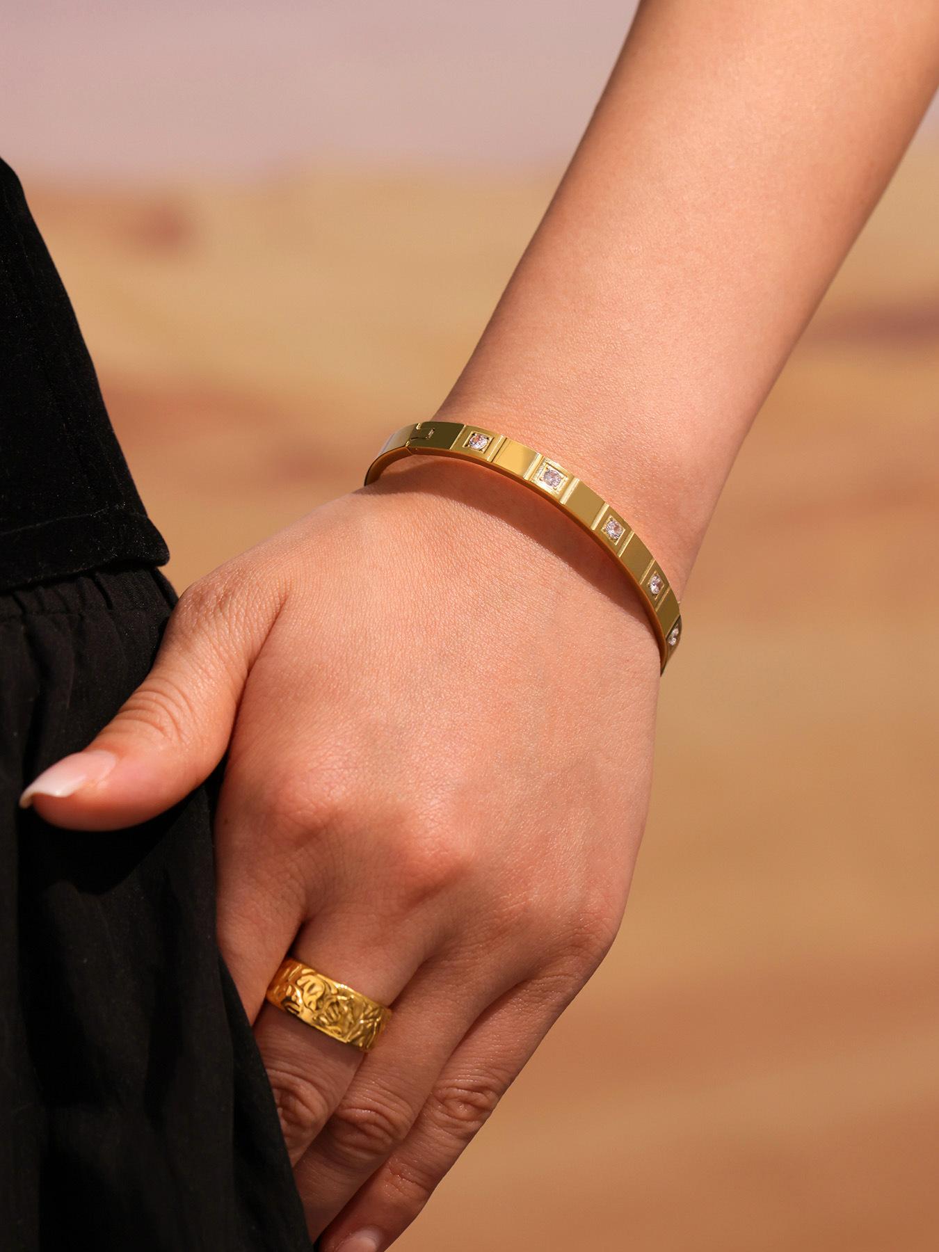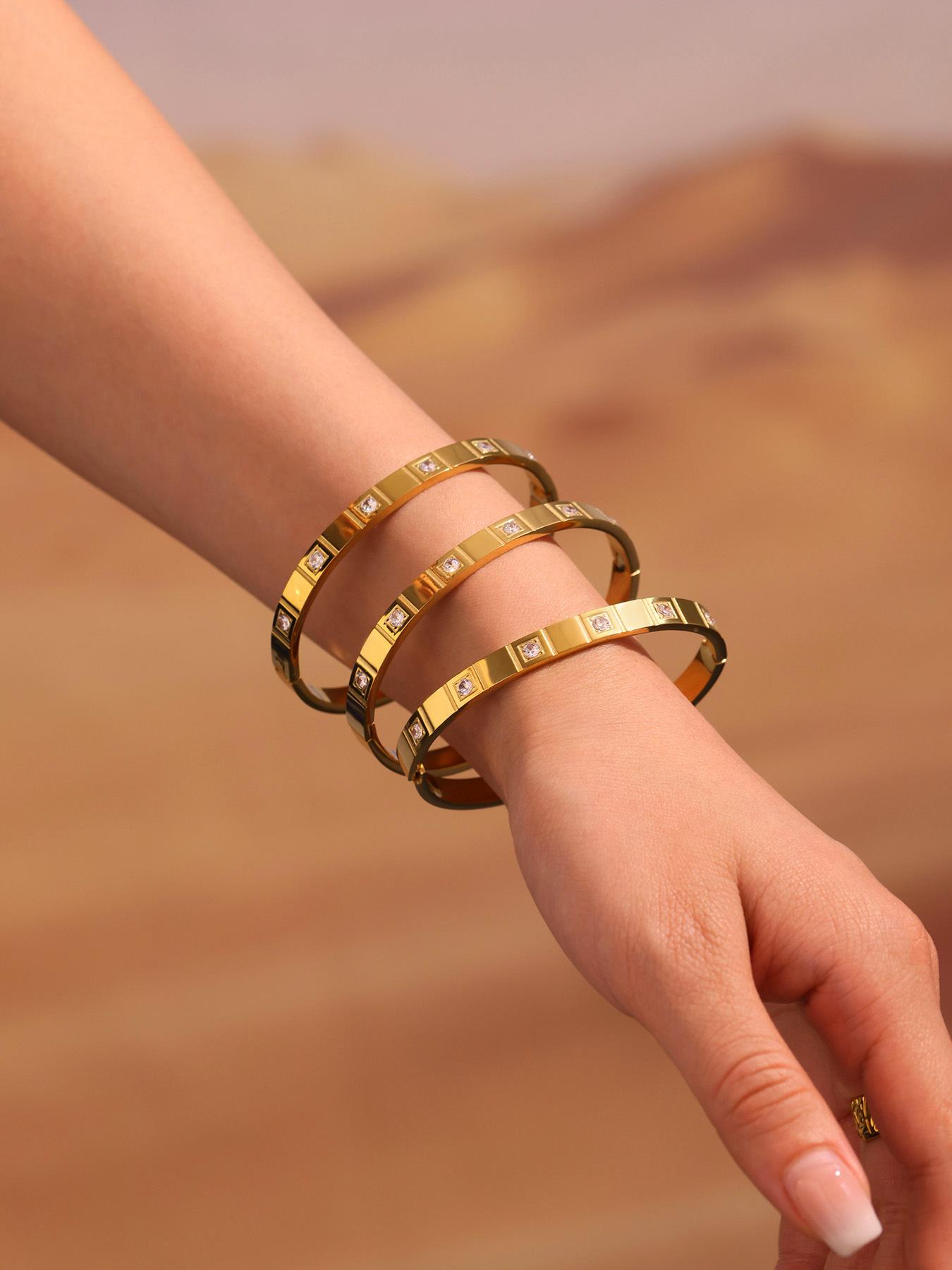 Pulsera de Broche de Acero Inoxidable Xinyixin 5A con Incrustaciones de Zircón Diamante Completo Diseño Nicho Ins Pulsera de Alta Calidad Chapada en Oro de 18k