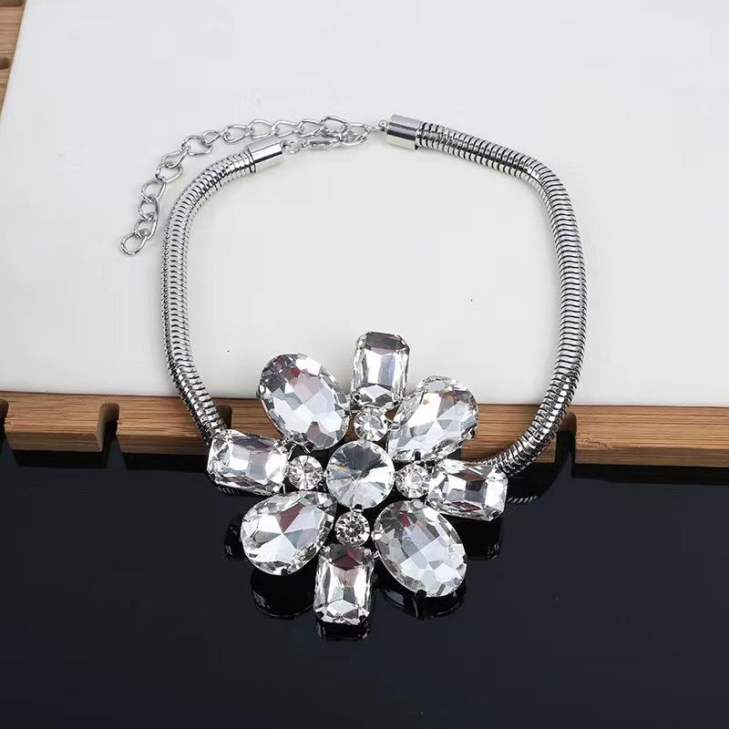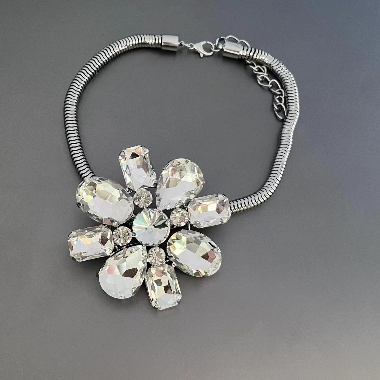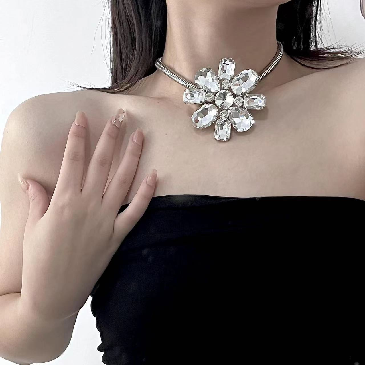 Collar de flores de cristal súper grandes y exageradas con personalidad europea y americana para mujer, gargantilla de lujo ligera de alta gama.