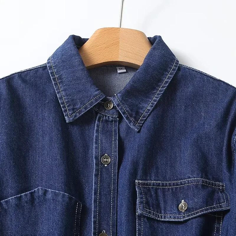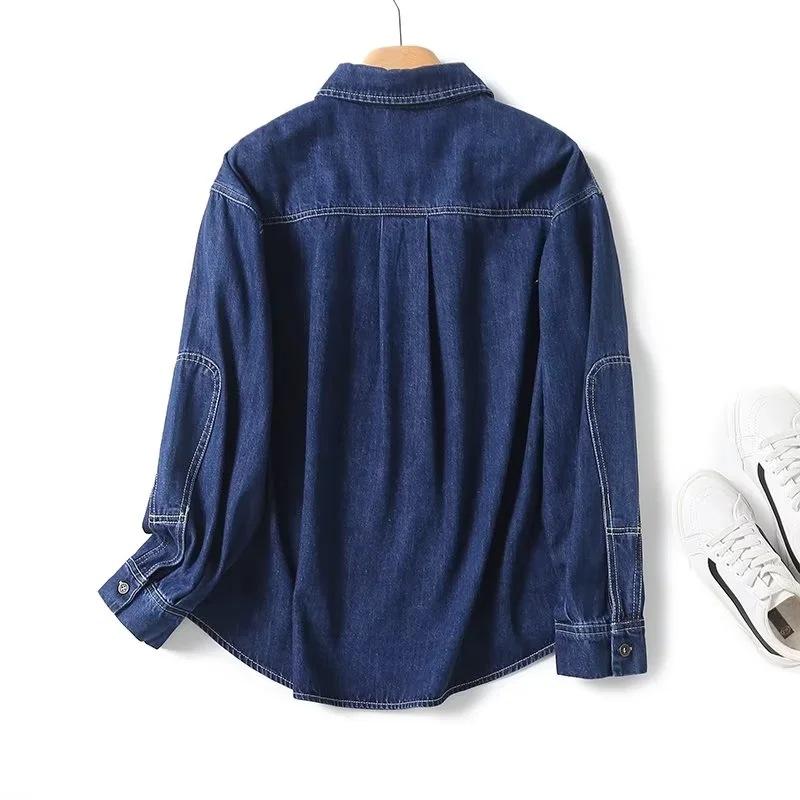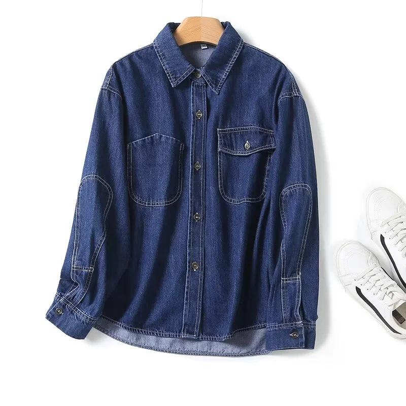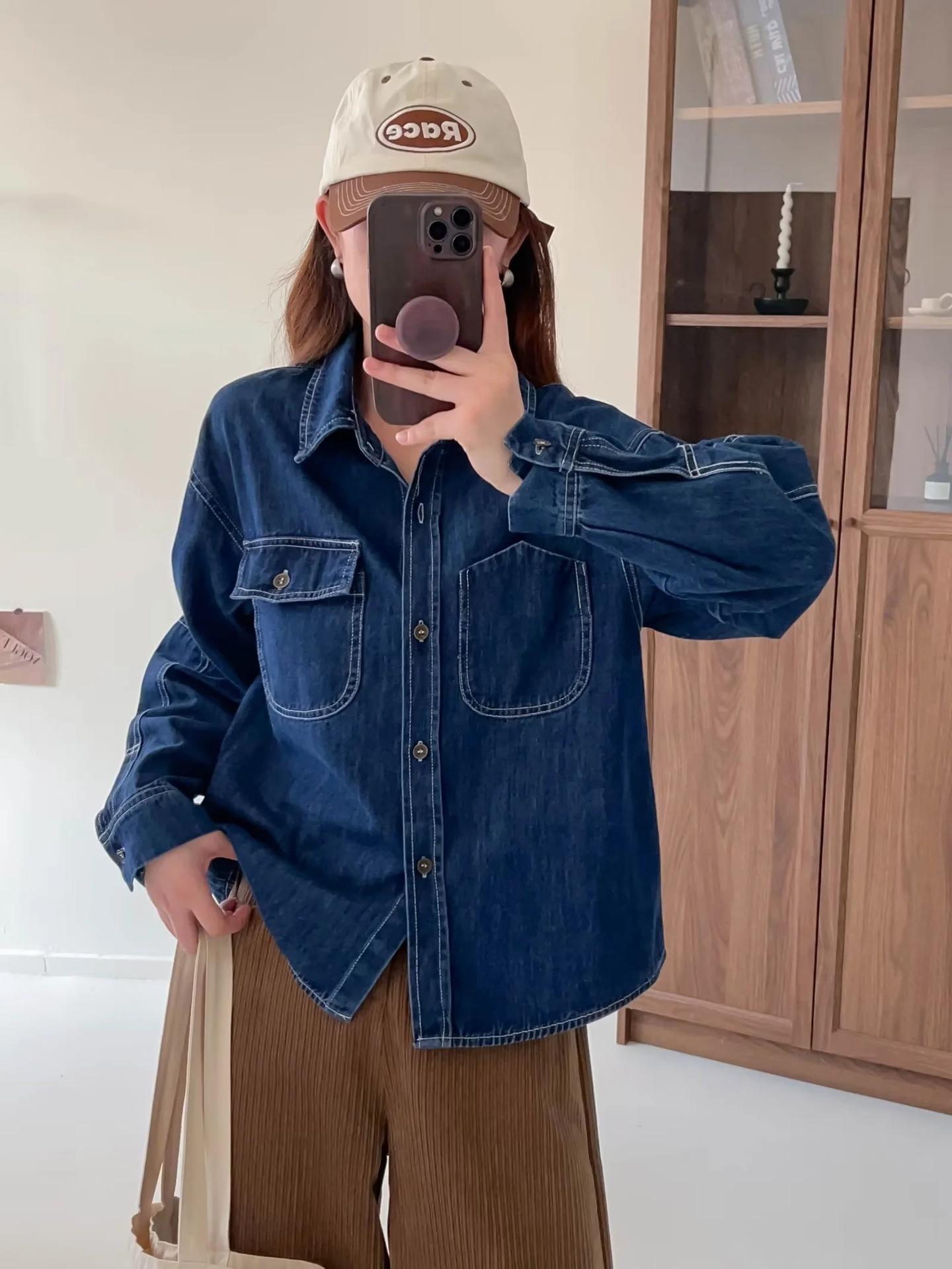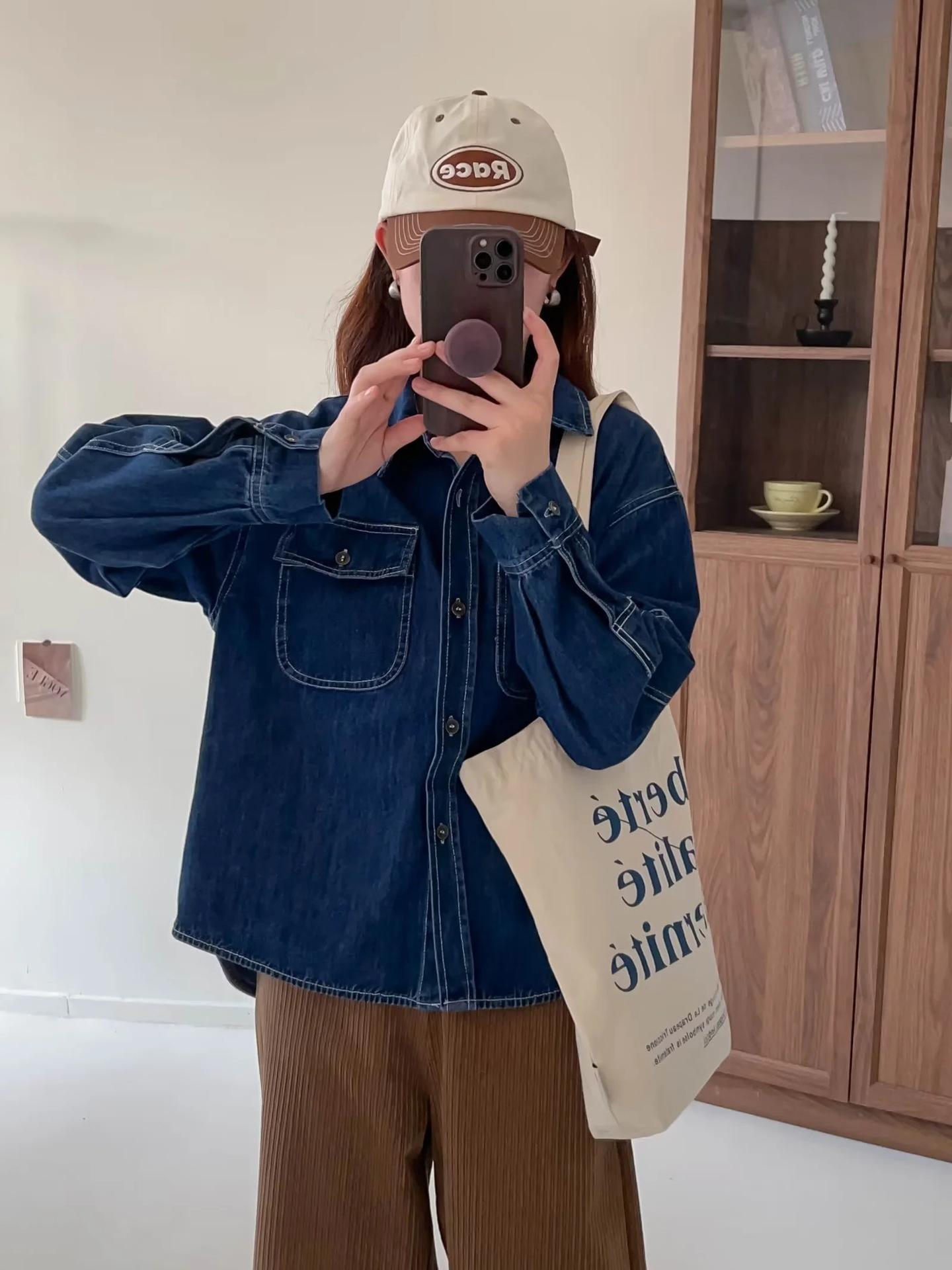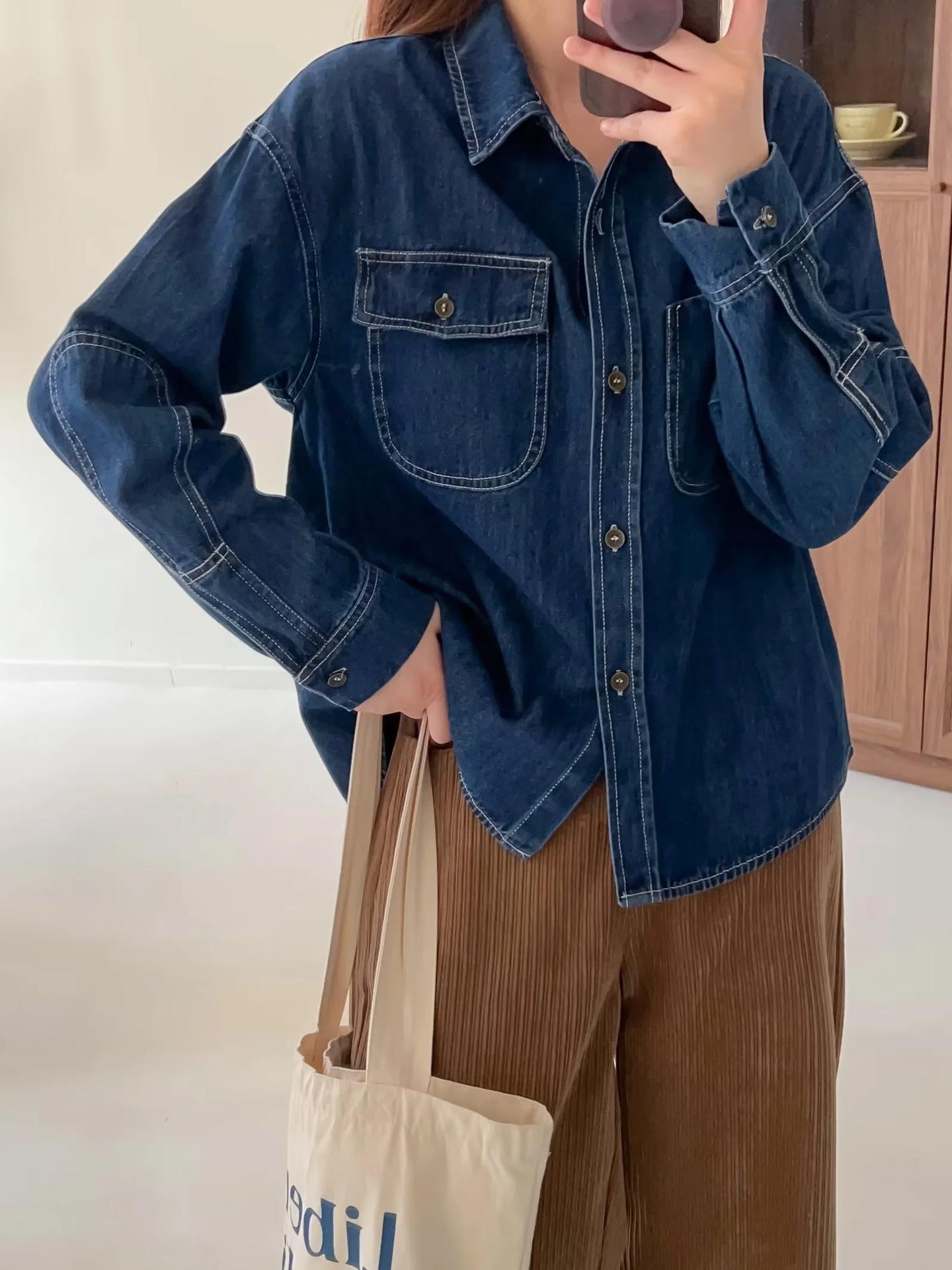 0724 Ropa de mujer de estilo coreano al por mayor 2023 Invierno Nueva solapa de un solo pecho Denim camisa suelta abrigo