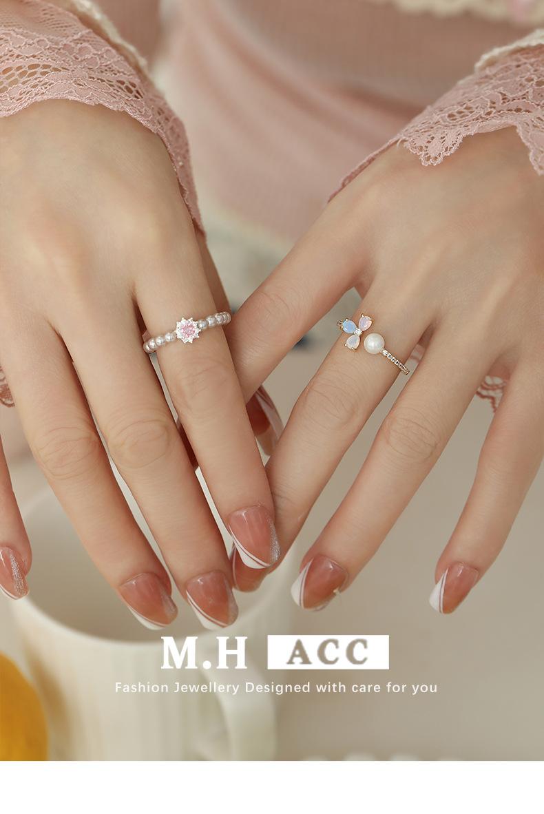 Anillo de Perla con Diamante Solitario de Cuatro Garras Suave Estilo Francés para Mujer Diseño Nicho Anillo de Dedo de Alta Gama Anillo de Moda de Lujo Ligero
