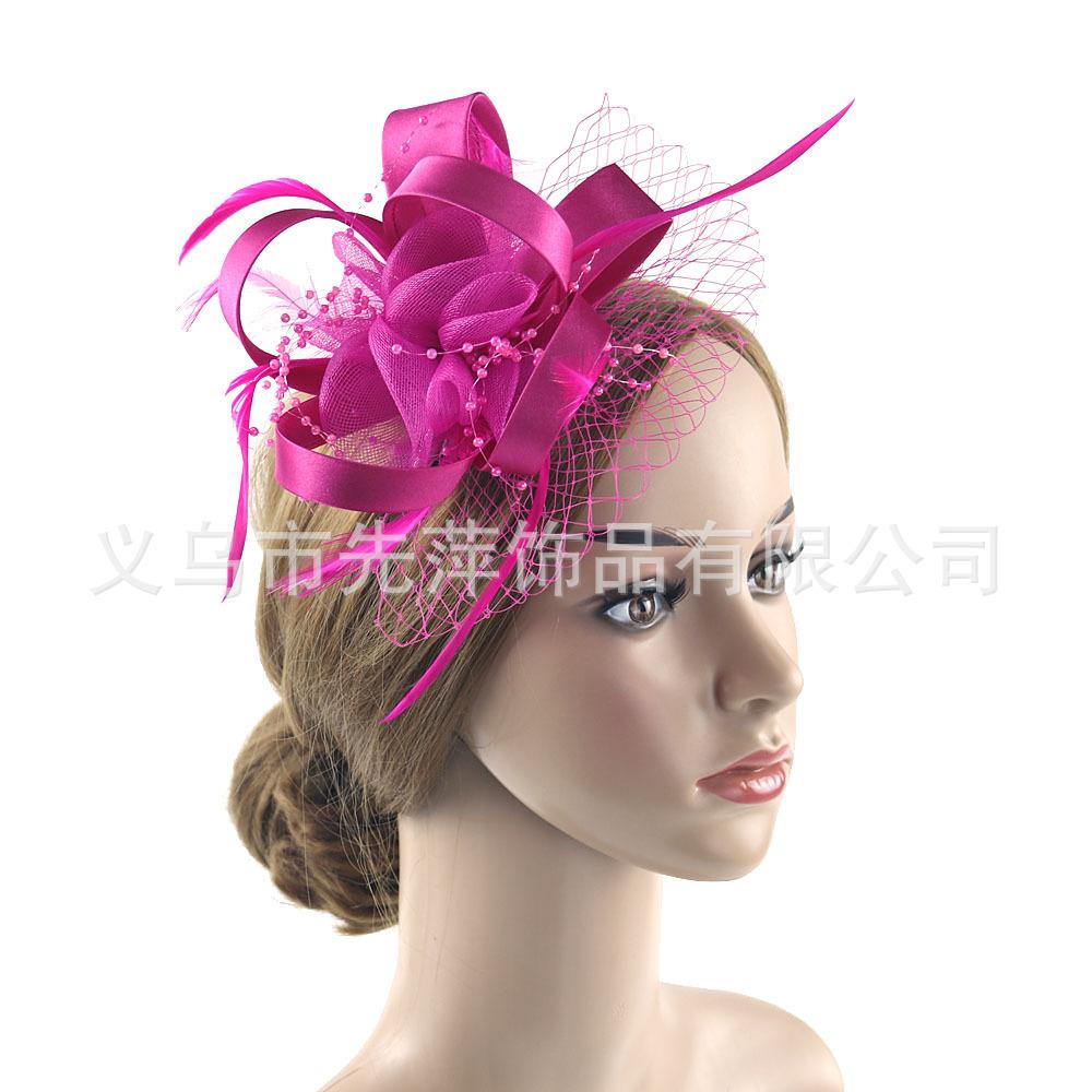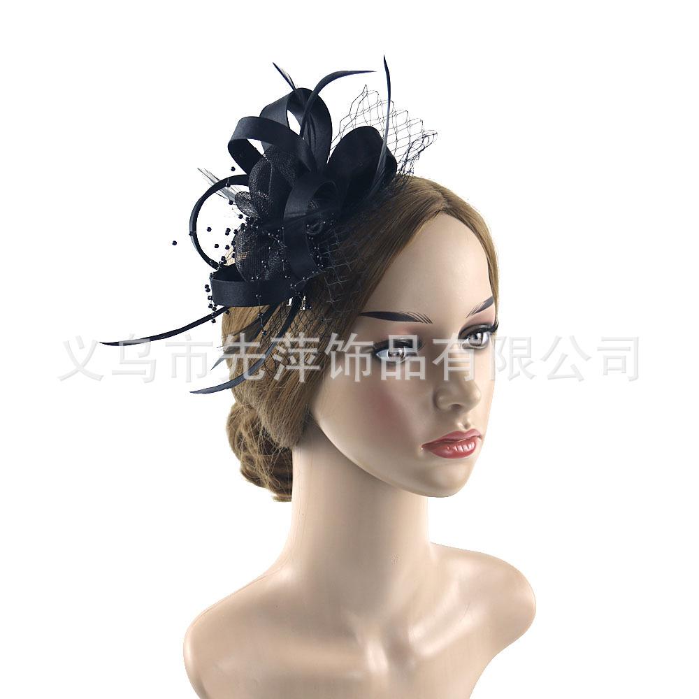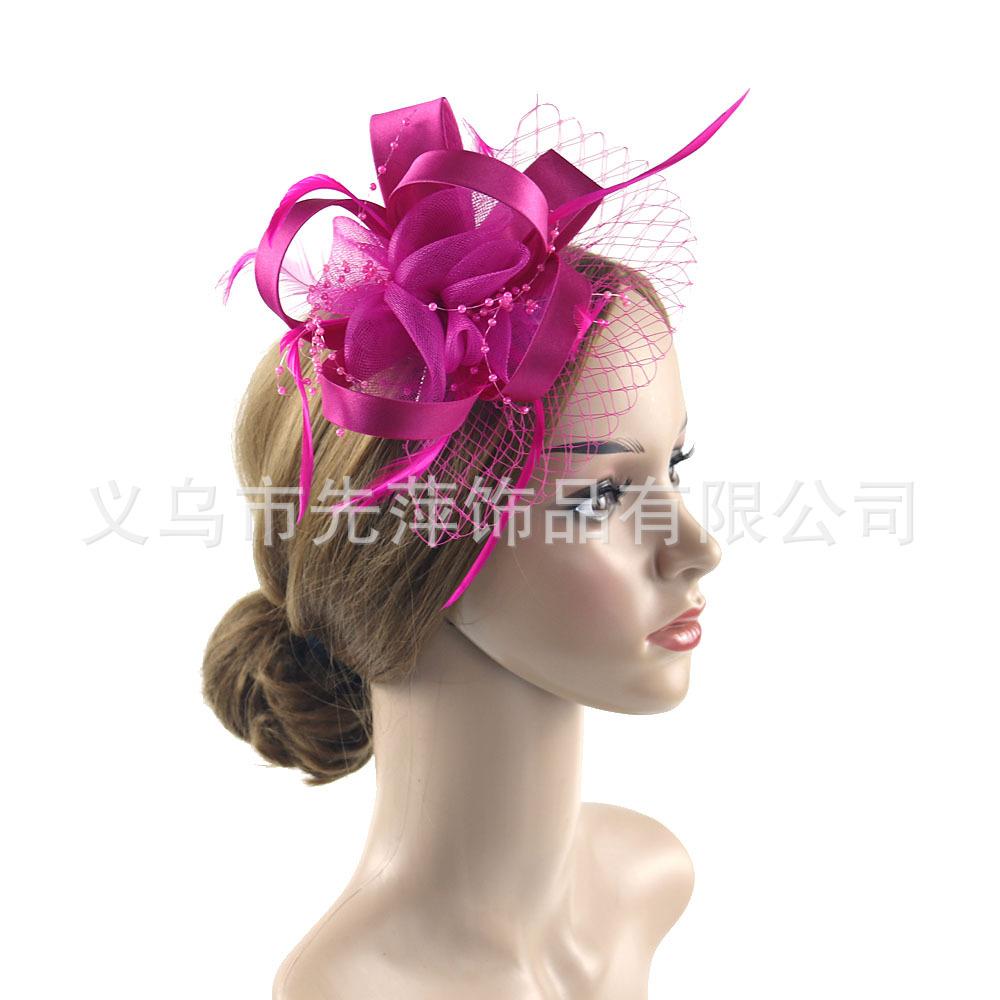Nuevo tocado transfronterizo tocado de novia tocado de plumas tocado de flores gasa plumas accesorios para el cabello diadema vintage para actuación fiesta