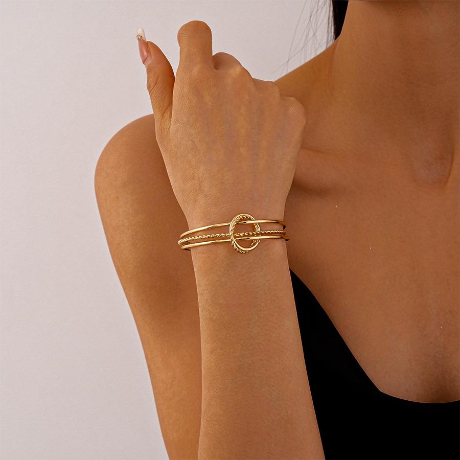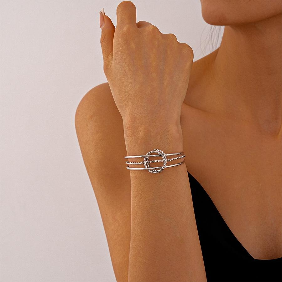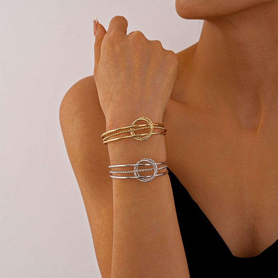 Pulsera Metálica Europea y Americana de Tres Capas con Círculos Geométricos Abiertos, Personalidad Exagerada, Temperamento Simple, Pulsera de Alta Gama para Mujeres