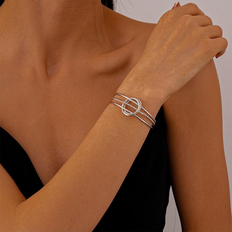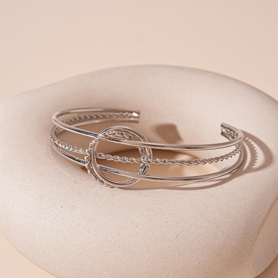 Silver three-layer open bracelet